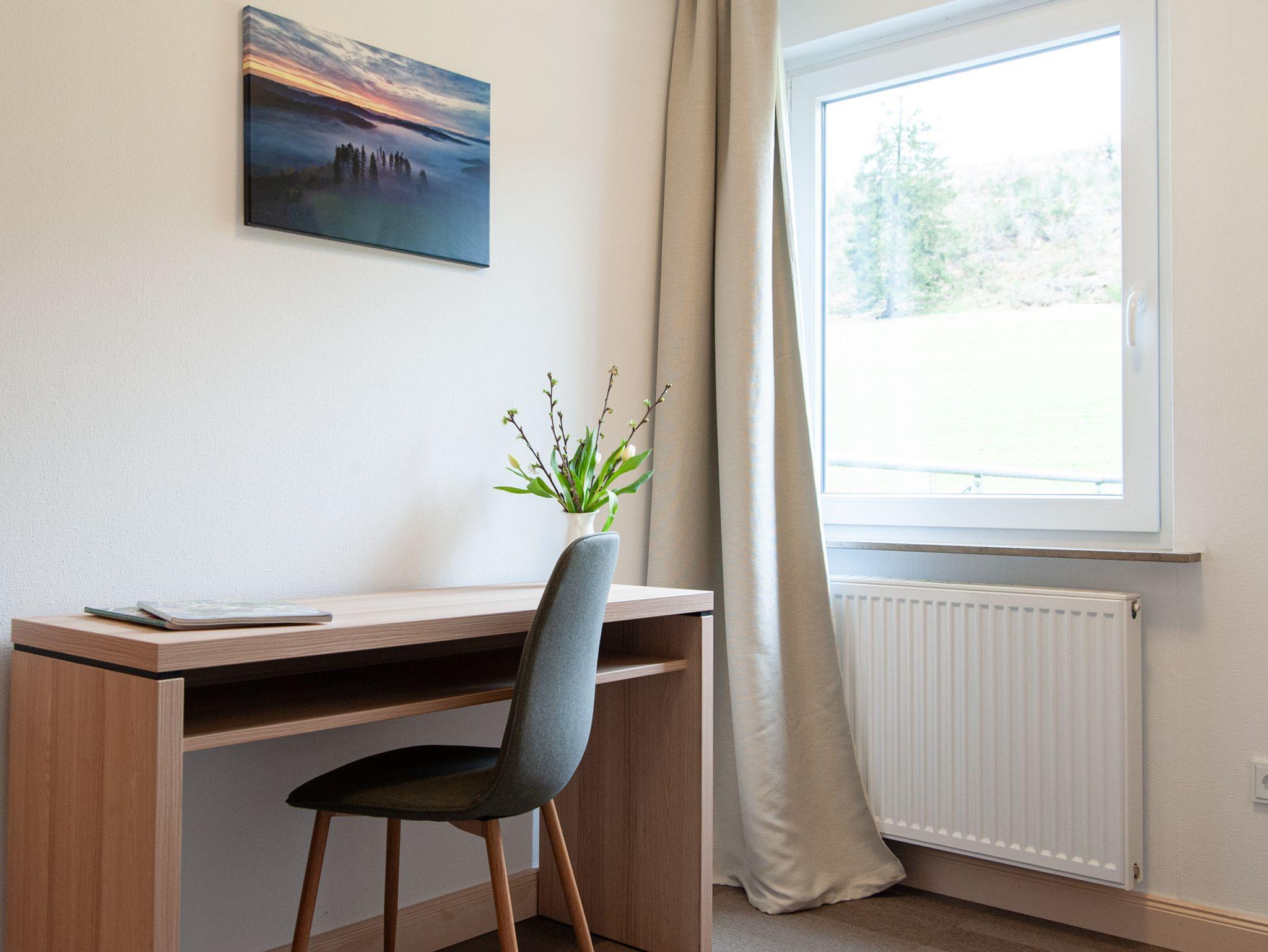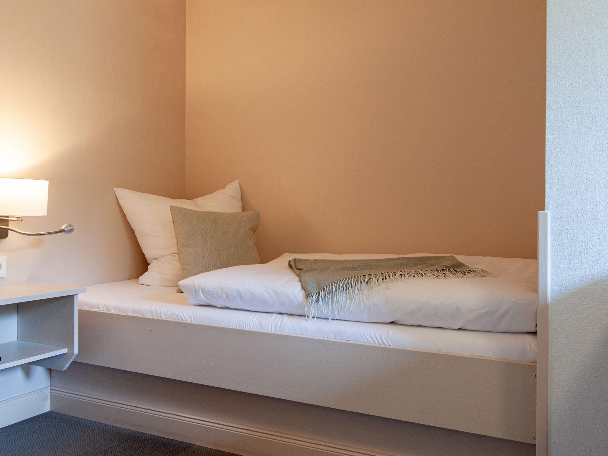 Zimmer Nr. 5 ist unser einziges Einzelzimmer, mit schönem Blick auf umliegende Wiesen und Wälder. Das Bett befindet sich in einer gemütlichen Niesche im Raum. Das Zimmer ist 16 qm groß und ist mit einem Fernseher, Safe, Schreibtisch und Badezimmer mit Dusche ausgestattet. Handtücher und Bettwäsche sind inklusive.