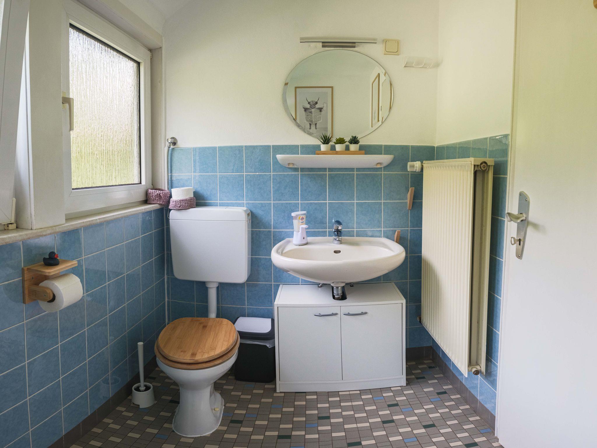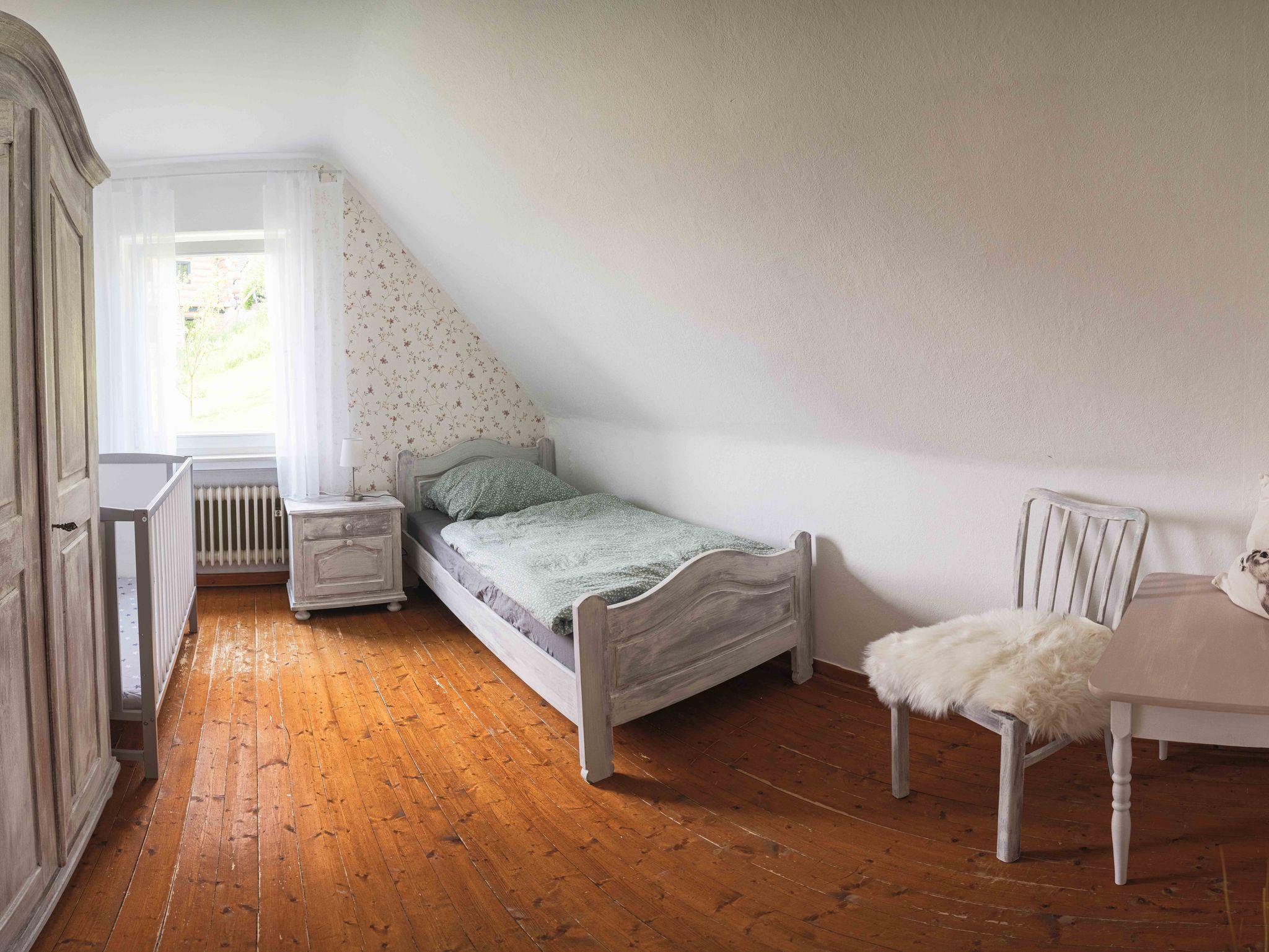 Im Obergeschoss finden Sie die zwei weiteren Doppelzimmer (davon eins mit Waschgelegenheit) und ein Einzelzimmer. In dieser Etage ist das zweite Bad.