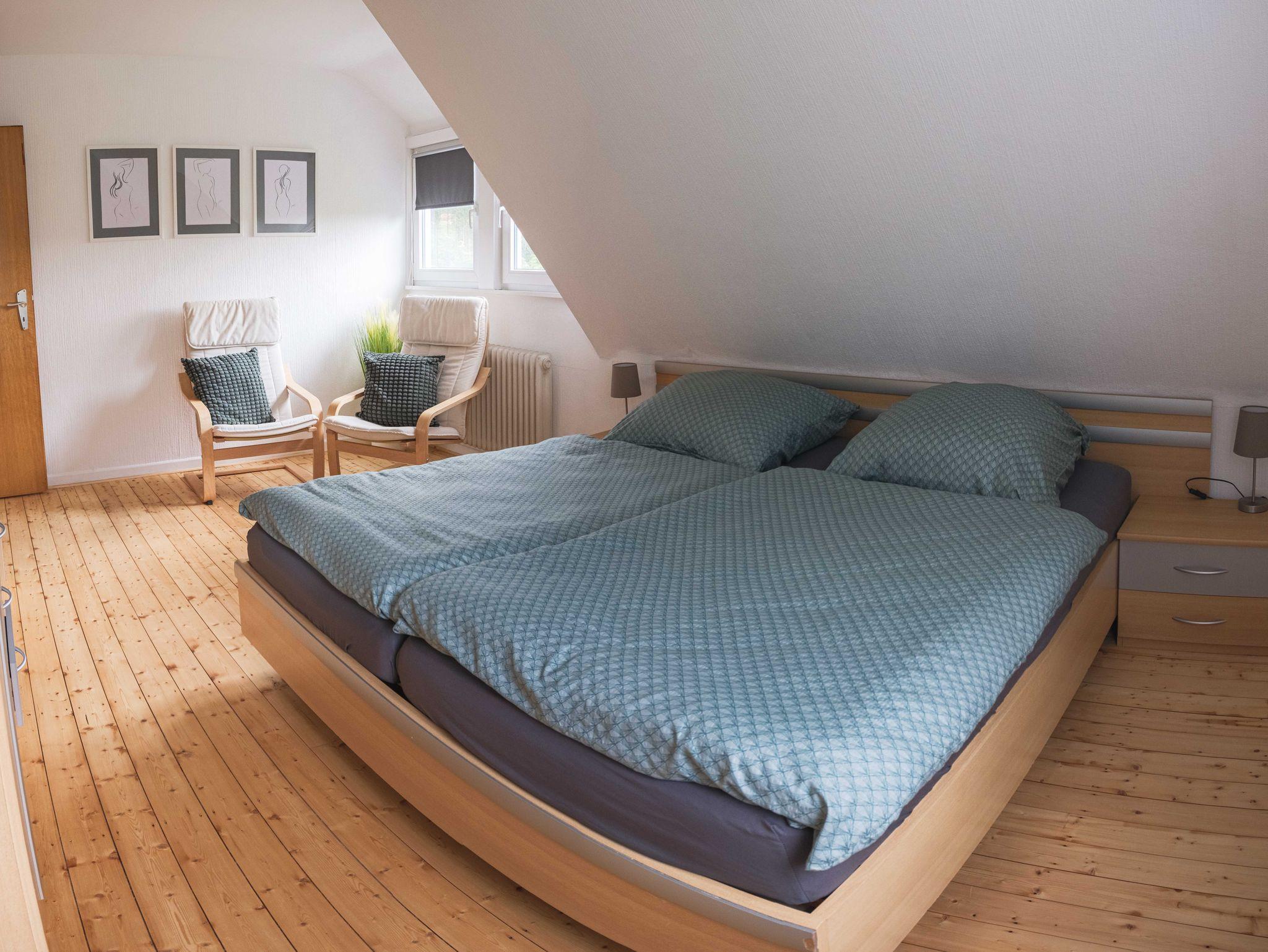 Im Erdgeschoss befindet sich ein Doppelzimmer, eine gemütliche Küche mit Essbereich und ein Duschbad.