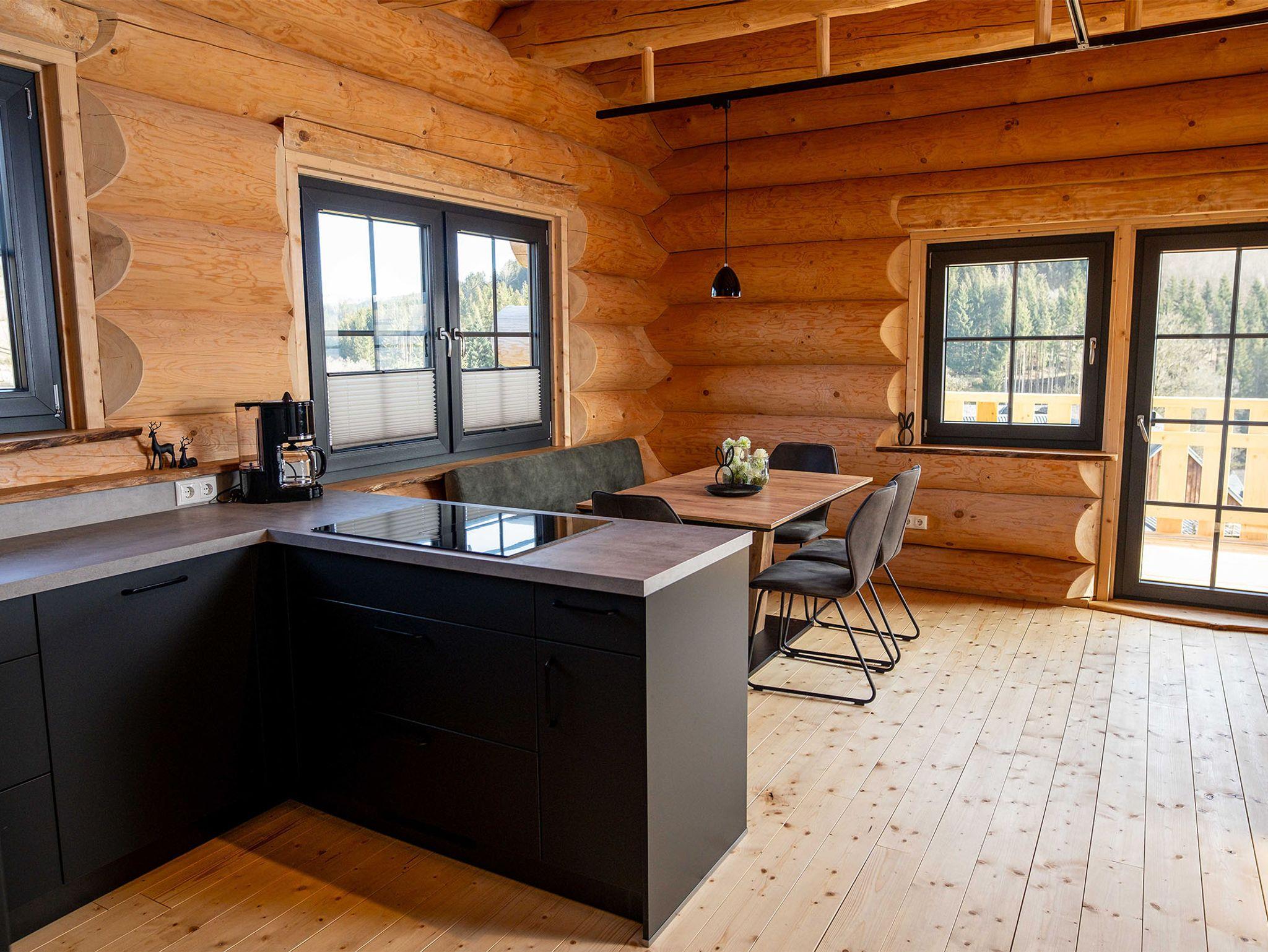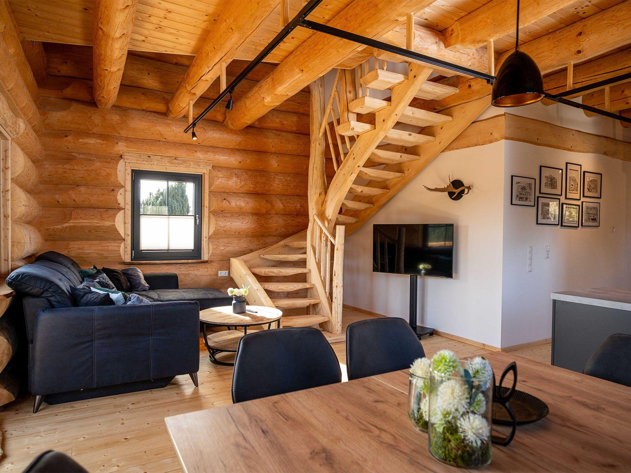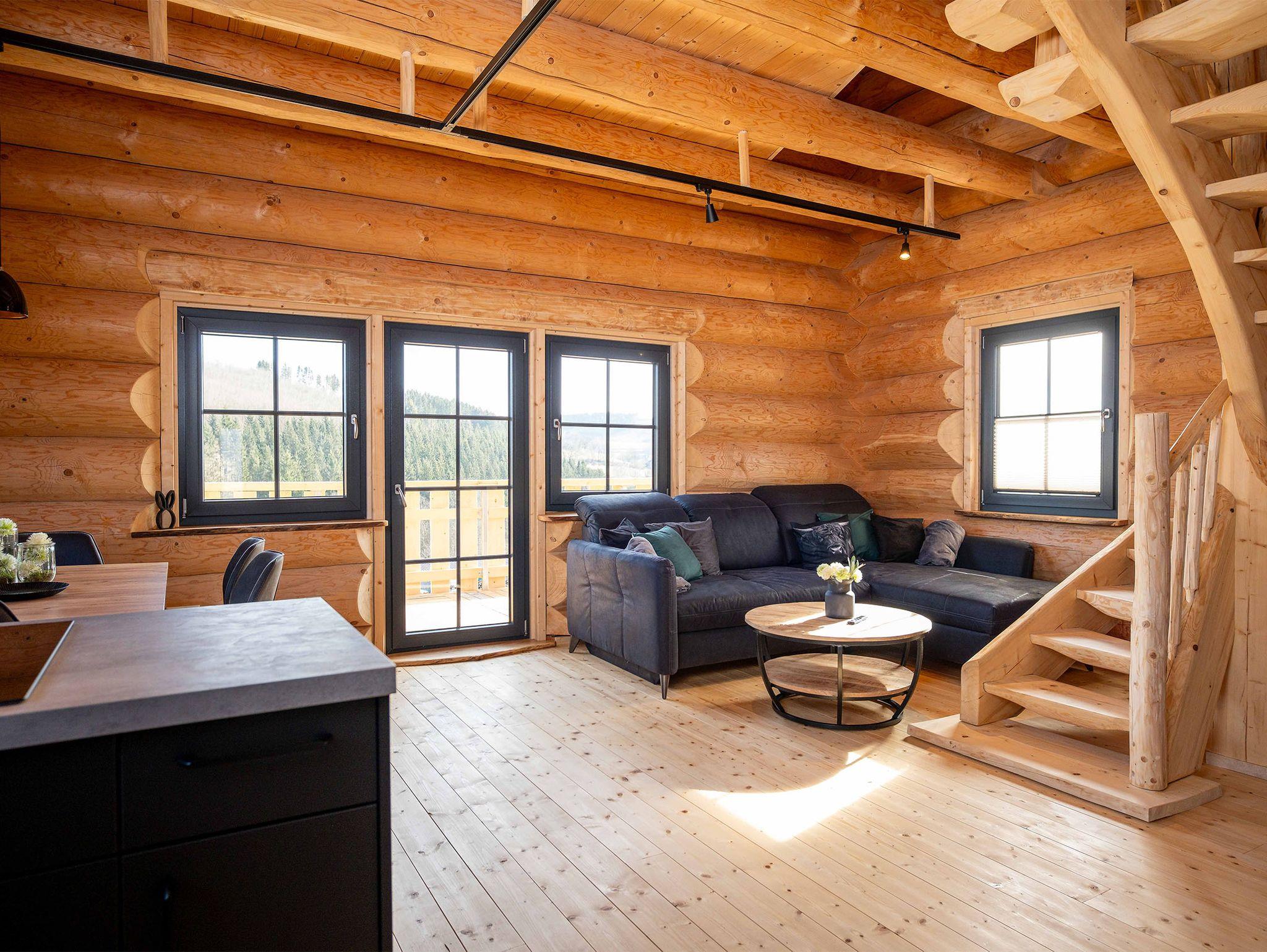 Willkommen in der Großen Fichte – Ihrem gemütlichen Naturstammblockhaus mitten im Grünen! Erleben Sie unvergessliche Tage in unserer liebevoll handgefertigten Ferienunterkunft Fichtenhaus. Auf rund 85 qm erstreckt sich die Große Fichte über zwei Etagen und bietet Platz für bis zu sechs Personen. Hier vereinen sich rustikaler Charme und moderner Komfort zu einem einzigartigen Wohnerlebnis. Ihr Rückzugsort mit Wohlfühlgarantie. Bereits beim Betreten des Erdgeschosses empfängt Sie ein großzügiger, offener Wohnbereich. Die voll ausgestattete Küche mit Kühl-Gefrierkombination, Backofen, Geschirrspüler, Toaster, Wasserkocher, Kaffeemaschine und Induktionskochfeld lässt keine Wünsche offen. Ob ausgedehnte Frühstücke oder gemeinsame Kochabende – der gemütliche Essbereich lädt zum Verweilen ein. Direkt angrenzend befindet sich der behagliche Wohnbereich mit einer großen, ausziehbaren Couch und TV. Hier können Sie entspannte Stunden mit Ihren Liebsten verbringen. Ein separates WC im Eingangsbereich sorgt für zusätzlichen Komfort.Panoramablick & Natur pur ! Vom Wohnbereich aus gelangen Sie auf den umlaufenden Balkon – ein wahres Highlight der Unterkunft. Genießen Sie von hier aus den atemberaubenden Blick über das Tal und die dichten Wälder der Gemeinde Wingeshausen. Ob beim Frühstück in der Morgensonne oder bei einem Glas Wein am Abend – dieser Ort lädt zum Träumen ein. Über die handgefertigte Holztreppe erreichen Sie das Obergeschoss mit drei gemütlichen Doppelschlafzimmern. Hier erwarten Sie zwei Betten mit 160 cm Breite und ein großzügiges Bett mit 180 cm Breite – alle ausgestattet mit hochwertigen Einzelmatratzen für optimalen Schlafkomfort in natürlicher Atmosphäre. Auf Wunsch stellen wir Ihnen gerne ein Babybett und einen Hochstuhl zur Verfügung. Ein charmantes Duschbad sorgt für einen erfrischenden Start in den Tag. Und für die Abenteuerlustigen: Die offene Galerie begeistert mit einem angebrachten Fischernetz – perfekt zum Klettern, Entspannen oder einfach zum Genießen des traumhaften Ausblicks auf die Natur.