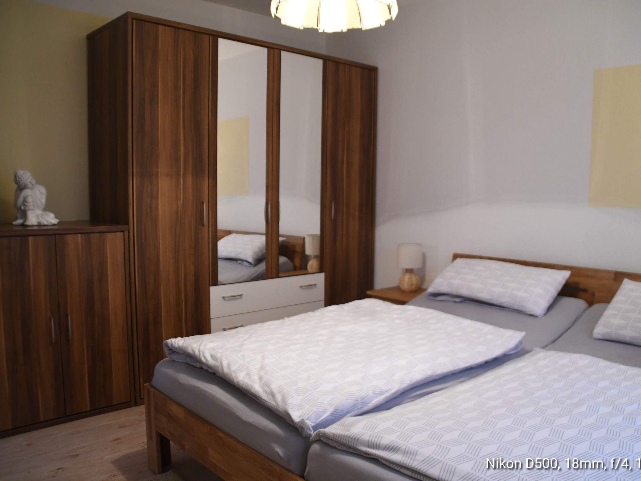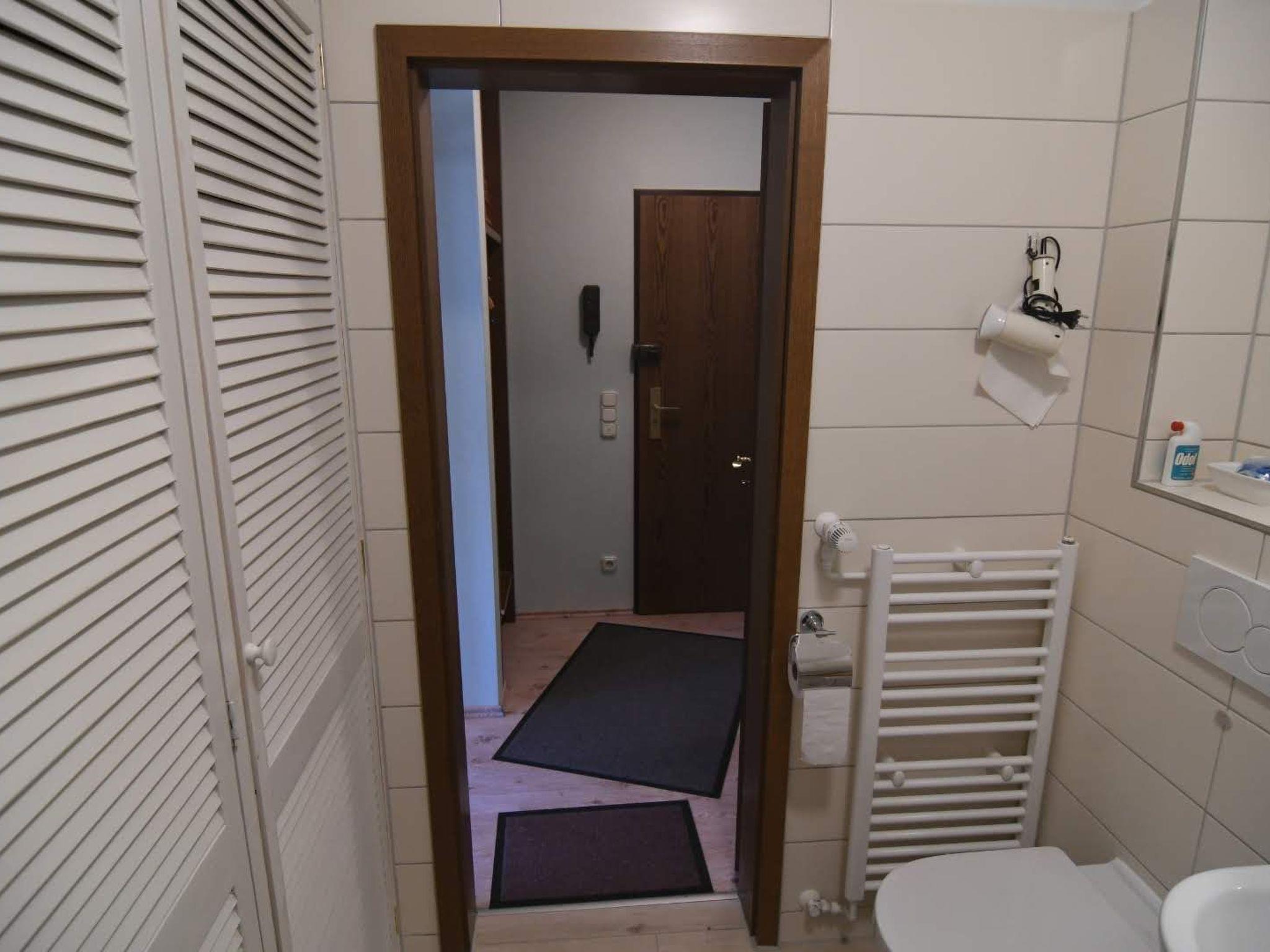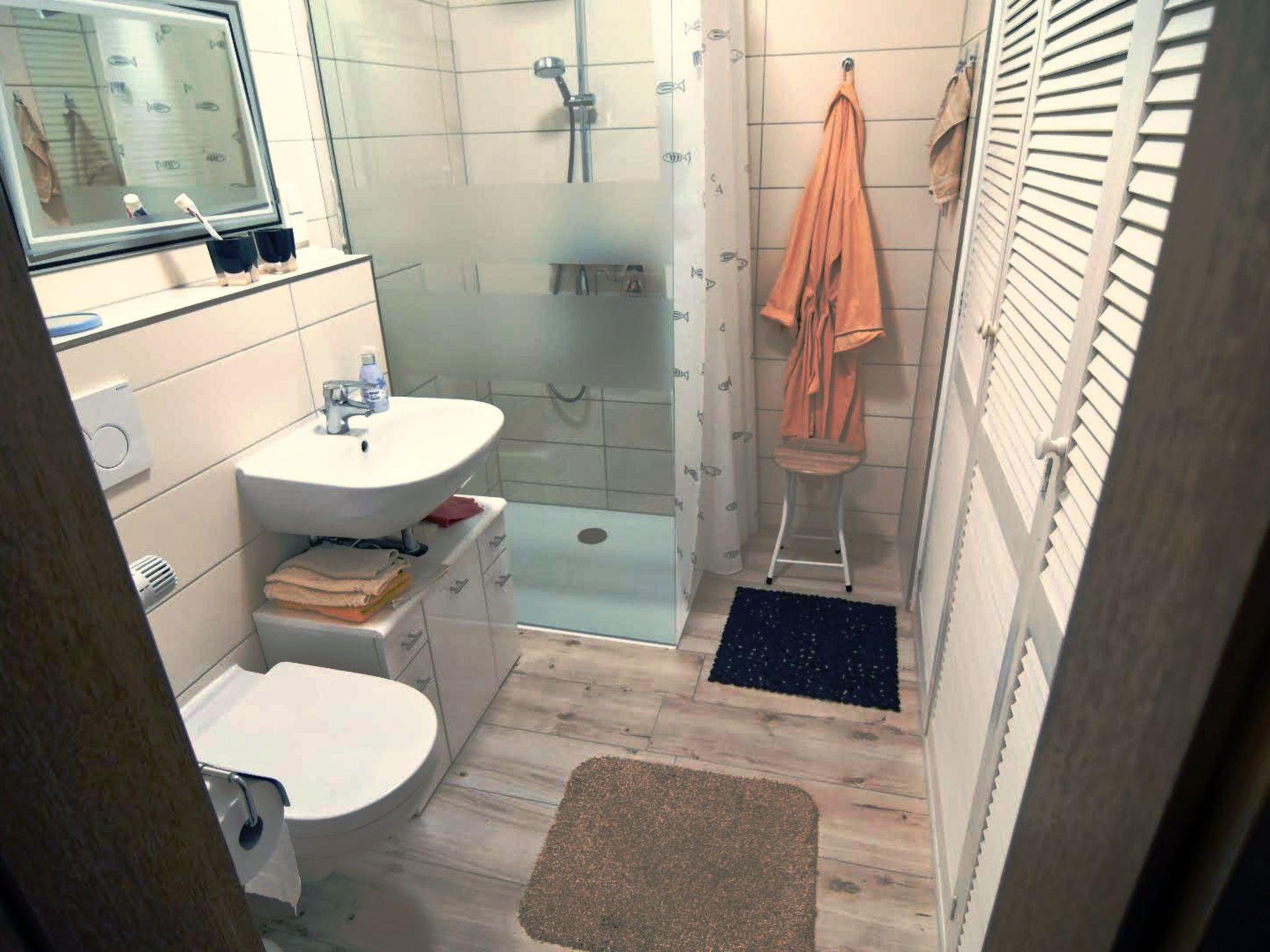 rain shower, a washbasin and WC. All rooms are bright and friendly, so that you will immediately feel at home here. The entire flat is heated by a central gas boiler or you can use the fireplace in winter to create additional cosy warmth. A washing machine is available exclusively in the basement. Or you can use the clothes horse on the terrace. Of course you can also use the bicycle cellar. There is a car parking space on the property and directly in front of the house entrance which is reserved just for you. Here you will feel at home and relax!
