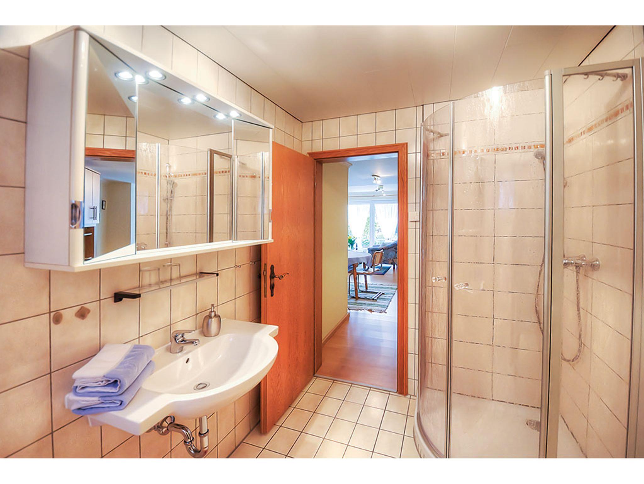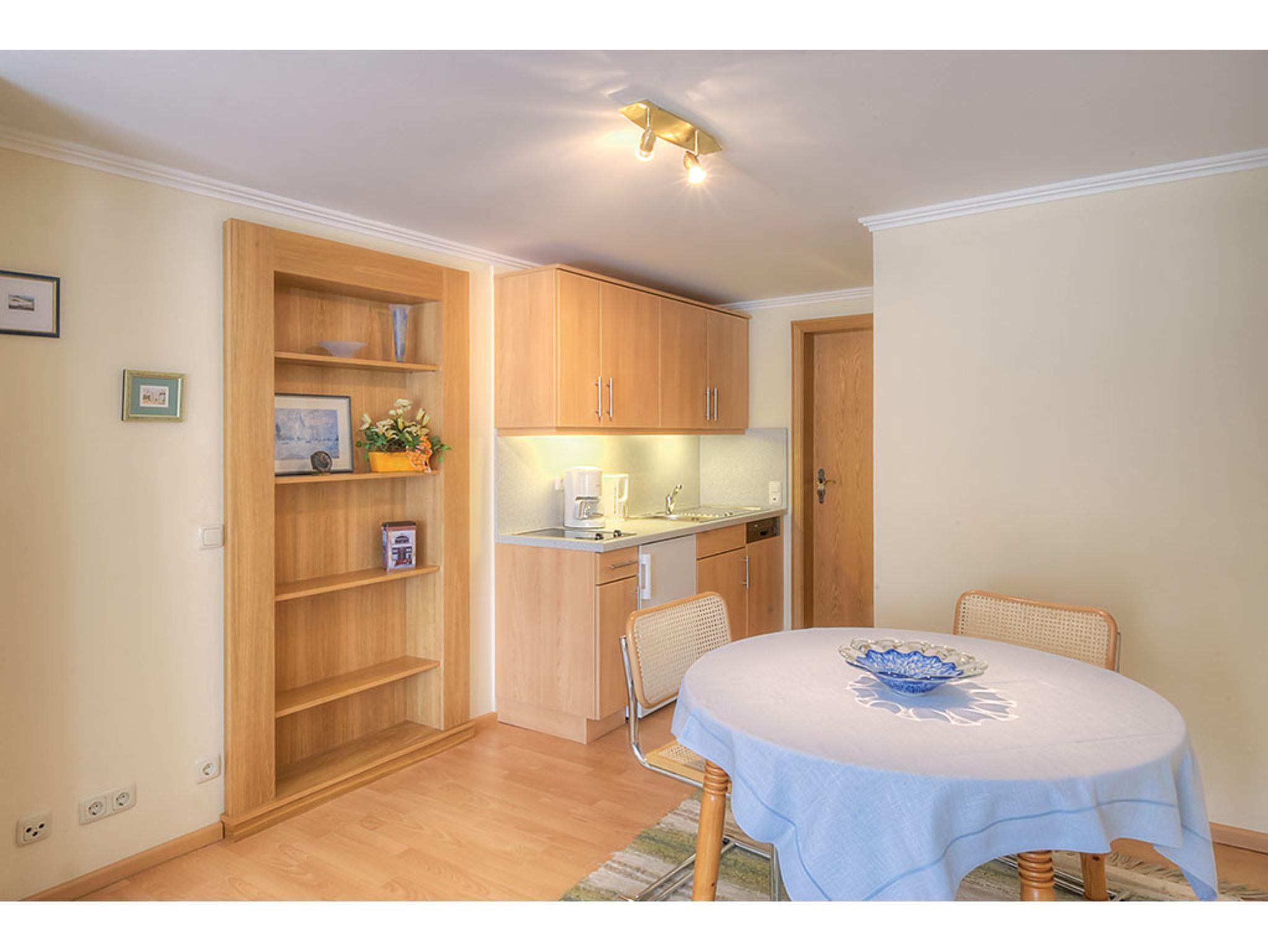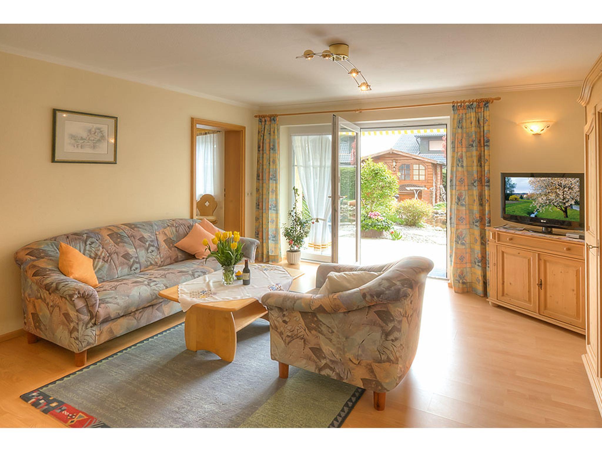 Die Ferienwohnung im Erdgeschoss verfügt über Fußbodenheizung, einen direkten Zugang zur Terrasse, eine voll ausgestattete Küchenzeile mit großzügigem Essplatz, ein gemütliches Wohnzimmer mit Flatscreen und SAT-TV sowie ein modernes Badezimmer mit Dusche sowie ein Schlafzimmer mit getrennten Betten. Schlaf- und Wohnräume sind getrennt.