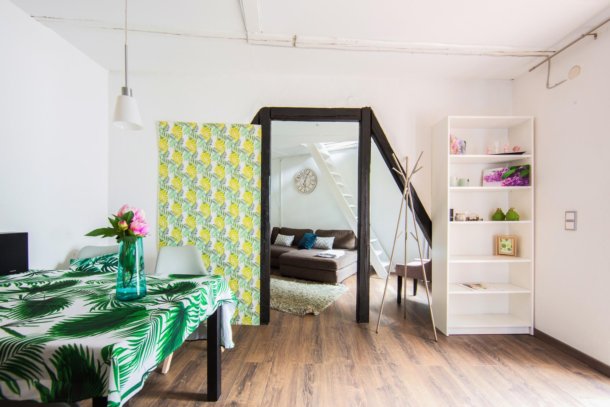 Denne elegante to-etagers maisonette i hjertet af Taunus-regionen blander moderne komfort med landlig charme, hvilket gør den til et perfekt tilflugtssted for både naturelskere og designentusiaster. Den åbne planløsning er badet i naturligt lys fra store vinduer, hvilket skaber en lys og luftig atmosfære. Et veludstyret køkken med høje hvidevarer inviterer dig til at lave mad og slappe af, mens en stilfuld trappe fører til et hyggeligt soveværelse på øverste niveau. Badeværelset har et forfriskende brusebad, ideelt efter en dag med vandreture eller cykelture på de nærliggende stier. Træd udenfor til terrassen i middelhavsstil, hvor du kan solbade, nyde en grill eller bare slappe af i fred. Beliggende nær den charmerende gamle bydel i Bad Camberg, tilbyder lejligheden nem adgang til butikker, caféer og kulturelle seværdigheder - alt imens den er omgivet af rolig natur.