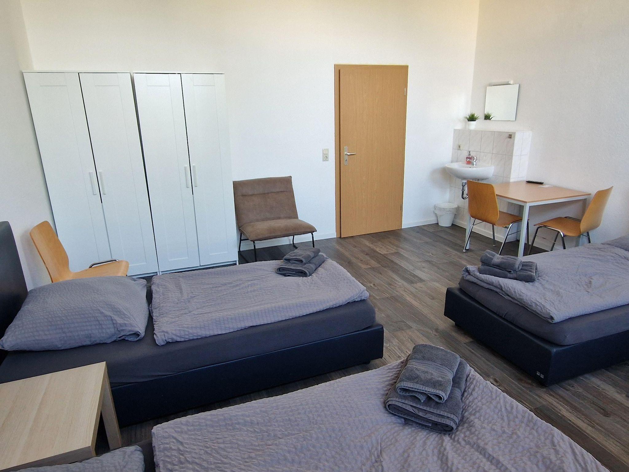 Sie haben hier ein Schlafzimmer mit 4 Einzelbetten und das Bad nutzen Sie auserhalb Ihres Zimmers. Dafür halten wir getrente WC´s und Duschen (mit eigenen Kabienen) für Sie bereit.