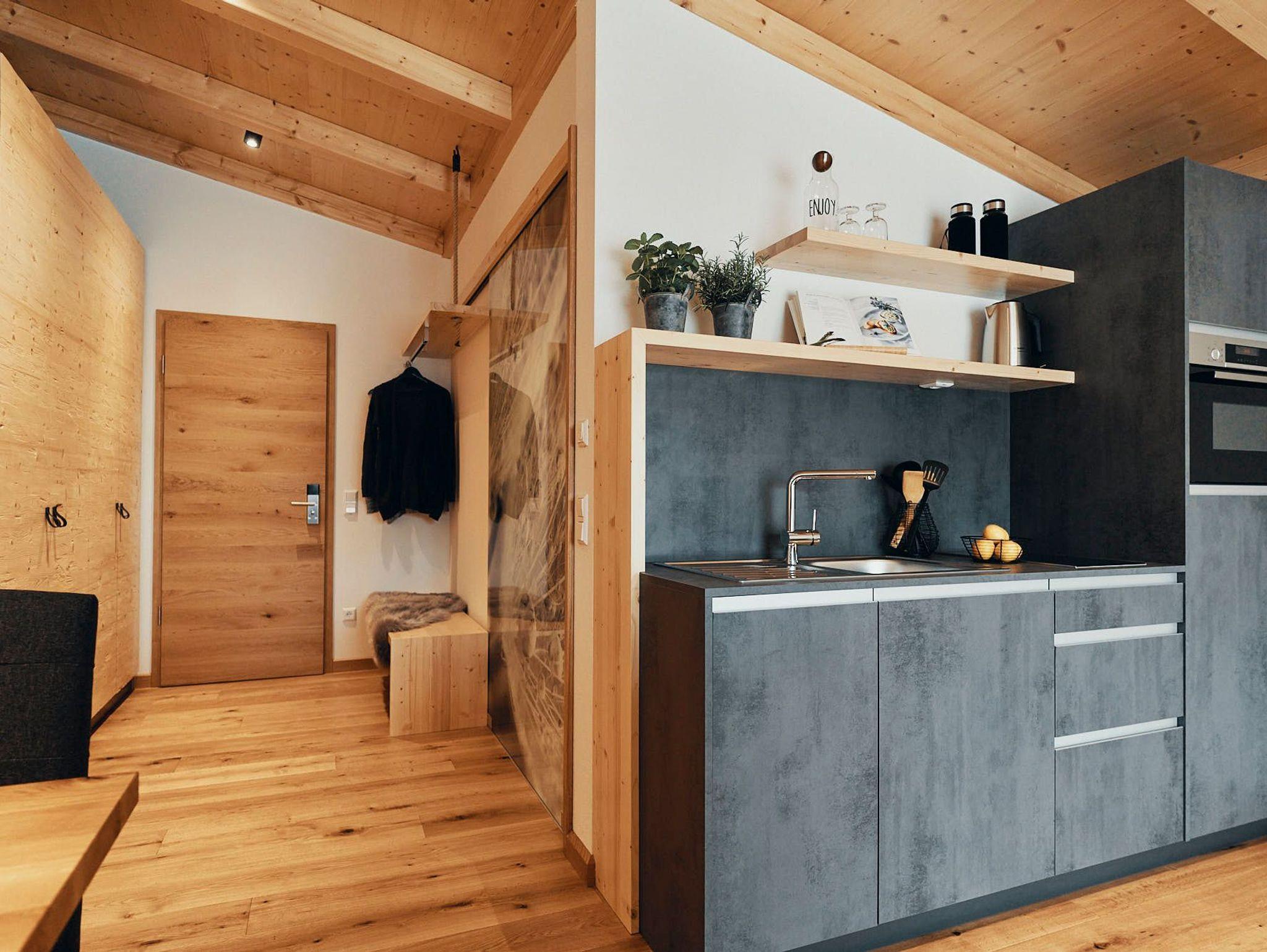 Fließende Übergänge verleihen Leichtigkeit, während handgefertigte Möbel aus der Tischlerwerkstatt individuelle Akzente setzen. Der gehobelte Eichenholzboden natürlich naturgeölt sorgt für eine spürbare Erdung und angenehme Wärme. Die kompakte, aber voll ausgestattete Küche macht Selbstversorgung zum Vergnügen. Eine ausziehbare Schlafcouch bietet zusätzlichen Raum für Gäste oder Tagträumer.