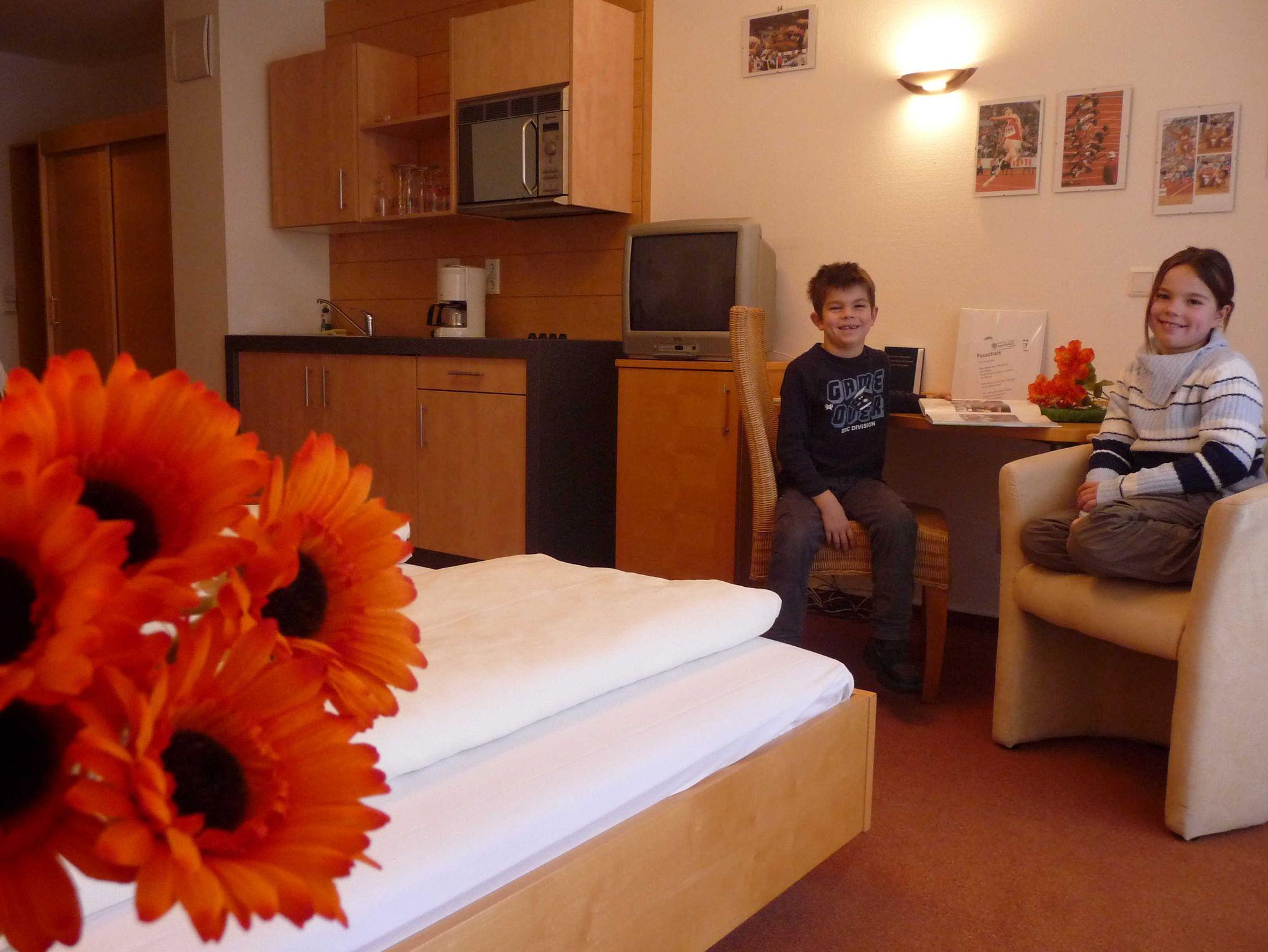Für einen kurzen Aufenthalt bietet sich unser 1-Zimmer-Apartement mit Doppelbett und vollwertiger Küchenzeile und Balkongeradezu an.