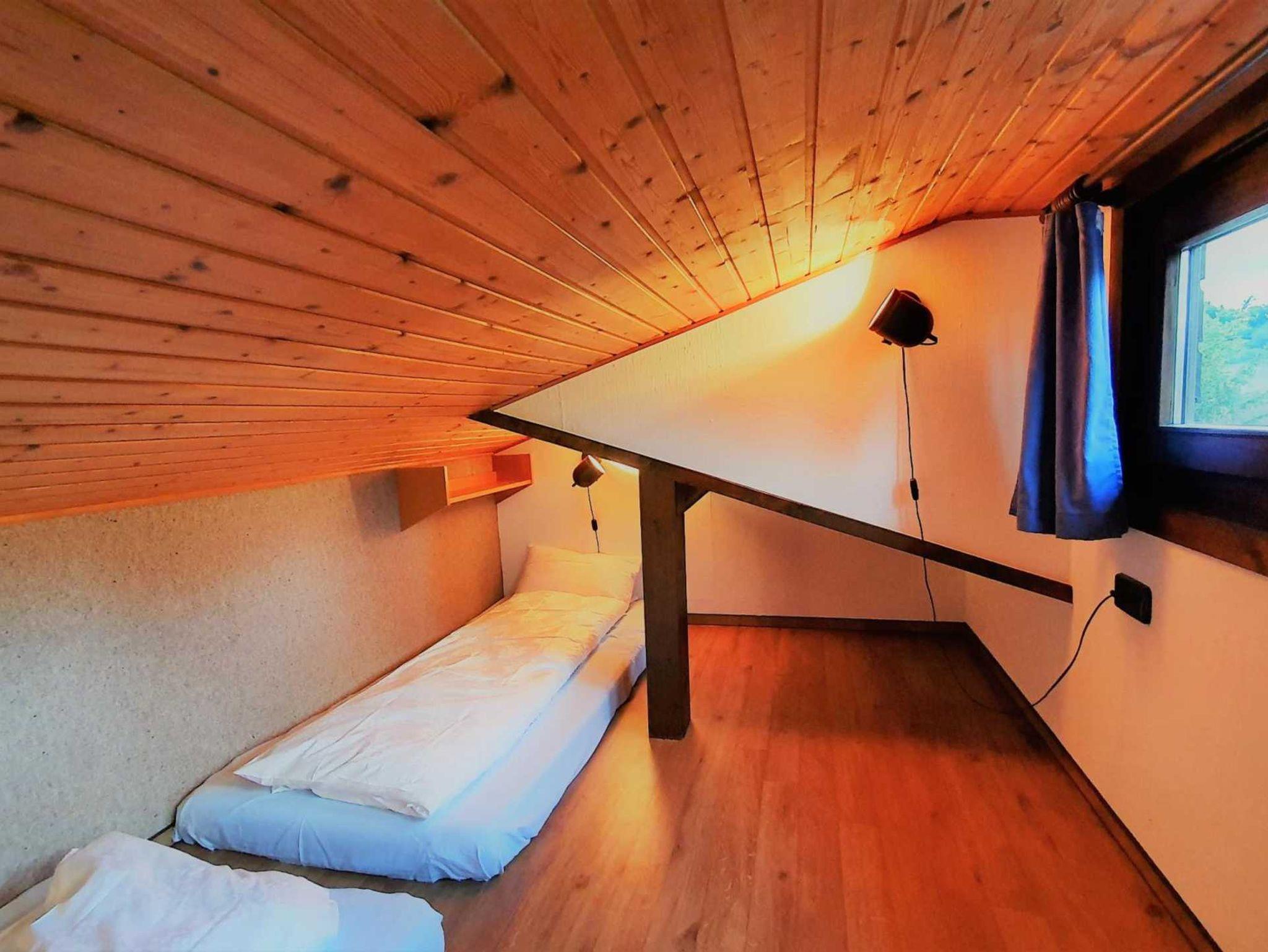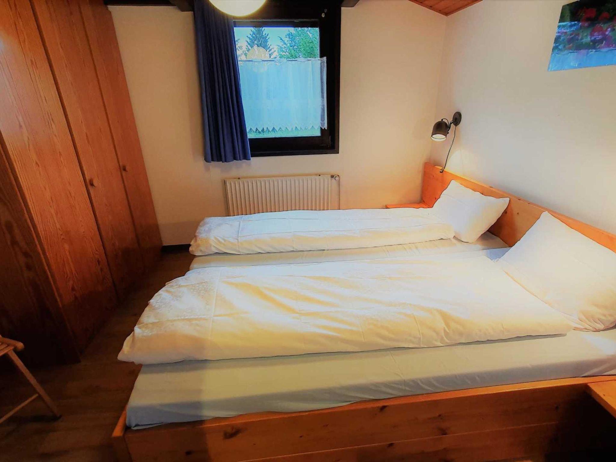 Sie wohnen in einem freistehenden 2-Zimmer-Ferienhaus für bis zu 4 Personen, ca. 44 m², ein Schlafzimmer mit Doppelbett und eine über eine Leiter erreichbare Schlafkoje mit zwei getrennten Schlafplätzen für Kinder ab 5 Jahren. Dusche/WC mit Fenster, Abstellraum. Inklusive Kinderreisebett und Kinderhochstuhl.