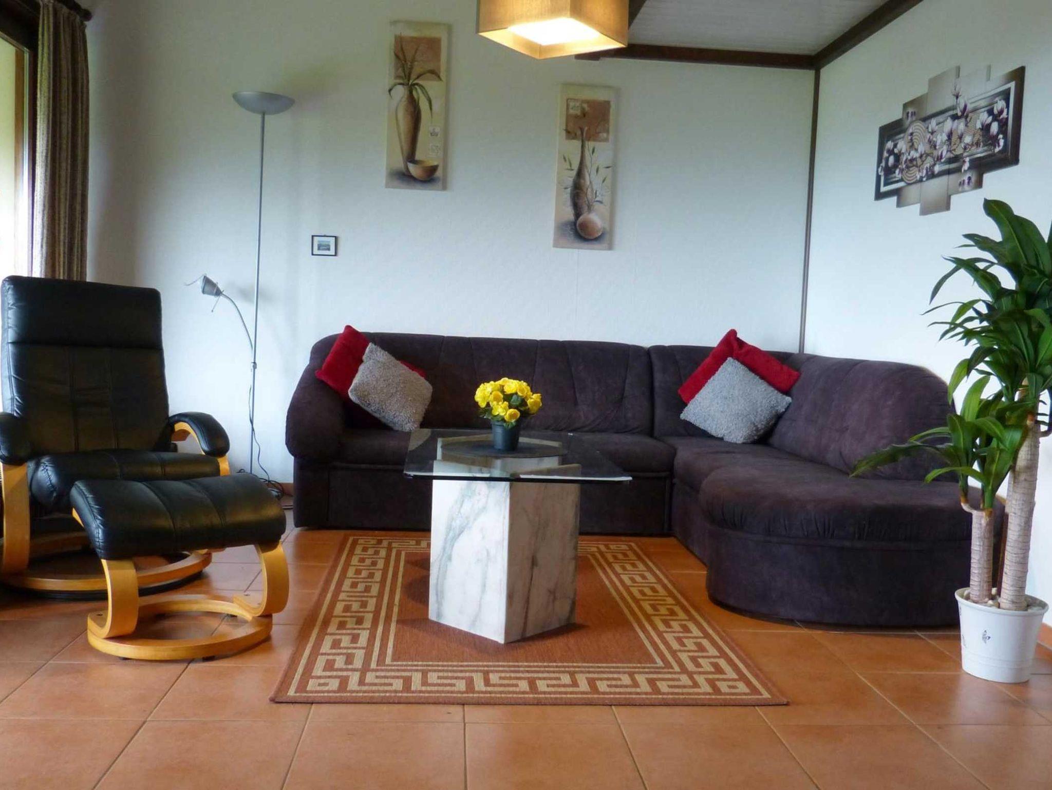 Sie wohnen in einem 3-Zimmer-Ferienhaus mit herrlicher Aussicht über dieganze Baar, bei schönem Wetter bis zum Feldberg. Bis zu 6 Personen finden bei 68 m² Platz auf mehreren Ebenen, zwei Schlafzimmer mit Doppelbett und Verdunkelungsvorhänge, zwei Einzelbetten auf der Empore in einem der Schlafzimmer, Wohnraum mit Panoramafenster, separater Essplatz, voll ausgestattete, Küche mit Geschirrspüler, Mikrowelle, Cerankochfeld, Kaffeemaschine und Backofen, Bad mit Dusche/WC, separater Abstellraum, Terrasse mit gemütlichen Gartenmöbeln und Elektrogrill /Holzkohlegrill, Kabel-TV, Digital - Receiver, DVD - Player, grosser LCD Fernseher, Stereoanlage mit CD, kostenloses WLAN, Safe.