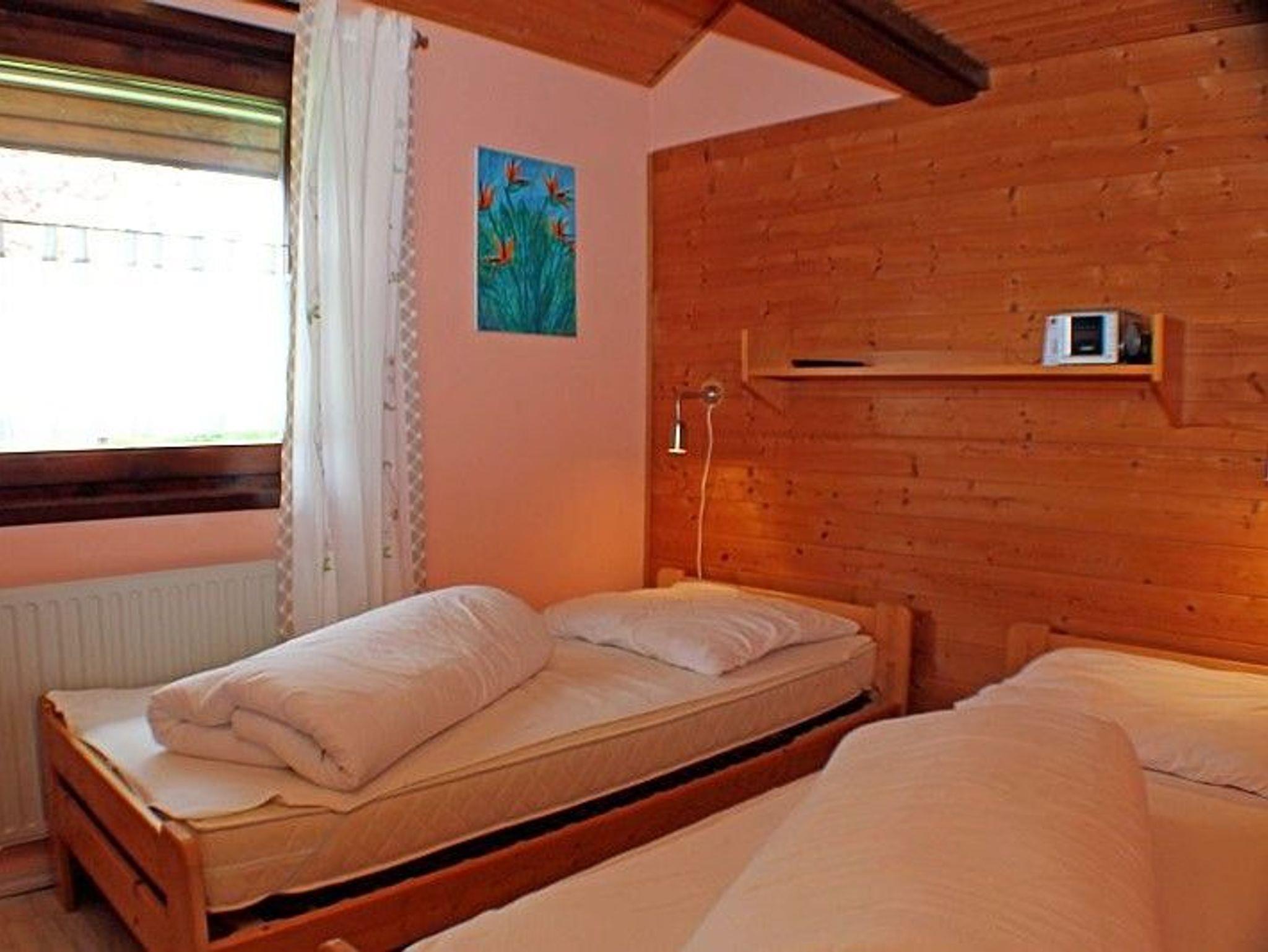 Sie wohnen in einem 3-Zimmer-Ferienhaus für bis zu 5 Personen auf ca. 44 m². Das Ferienhaus verfügt über ein Schlafzimmer mit zwei getrennten Betten die aber auch zum Doppelbett zusammen geschoben werden können, ausgestattet mit Kabel LCD TV und Weckradio, ein Schlafzimmer mit einem Einzelbett. Zusätzlich gibt es eine über eine Leiter erreichbare Schlafkoje für zwei Personen, Wohnraum mit 80 cm Kabel-Smart TV, XBox Spielekonsole die auch als DVD Player genutzt werden kann. Ein paar Spiele und DVDs sind vorhanden. Einbauküche, Ceran-Kochfeld und Microwelle, Kühlschrank mit Gefrierfach. Geschirr-, Koch- und Backutensilien sind vorhanden, Sanitärbereich mit Bodenebener Dusche, Rollladen an allen Fenstern, Abstellraum, Terrasse, Kinderreisebett und Kinderhochstuhl, Stellplatz für Autos, Motorräder direkt vor dem Haus. Fahrräder können im direkten Sichtbereich am Haus abgestellt werden. Kostenfreies WLAN, Gastronomie in 150 m Entfernung