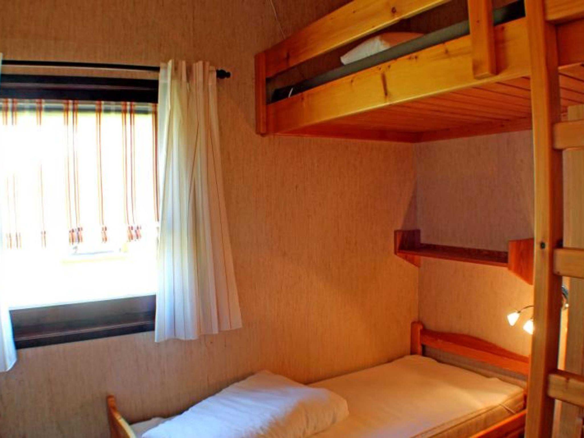 Sie wohnen in einem 3-Zimmer-Ferienhaus für bis zu 4 Personen auf ca. 48 m² Wohnfläche. Ein Schlafzimmer mit Doppelbett, en Schlafzimmer mit einem Bett und Hochbett, vom Flur aus über Leiter erreichbare Schlafkoje für Kinder ab 5 Jahren, Wohnraum, separater Essplatz, voll ausgestatteter Küchenbereich, Dusche/WC, Abstellraum, Terrasse. Inklusive Kinderreisebett und Kinderhochstuhl.