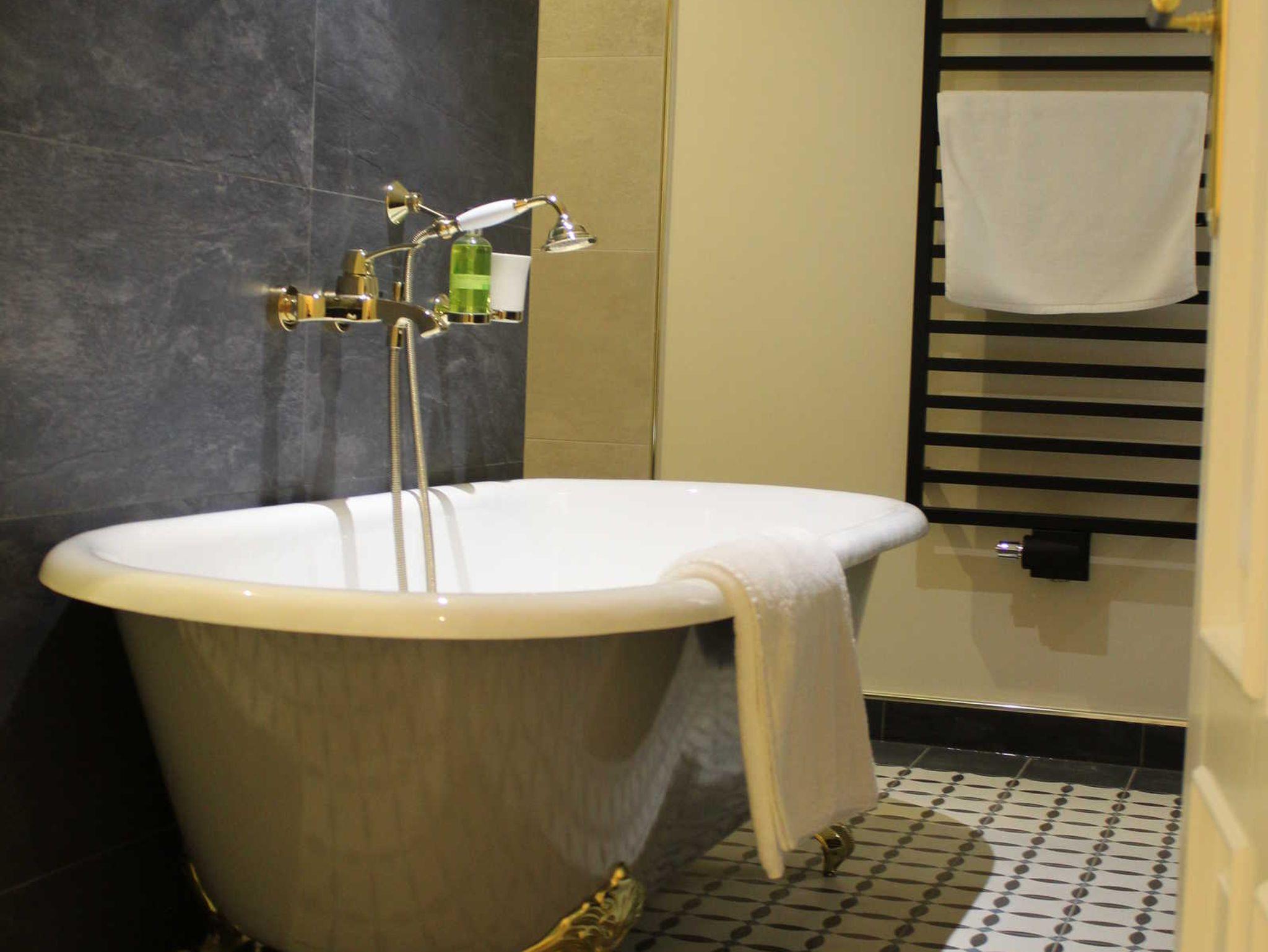 Das Logierhaus Stadt Lyon ist etwa 1830 gebaut worden und war eines von vielen Logierhäusern in Bad Ems für den europäischen Wohlstandstourismus zur damaligen Kaiserzeit. Ärzte aus Paris, Adlige aus St. Petersburg und jeder, der zum europäischen Establishment dazugehören wollte, verbrachten hier einige Wochen des Jahres, um gesehen zu werden und etwas für die Gesundheit zu tun. Zwischen 2014 und 2018 wurde das Gebäude authentisch restauriert und vermittelt jetzt unseren Gästen aus aller Welt den Glanz der Kaiserzeit verbunden mit modernem Komfort. im Zentrum von Bad Ems. Im Apartment 'Le Parterre' haben wir eine behindertengerechte Wohnung mit Schlafzimmer, Bad und Wohnzimmer eingerichtet und eigenem Zugang zum Felsenhof. Das Apartment 'Le Belle Etage' im 1. Obergeschoß und 'Le Deuxième Etage' im 2. Obergeschoß haben jeweils einen Balkon zum Fluß mit Aussicht auf das prächtige Kurzentrum und bieten mit 2 separaten Schlafzimmer, einem Wohnzimmer mit Küchenzeile und einem Luxusbad ausreichend Platz für Kleingruppen und Reisende mit Personal. Im 3. Obergeschoß befindet sich das Apartment 'Au Ciel' mit 1 Schlafzimmer, Wohnzimmer mit Loggia zum Fluß, Luxusbadezimmer und eigenem Zugang zur Felsendachterrasse mit Jacuzzi, Schaukelliege und Grilltisch - ein Aufzug bringt Sie in alle Obergeschosse. Für alle Apartments besteht die Möglichkeit, eine mitreisende Begleitperson in einem 1-Zi Apartment 'Le Service' im 3. Obergeschoß separat unterzubringen - wie zu Kaiser's Zeiten.