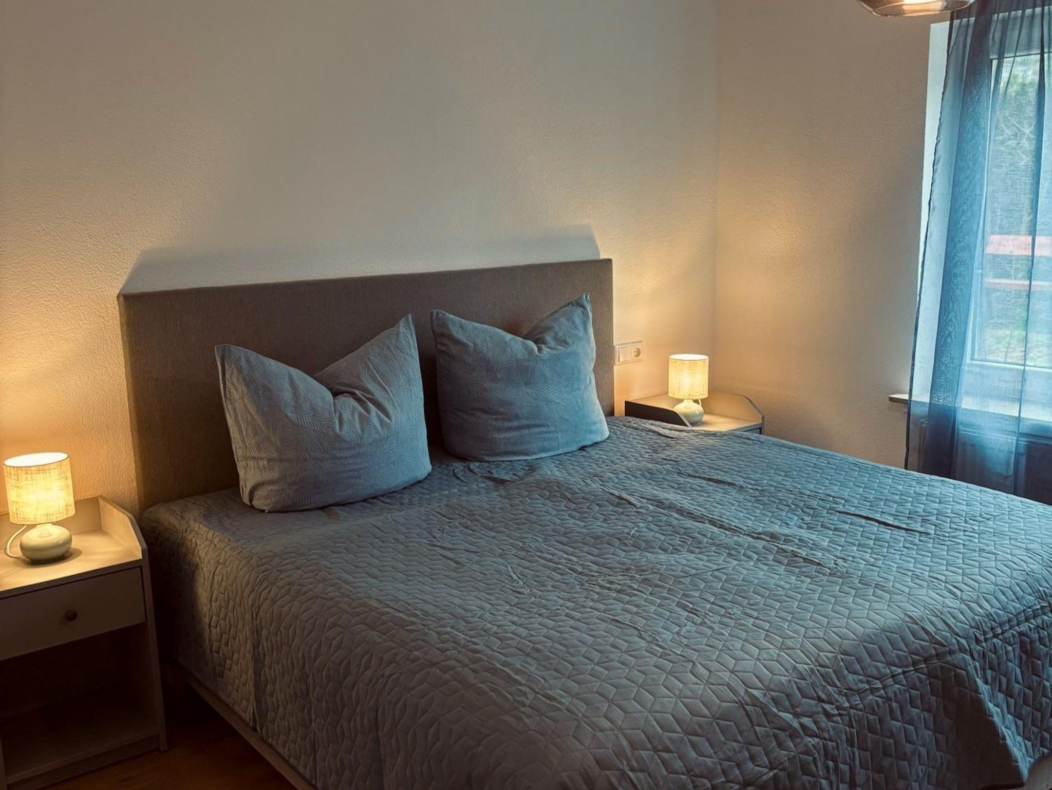 Zwei separate Schlafzimmer bieten ideale Rückzugsorte: Eines ist mit einem großzügigen Boxspringbett (180 cm) ausgestattet, das andere mit zwei einzelnen Boxspringbetten (je 90 cm) – perfekt für Familien mit Kindern oder kleine Gruppen.