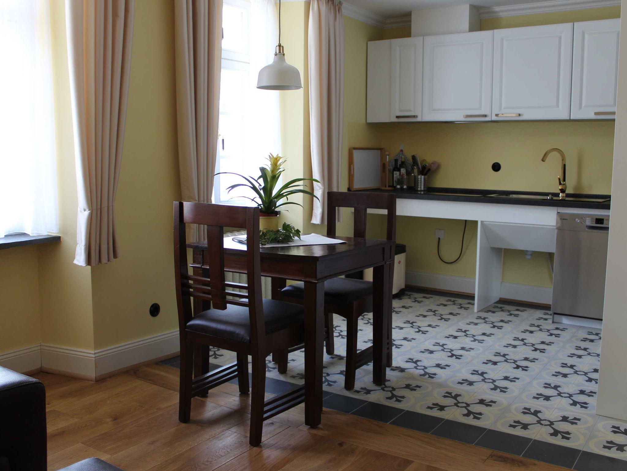 Das Logierhaus Stadt Lyon ist etwa 1830 gebaut worden und war eines von vielen Logierhäusern in Bad Ems für den europäischen Wohlstandstourismus zur damaligen Kaiserzeit. Ärzte aus Paris, Adlige aus St. Petersburg und jeder, der zum europäischen Establishment dazugehören wollte, verbrachten hier einige Wochen des Jahres, um gesehen zu werden und etwas für die Gesundheit zu tun. Zwischen 2014 und 2018 wurde das Gebäude authentisch restauriert und vermittelt jetzt unseren Gästen aus aller Welt den Glanz der Kaiserzeit verbunden mit modernem Komfort. im Zentrum von Bad Ems. Im Apartment 'Le Parterre' haben wir eine behindertengerechte Wohnung mit Schlafzimmer, Bad und Wohnzimmer eingerichtet und eigenem Zugang zum Felsenhof. Das Apartment 'Le Belle Etage' im 1. Obergeschoß und 'Le Deuxième Etage' im 2. Obergeschoß haben jeweils einen Balkon zum Fluß mit Aussicht auf das prächtige Kurzentrum und bieten mit 2 separaten Schlafzimmer, einem Wohnzimmer mit Küchenzeile und einem Luxusbad ausreichend Platz für Kleingruppen und Reisende mit Personal. Im 3. Obergeschoß befindet sich das Apartment 'Au Ciel' mit 1 Schlafzimmer, Wohnzimmer mit Loggia zum Fluß, Luxusbadezimmer und eigenem Zugang zur Felsendachterrasse mit Jacuzzi, Schaukelliege und Grilltisch - ein Aufzug bringt Sie in alle Obergeschosse. Für alle Apartments besteht die Möglichkeit, eine mitreisende Begleitperson in einem 1-Zi Apartment 'Le Service' im 3. Obergeschoß separat unterzubringen - wie zu Kaiser's Zeiten.