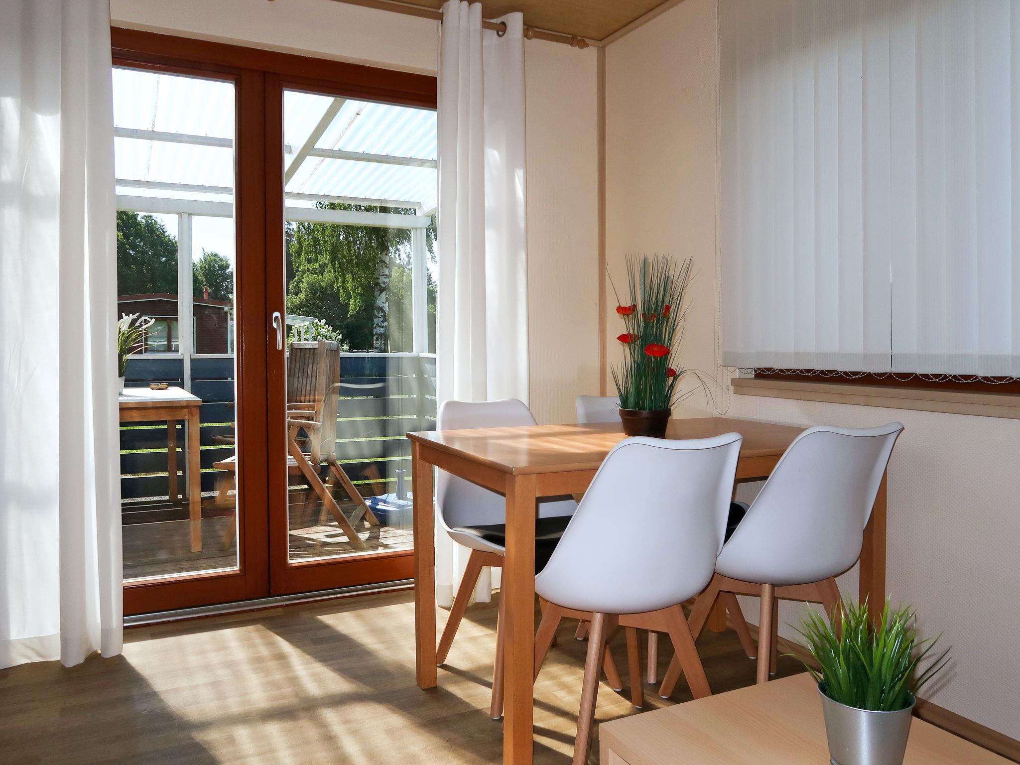 3-room bungalow 40 m2. Modern furnishings: living/dining room with dining table, satellite TV, radio and DVD. Exit to the terrace. 1 double bedroom. 1 small room with 1 x 2 bunk beds. Open kitchen (4 gas rings, toaster, kettle, microwave, electric coffee machine). Shower/WC. Underfloor heating. Terrace. Terrace furniture. Facilities: children's high chair, baby cot. Internet (WiFi, free). Please note: non-smokers only. Maximum 1 pet/ dog allowed. Smoke alarm, fire extinguisher.