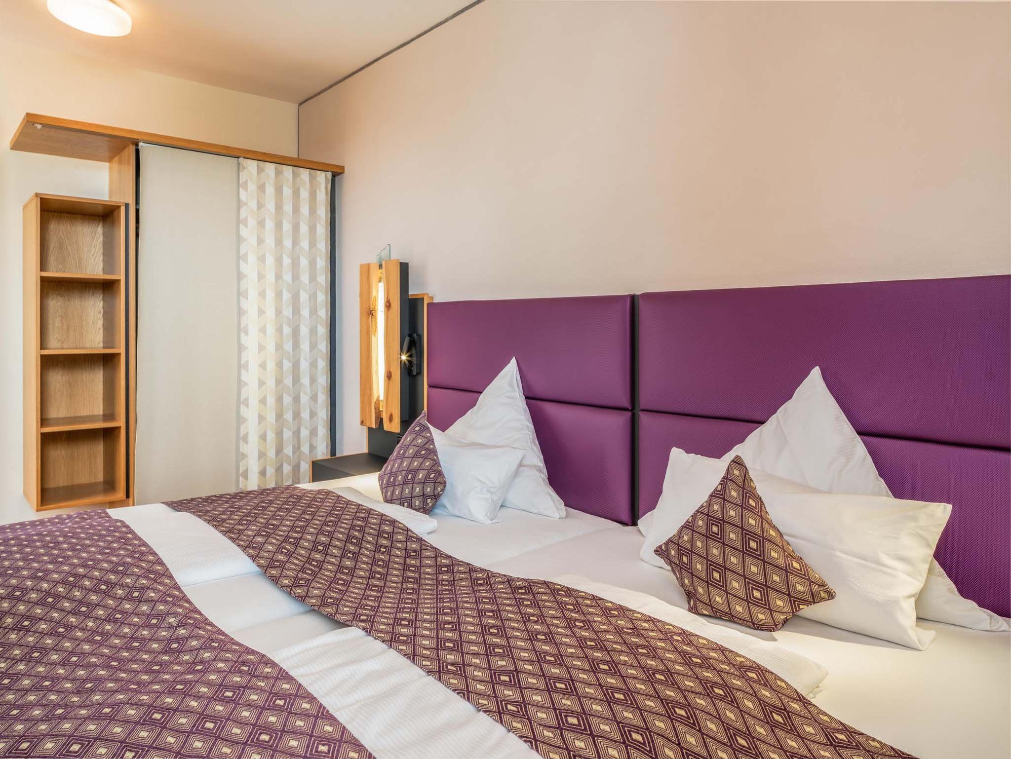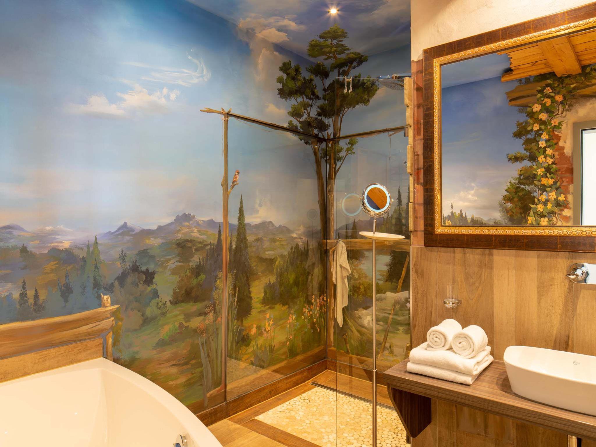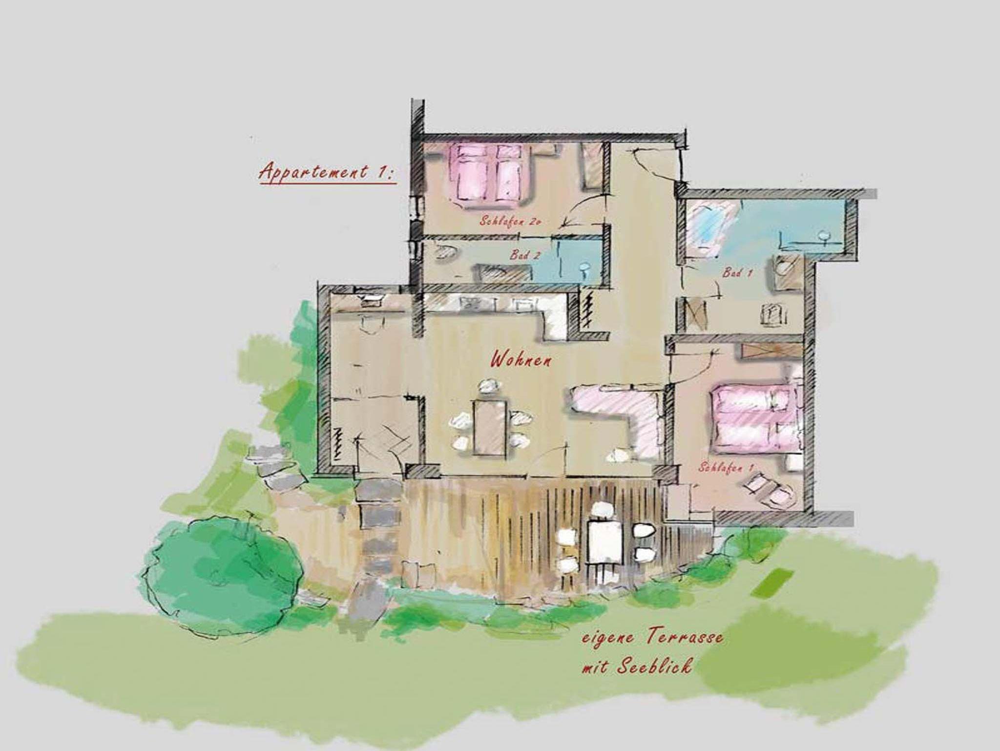 Die lichtdurchflutete Wohnung „Wellvital“ mit offenem Wohnraum und großem Panoramafenster bietet einen unvergleichlichen Blick über den dazugehörigen Lavendel-Duftgarten, den Pelhamer See sowie die Chiemgauer Alpenkette. Für das körperliche und seelische Wohlbefinden stehen in jedem der beiden Schlafräume große Betten bereit, die mit ausgezeichneten Matratzen ausgestattet sind. Es sind zwei Bäder vorhanden, eines davon direkt einem Schlafzimmer zugeordnet. Das größere Bad ist als privater Spa-Bereich gestaltet und ist mit einer Wellness-Badewanne für zwei Personen, einer geräumigen Dusche und einer Infrarotkabine ausgestattet. Die einzigartige Illusionsmalerei ist das Highlight der exklusiven Ausstattung.