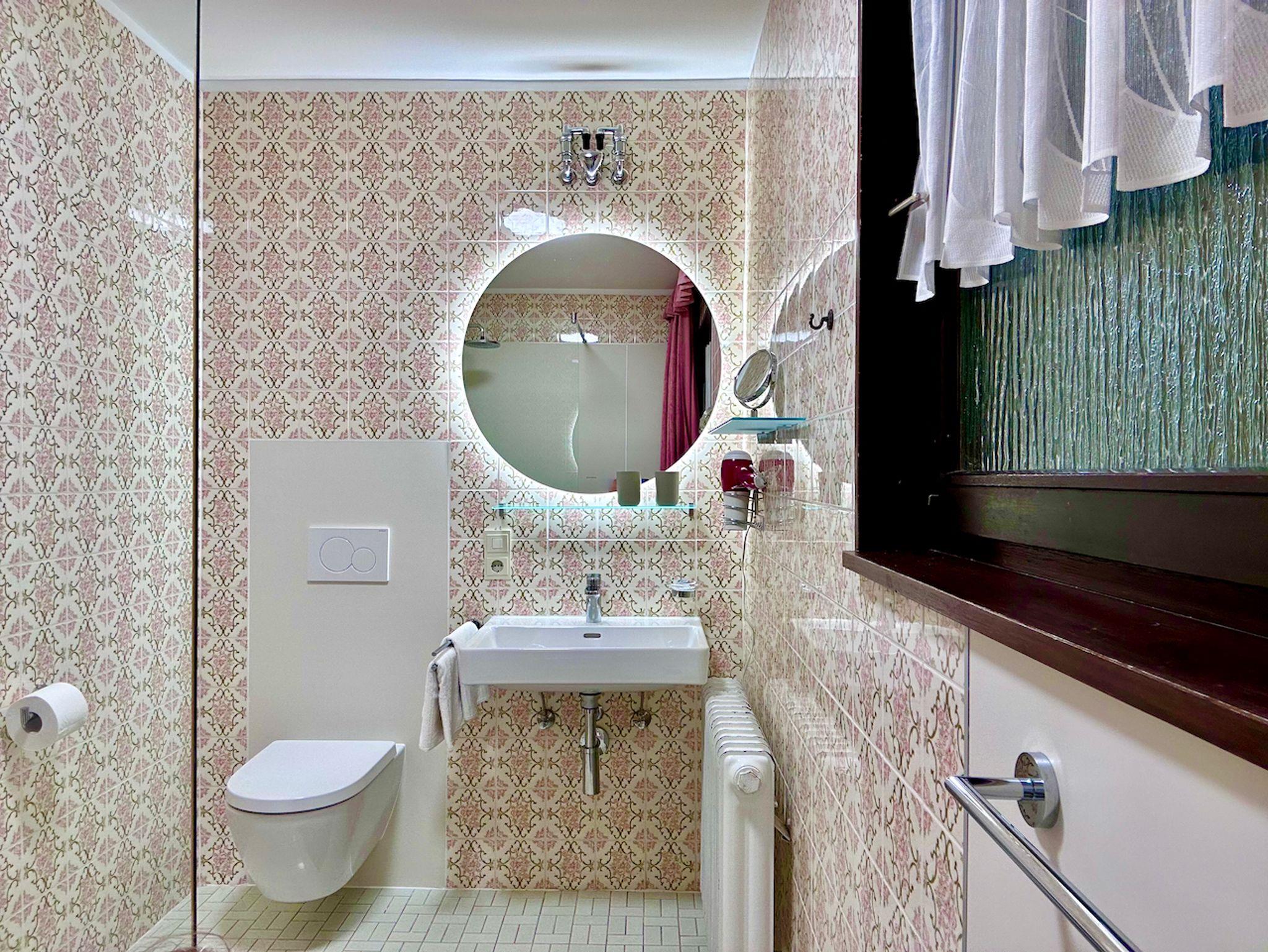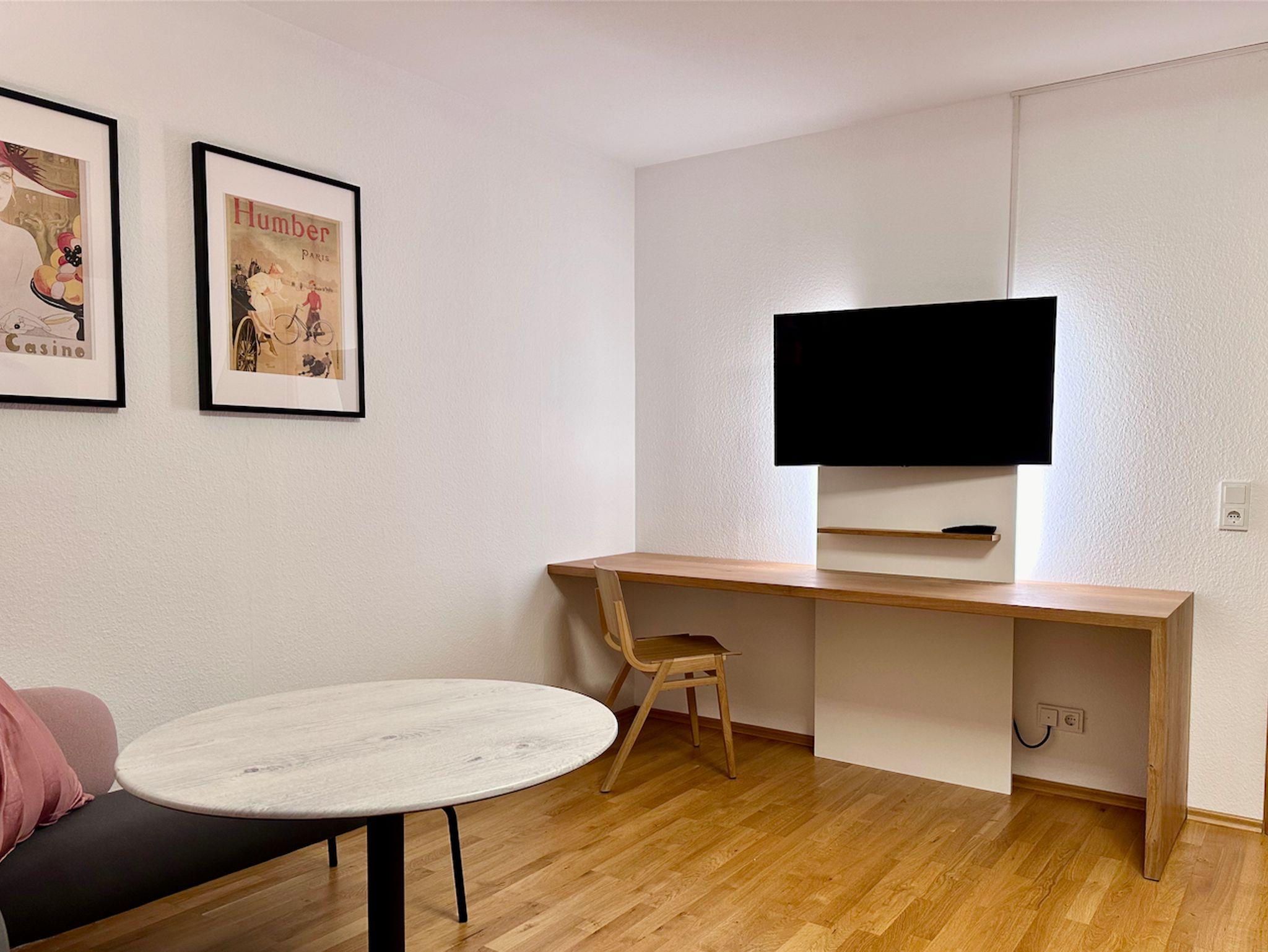 Sie wohnen in einem gemütlichen Apartment mit großem Wohn-/Schlafraum im ersten Stock mit Balkon. Das Apartment ist mit einem Doppelbett ausgestattet. Zudem verfügt es über eine Miniküche ohne Backofen mit Kochfeld im Eingangsbereich, mit der Sie eine Brotzeit oder Pause sehr gut zubereiten können. Im Wohn-/Schlafraum ist eine Sitzgruppe vorhanden. Der Balkon ist geräumig und mit einer Sitzgruppe und einem Sonnenschirm ausgestattet. Ein PKW-Stellplatz ist vorhanden. WLAN ist kostenfrei. Die Chiemgau Thermen sind ca. 200 m entfernt und der Bahnhof in 5 Minuten fußläufig erreichbar.