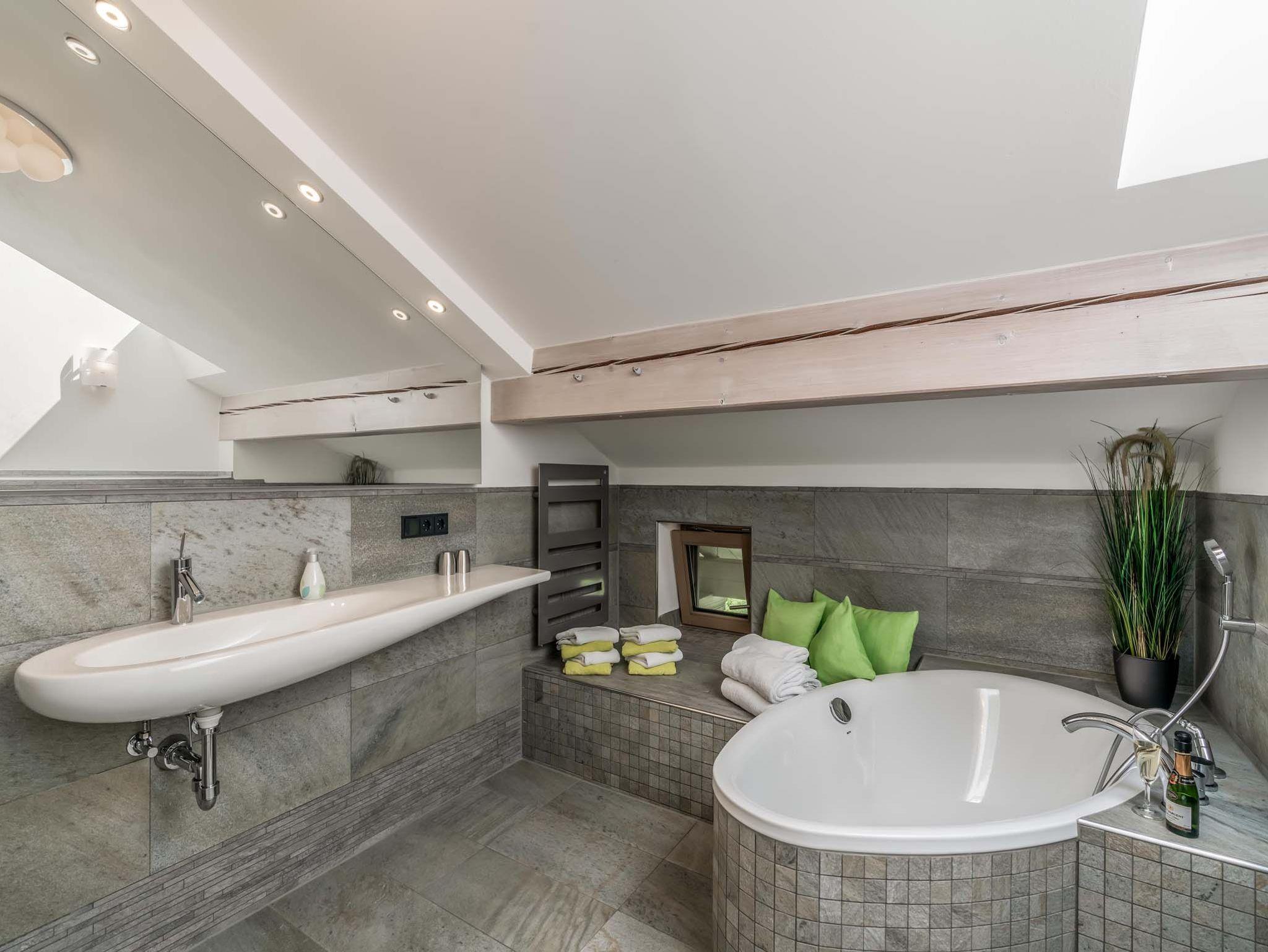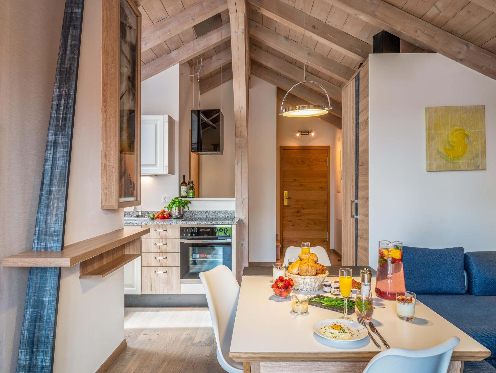 Dieses Appartement im Dachgeschoss in warmer Holzatmosphäre kombiniert Gemütlichkeit mit modernem Design. Das Appartement mit offenem Wohn- und Kochbereich verfügt über einen optisch abgetrennten Schlafbereich sowie ein separates Schlafzimmer. Im Bad befindet sich neben einer Regendusche eine großzügige Badewanne für die besondere Entspannung. Vom Balkon aus geniessen Sie den wundervollen Blick auf den Pelhamer See und die Berge. Hochwertige Ausstattung und kreatives Raumdesign runden das Gesamtpaket dieser Wohnung ab.