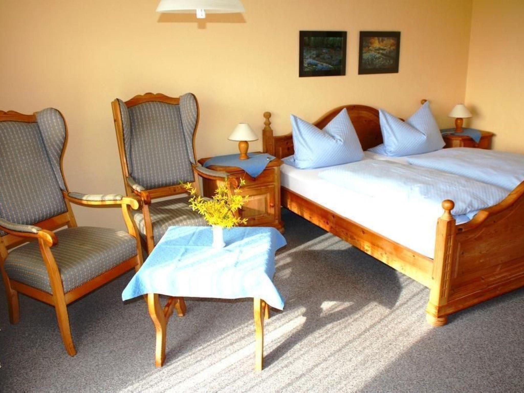 All the studios are on the first floor and measure around 33m². It has a living and sleeping room with a double bed (180 x 200cm), an open kitchen and a bathroom with a shower and WC. Each studio has central heating, satellite TV and a direct-dial telephone. The fully-equipped kitchenette provides a two-ring hob, a fridge, a coffee machine and crockery. You can enjoy a lovely view out onto open nature from the comfortable high-backed armchairs.
