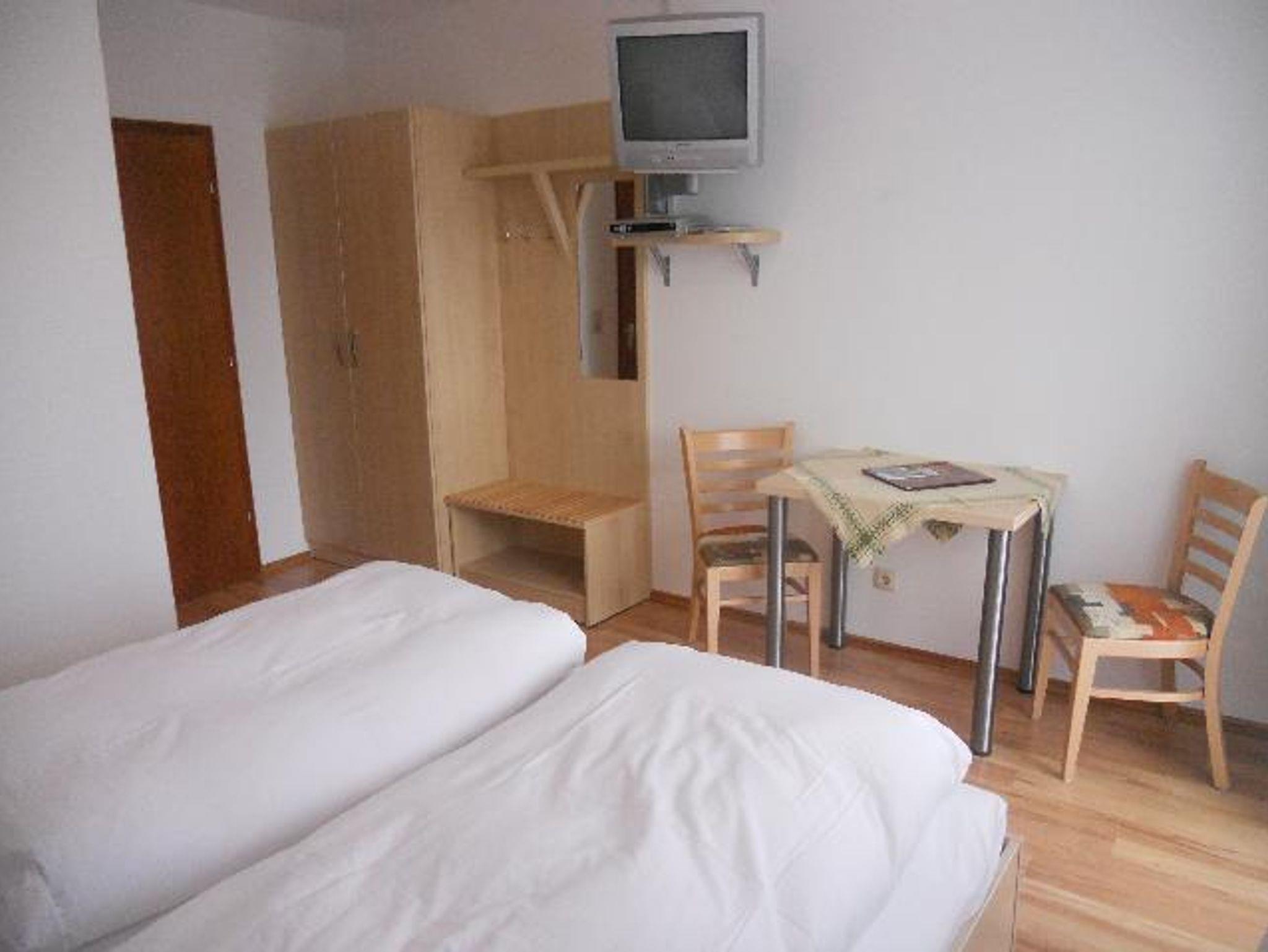 WC und Waschbecken am Zimmer, Etagendusche, TV, Radio, Balkon/ Terrasse, Doppelbette mit beidseitig verstellbaren Lattenrosten und offenem Fußende, Laminatboden
