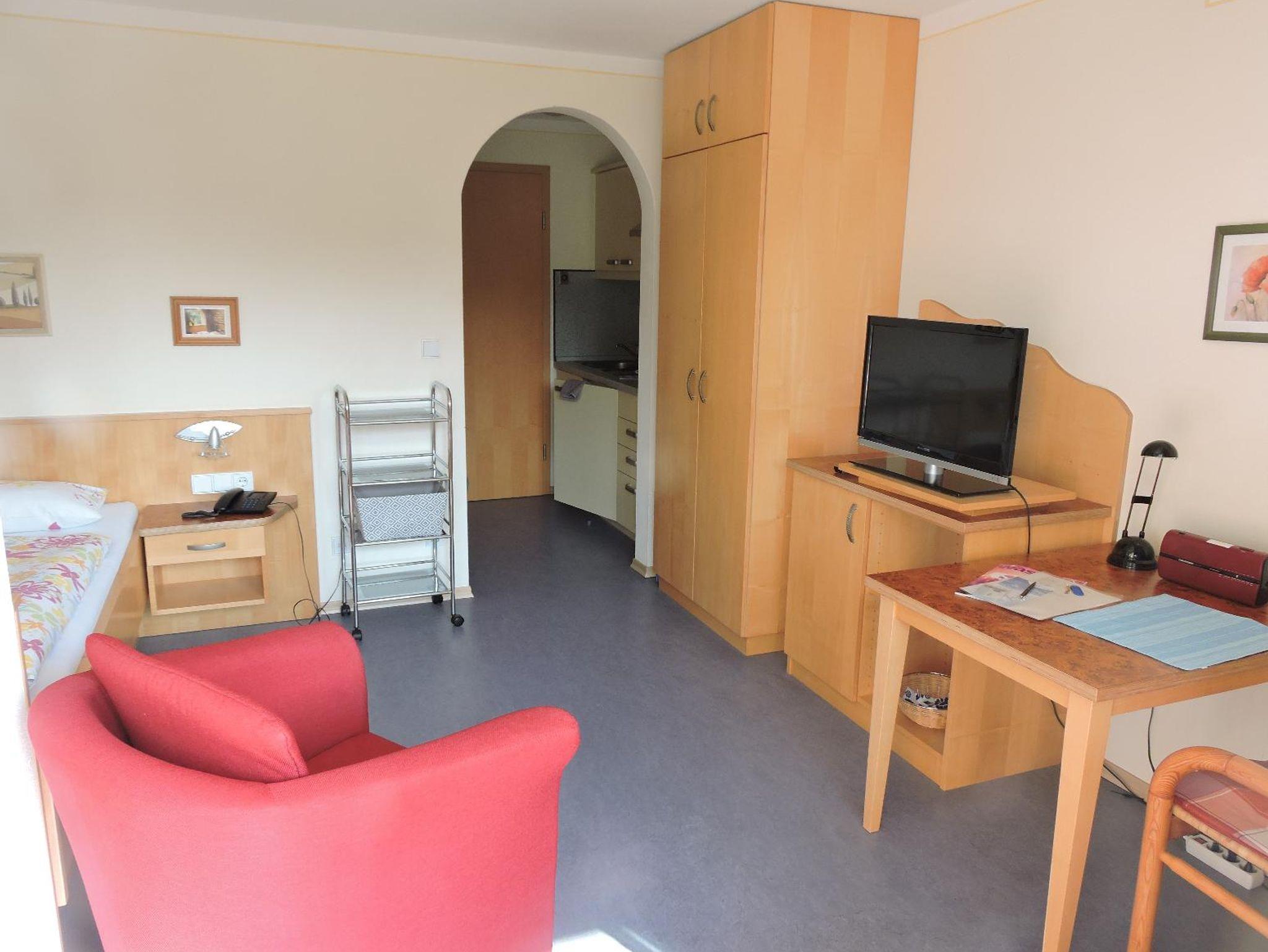 Südseite, ruhig gelegen. TV( man kann auch vom Bett aus fernsehen), Couch, Essplatz, Telefon, Safe, W-Lan kostenlos,