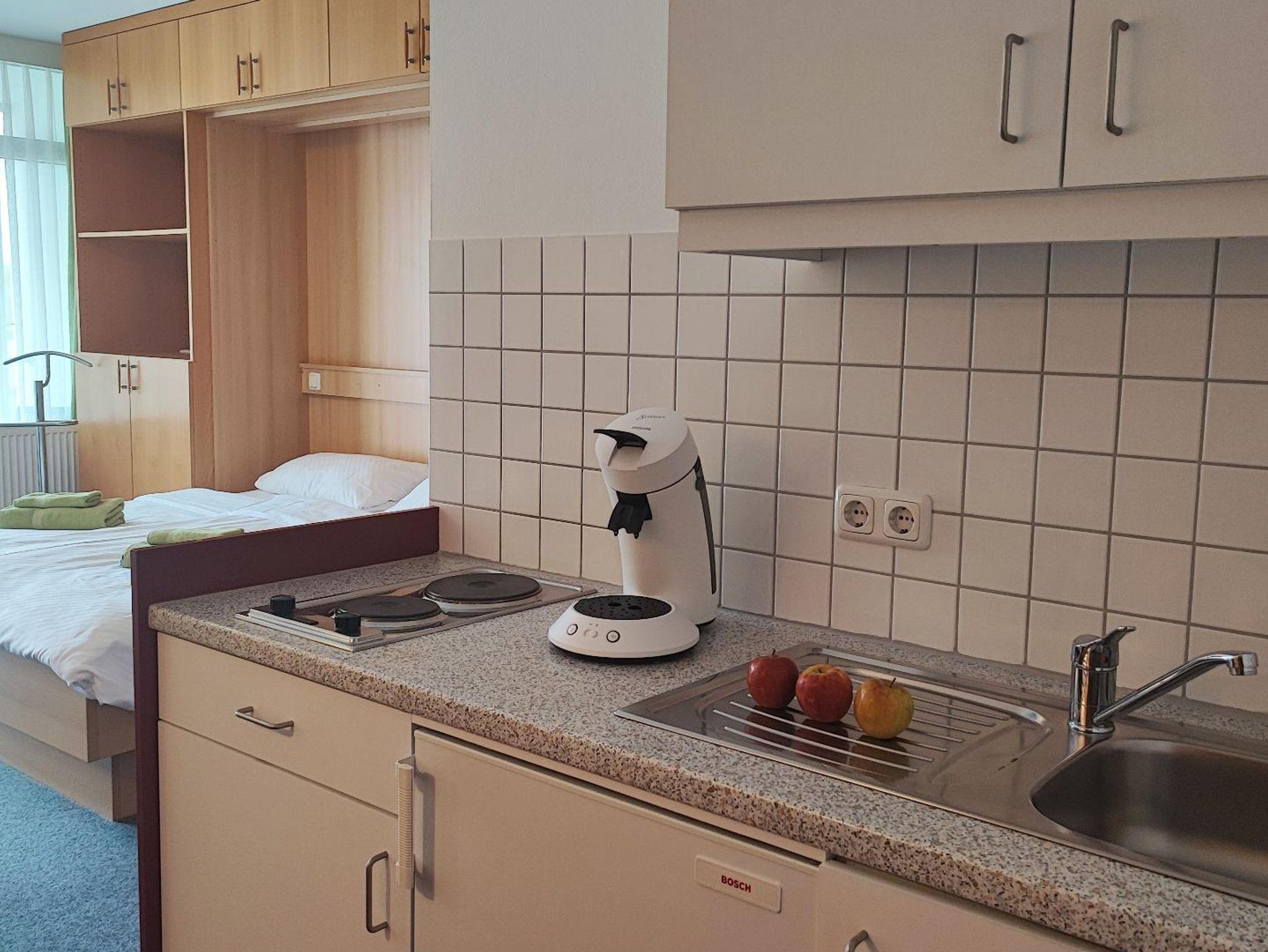 • Kochnische (Kühlschrank, 2 Herdplatten, Kaffeemaschine)