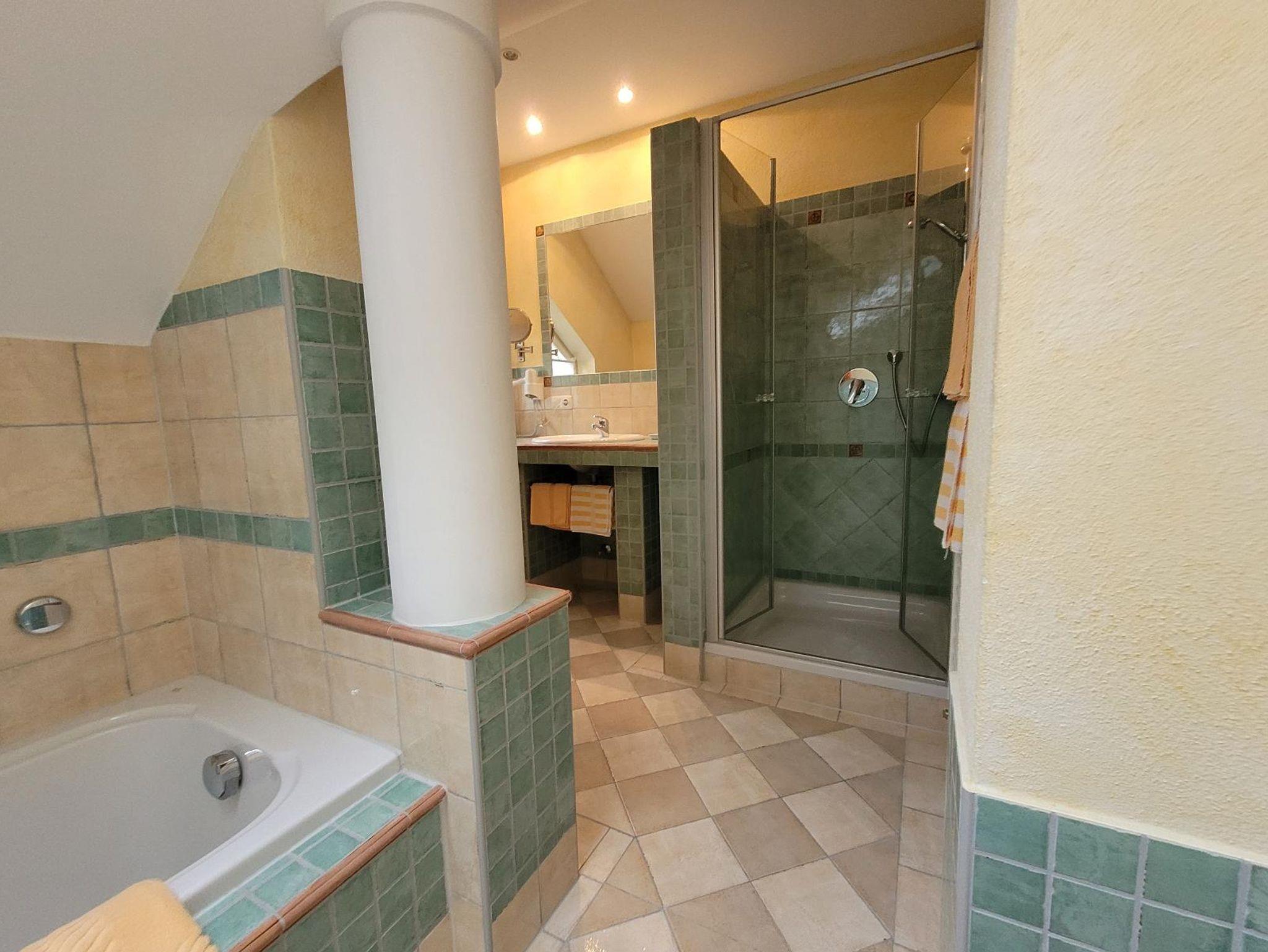 Dusche/Badewanne und WC, Zimmersafe, Bettwäsche, Hand- und
