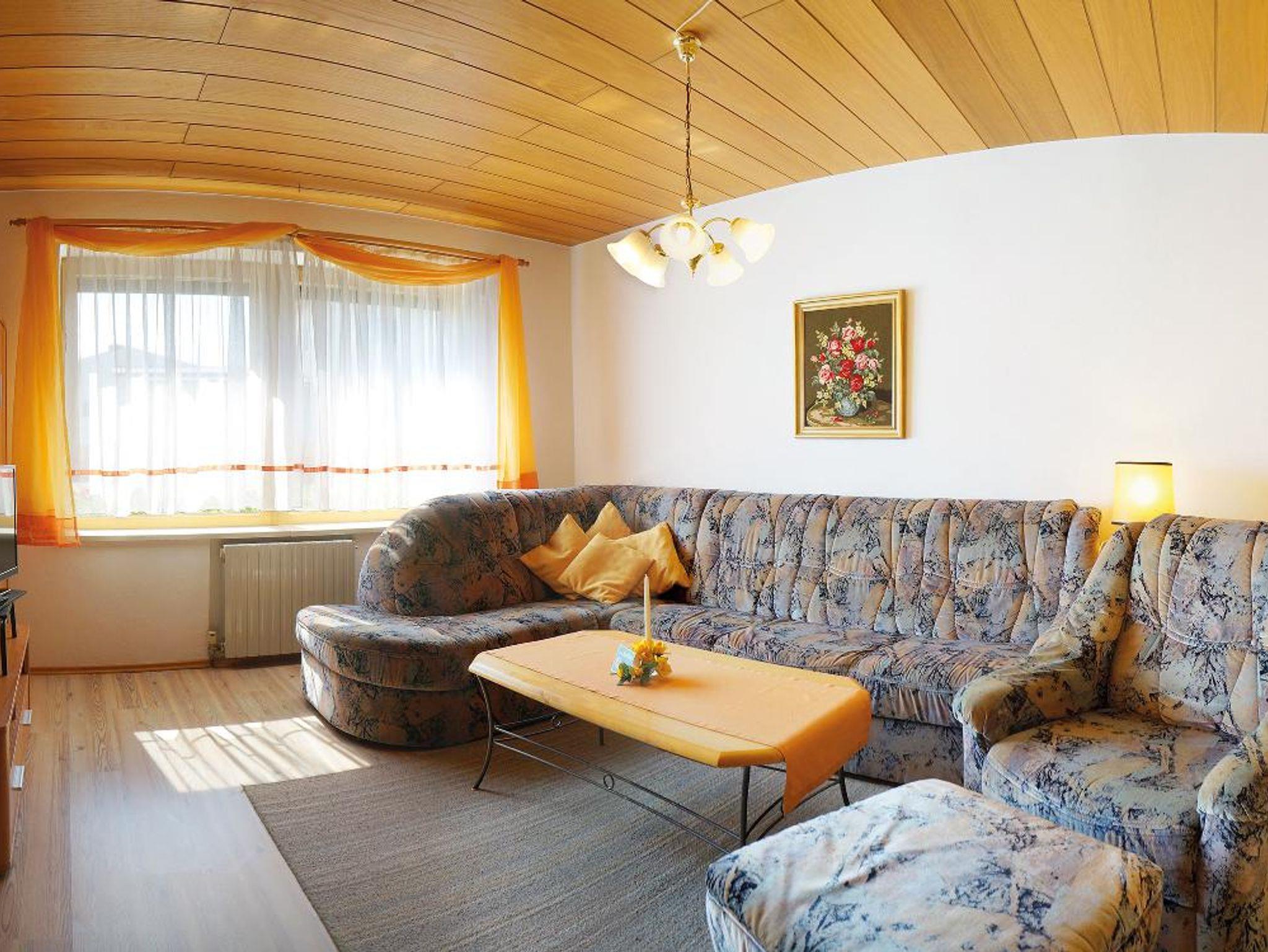 Das gemütliche Wohnzimmer mit großem Sofa Fernsehsessel und Flachbild -TV lädt zum Verweilen ein. Das Sofa bietet auch für 1 Person eine Schlafmöglichkeit.