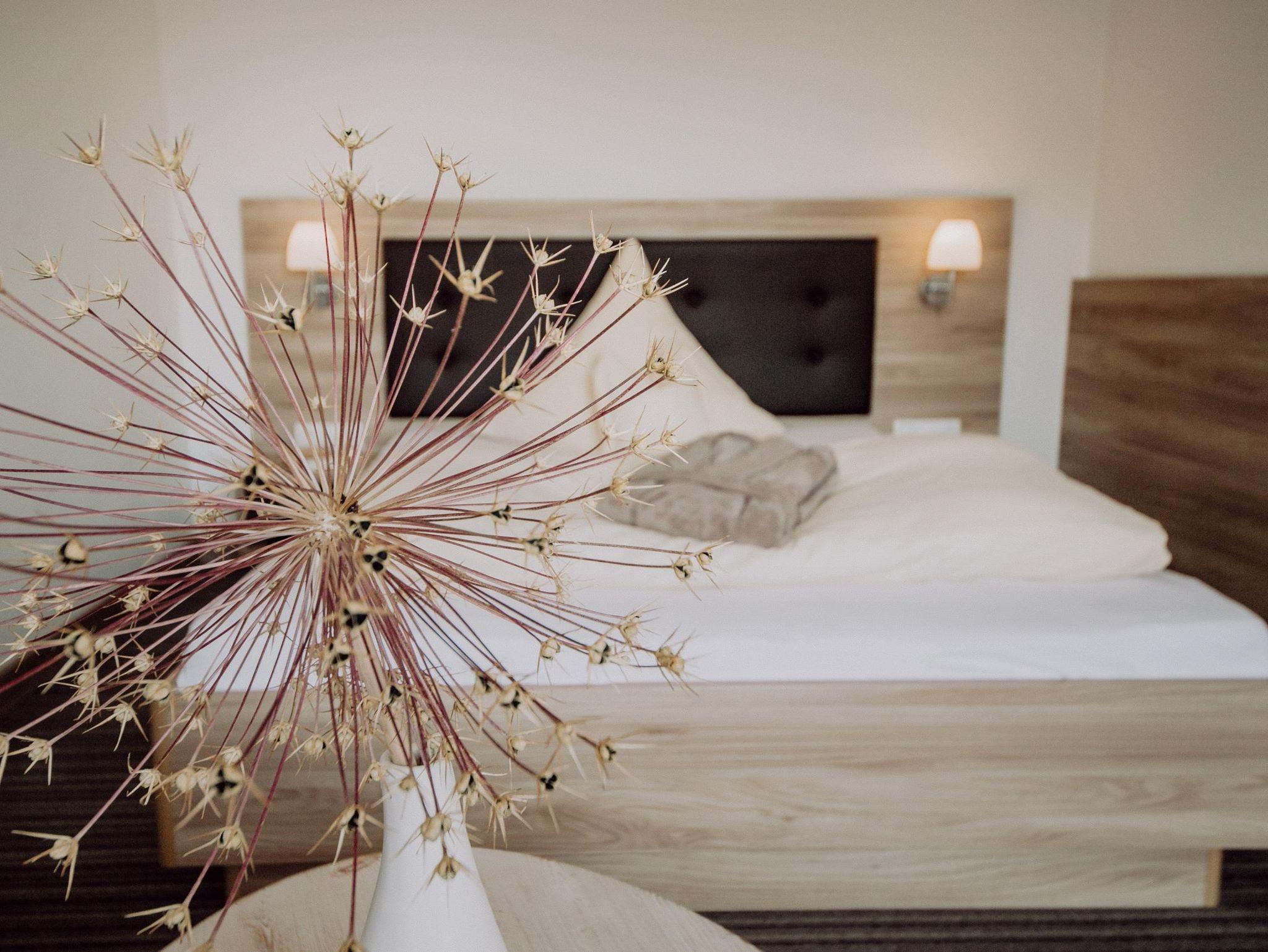 Zweibettzimmer laden zum Verweilen ein. Im großzügigen Frühstücksraum mit