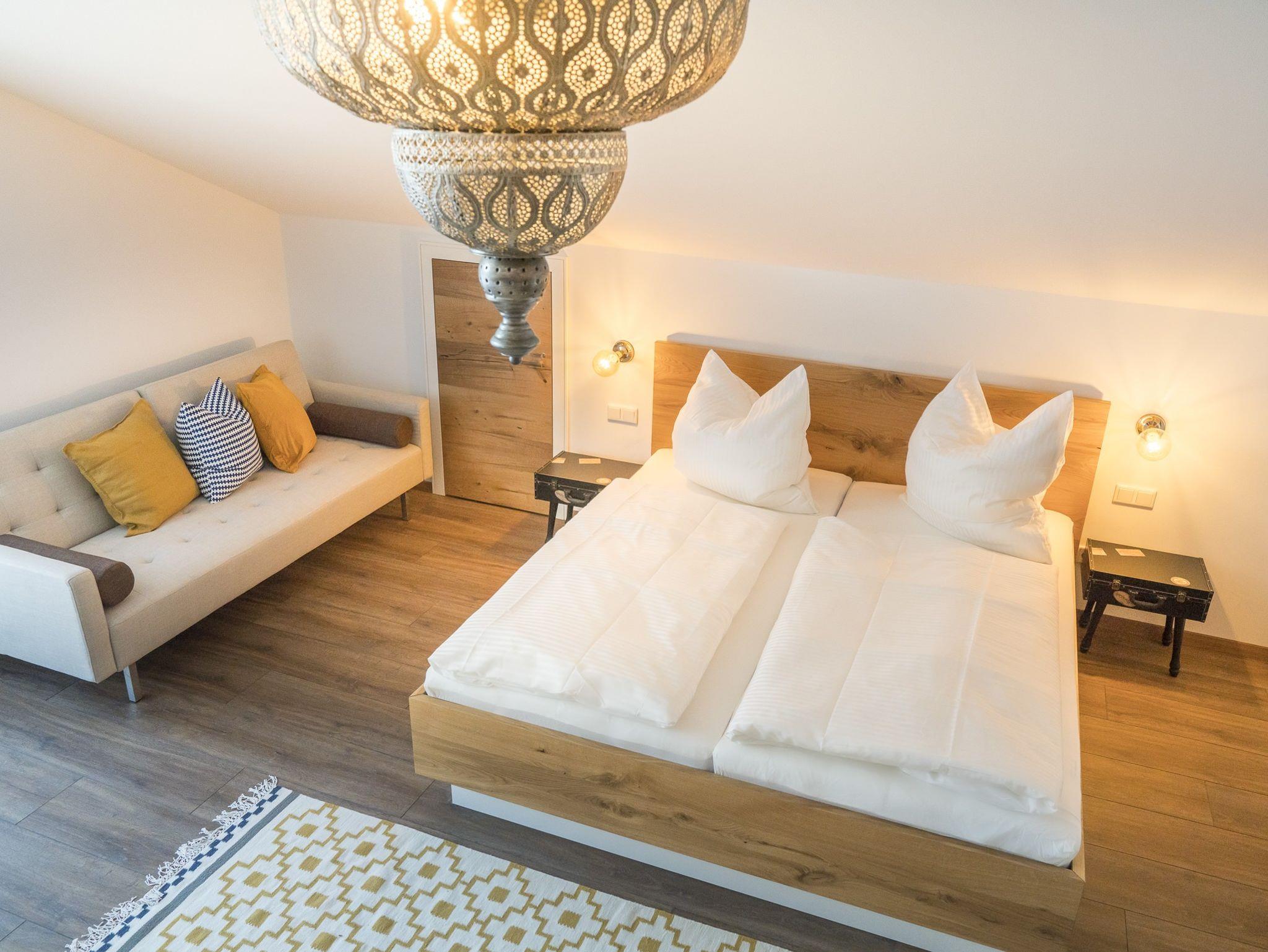 Sie dürfen sich auf den Charme, des früheren Kinos von Bad Feilnbach, freuen. Unsere drei Doppelzimmer, teils mit Balkon, sind nach Kinofilmen benannt und im passenden Stil eingerichtet. Gerne können Sie ein Zimmer auch zu dritt belegen (die Schlafcouch ist 183 cm lang und 130 cm breit). Unsere Gästezimmer befinden sich im Dachgeschoss - ein Aufzug ist vorhanden. Gerne können Sie Ihre Fahrräder in der Garage abstellen.
