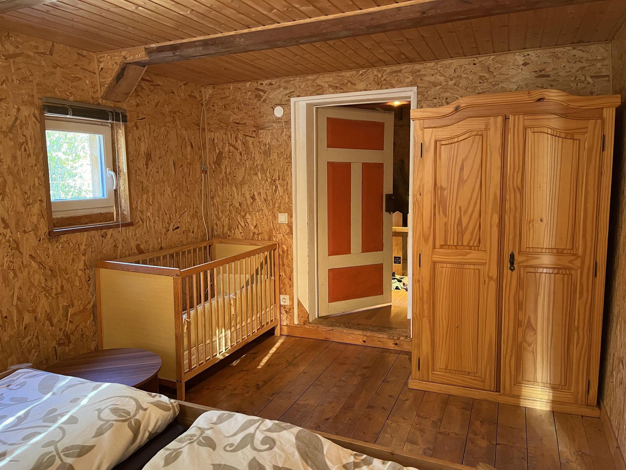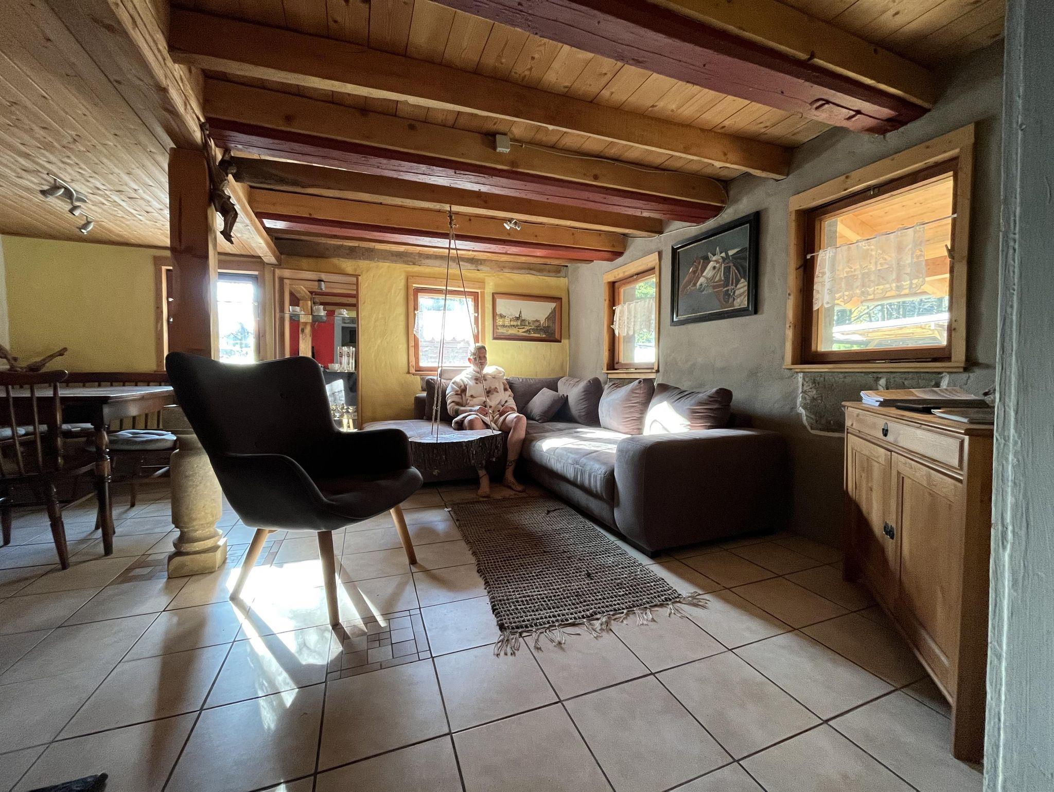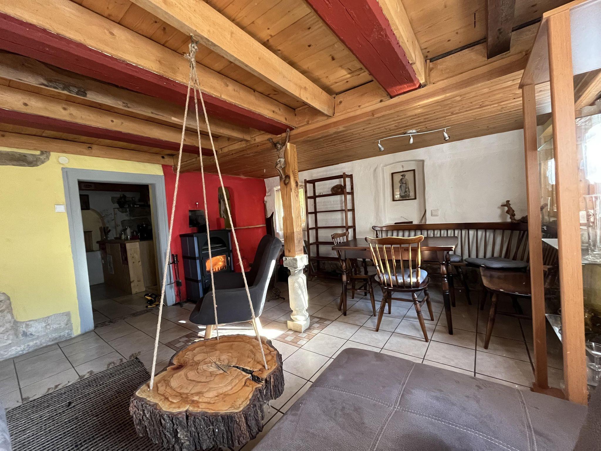 Es erwartet Sie eine geräumige rustikal sanierte Ferienwohnung über 2 Etagen mit separatem Eingang. Im Erdgeschoss befinden sich die Küche und das Wohnzimmer mit einer Essecke für 4 Personen, gemütlicher Sitzgruppe und TV. Im Obergeschoss befinden sich die beiden Schlafzimmer. Das Elternschlafzimmer ist mit einen Doppelbett eingerichtet und das Kinderzimmer mit zwei Einzelbetten. Das Bad verfügt über Dusche und WC und liegt ebenfalls im Obergeschoss.