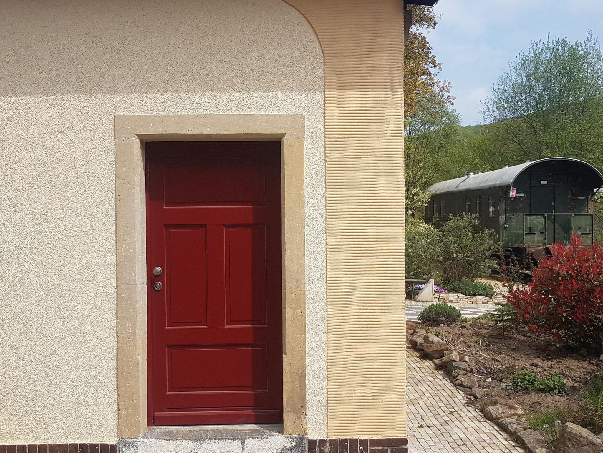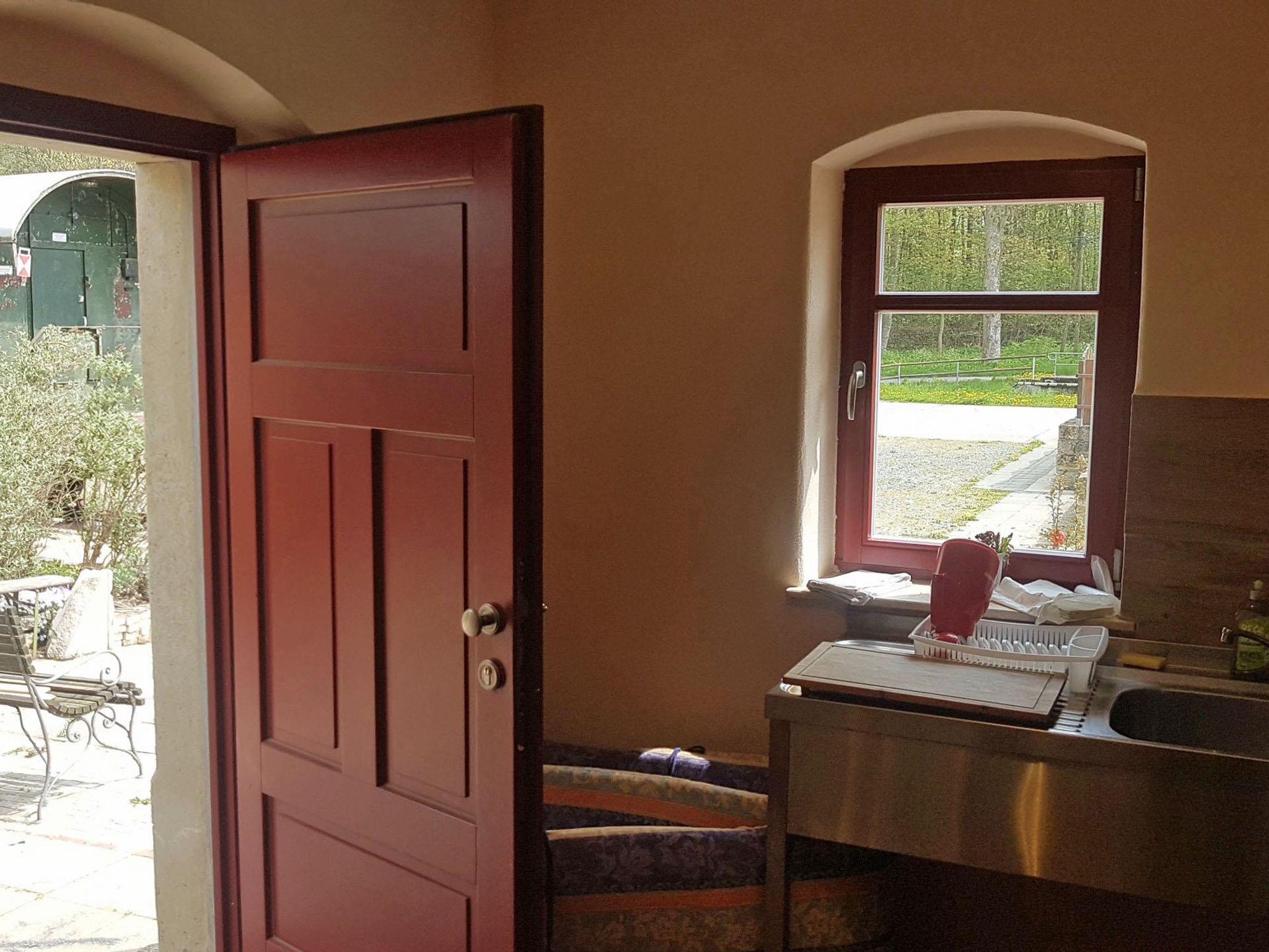 Direkt an das ehemalige Bahnhofsgelände schließt sich ein Park mit Kinderspielplatz und Teich an. Auf unserem Grundstück befindet sich eine Tischtennisplatte und ein kleiner Spielplatz mit Holzlok. Direkt vor der Küche mit TV befindet sich eine Grillecke mit Pavillon, wo man bei schönem Wetter auch essen kann.