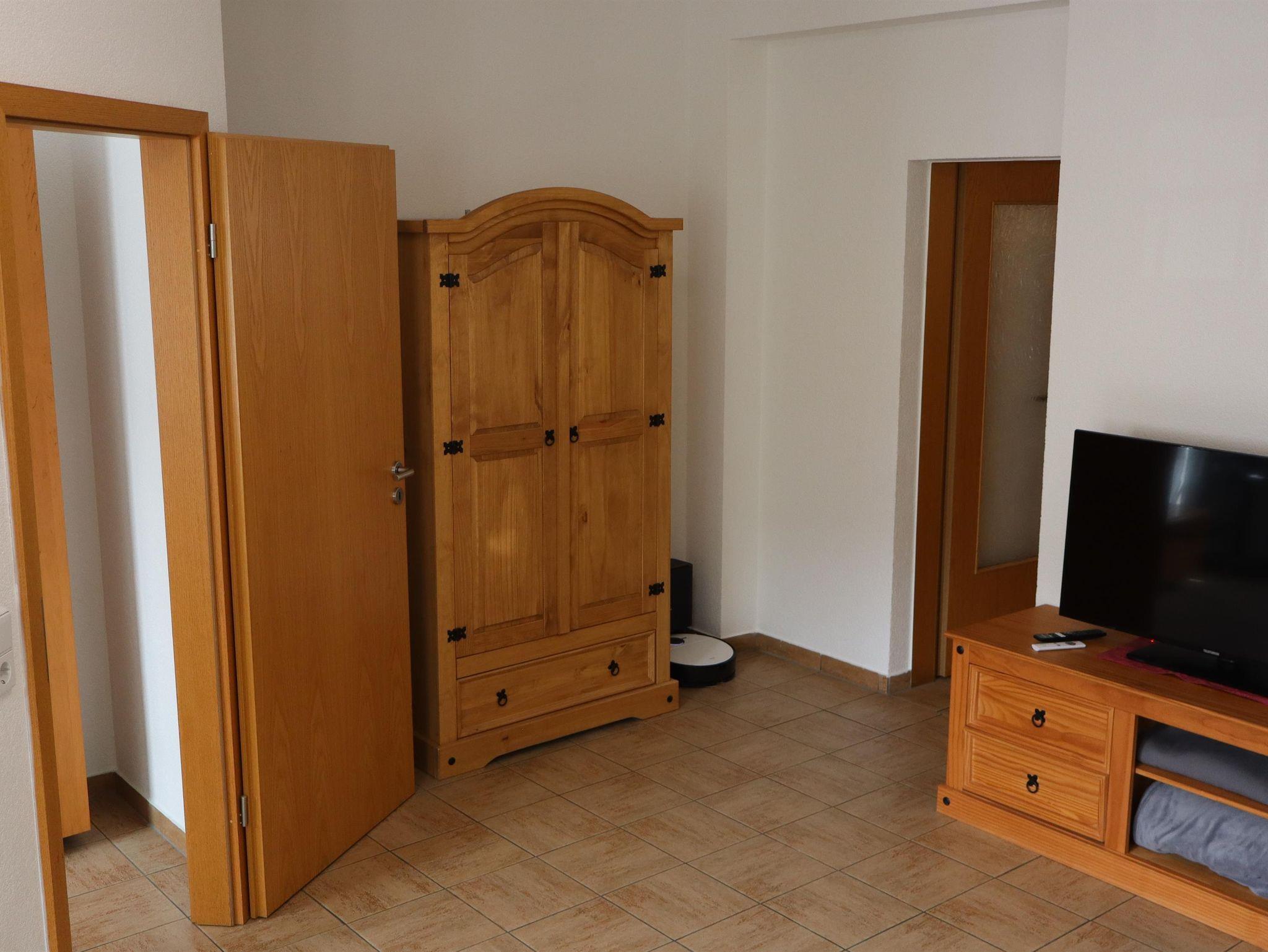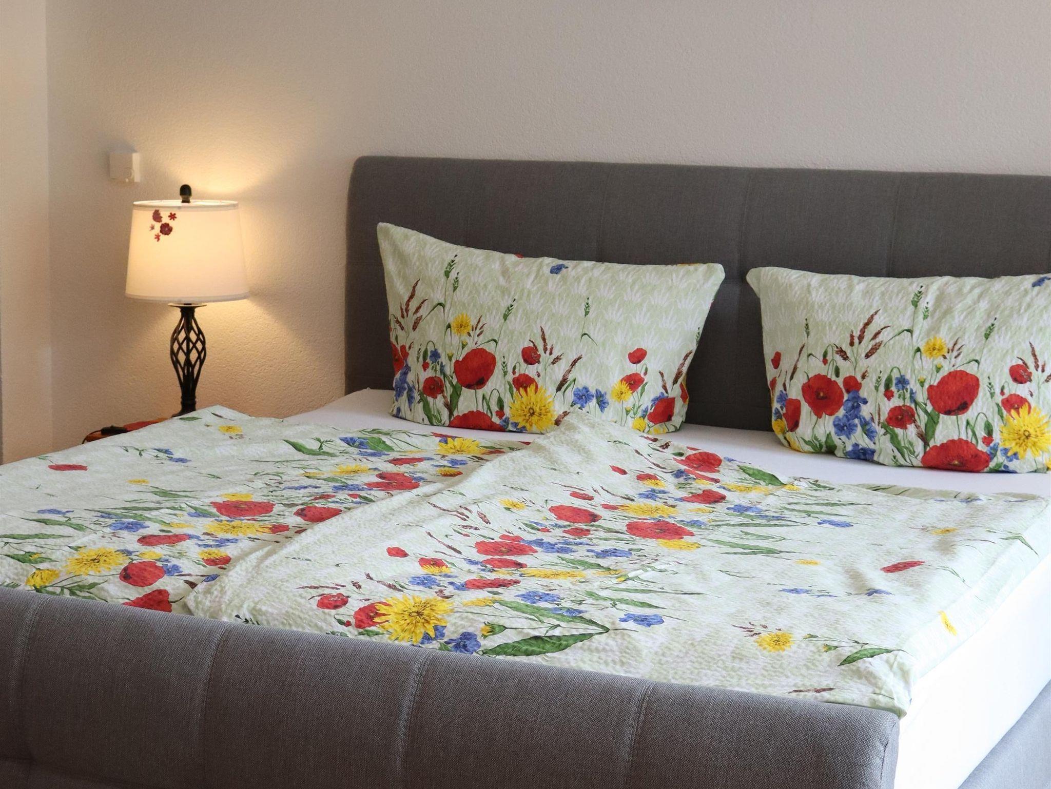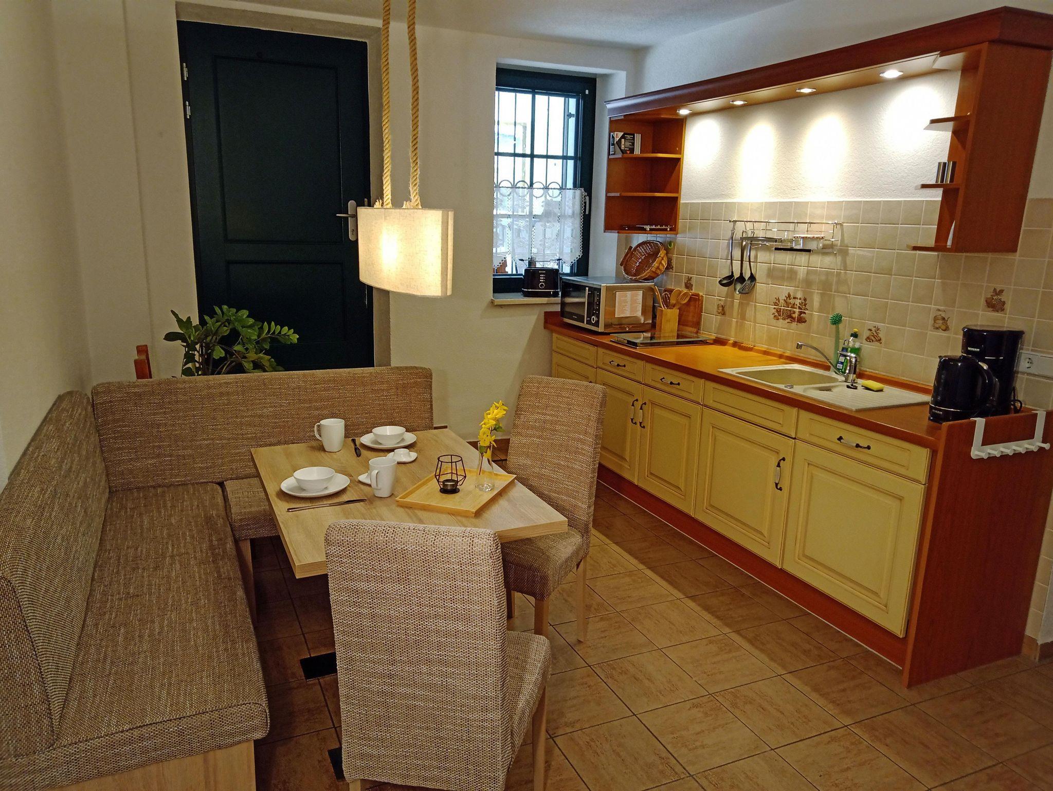 In der Ferienwohnung können bis zu 2 Personen ihren erholsamen Urlaub genießen. Sie ist ca. 63 qm groß und beinhaltet einen Wohn-/Schlafraum mit einem großen stabilen Polsterbett und 2 bequemen Sesseln, Kleiderschrank und Kommode sind ebenfalls vorhanden. Ein TV- Flachbildschirm mit Streamingdiensten und kostenlosem WLAN steht ebenfalls zu Ihrer Verfügung. In der Küche können Sie Platz nehmen in der gemütlichen Essecke und finden alles, was man zum Kochen benötigt. Töpfe, Pfannen, Geschirr und Gläser aller Art. Ebenfalls finden Sie Kaffee- und Teezubehör und für Ihre erste Tasse Kaffee nach einer anstrengenden Anreise ist auch alles vor Ort. Unser Bad ist klein aber fein, mit Dusche und Waschbeckenunterschrank im modernen Design.