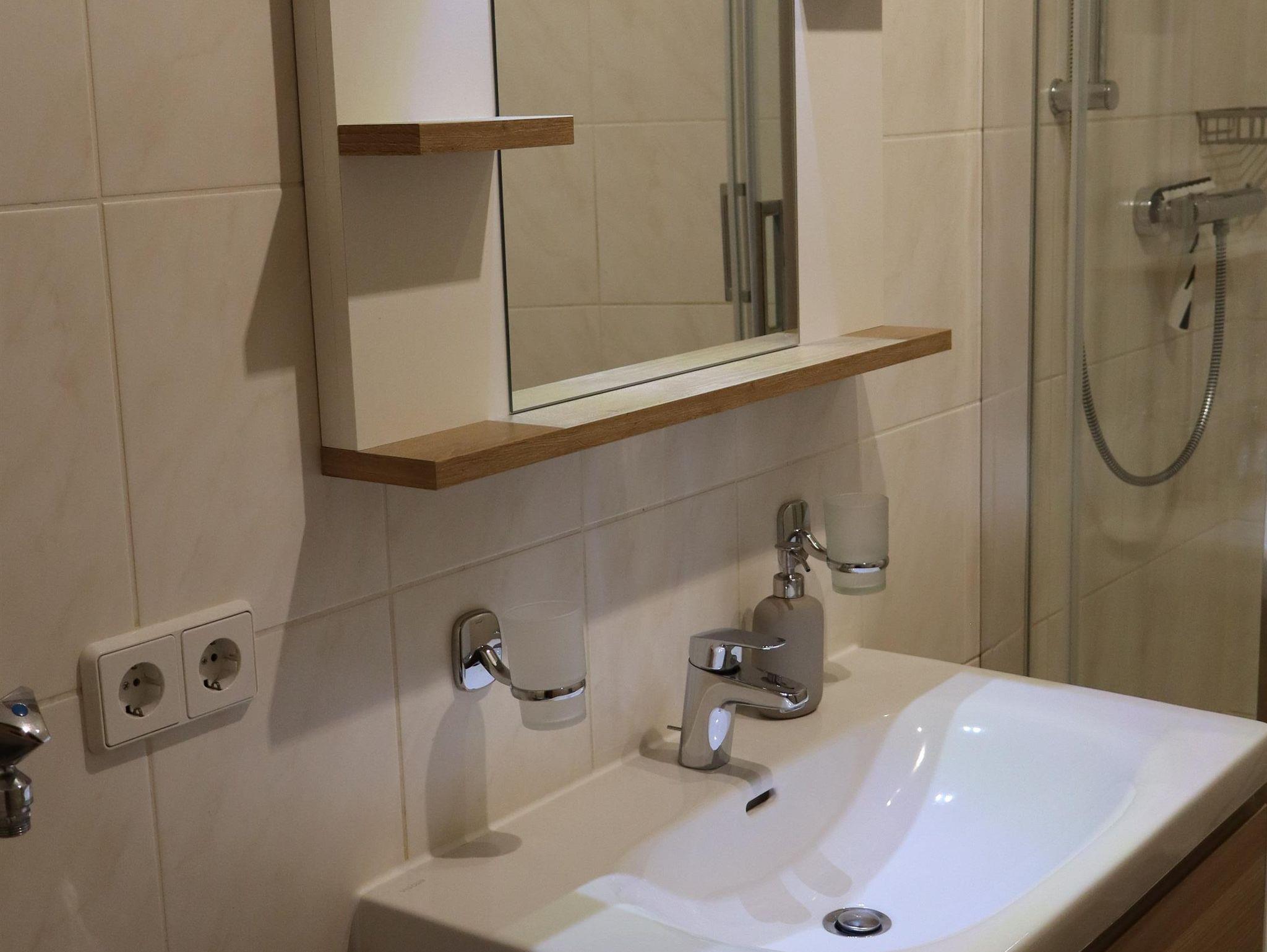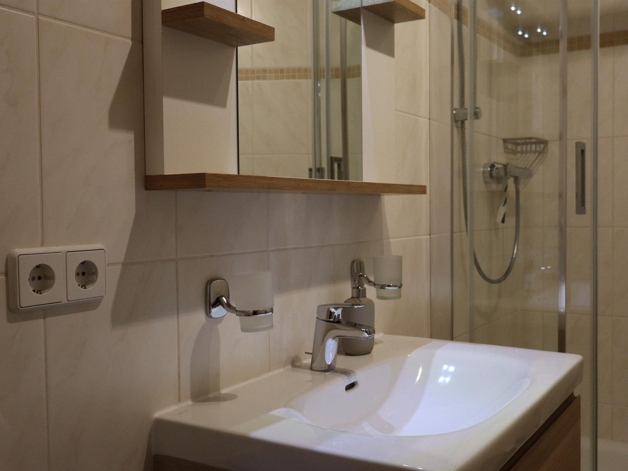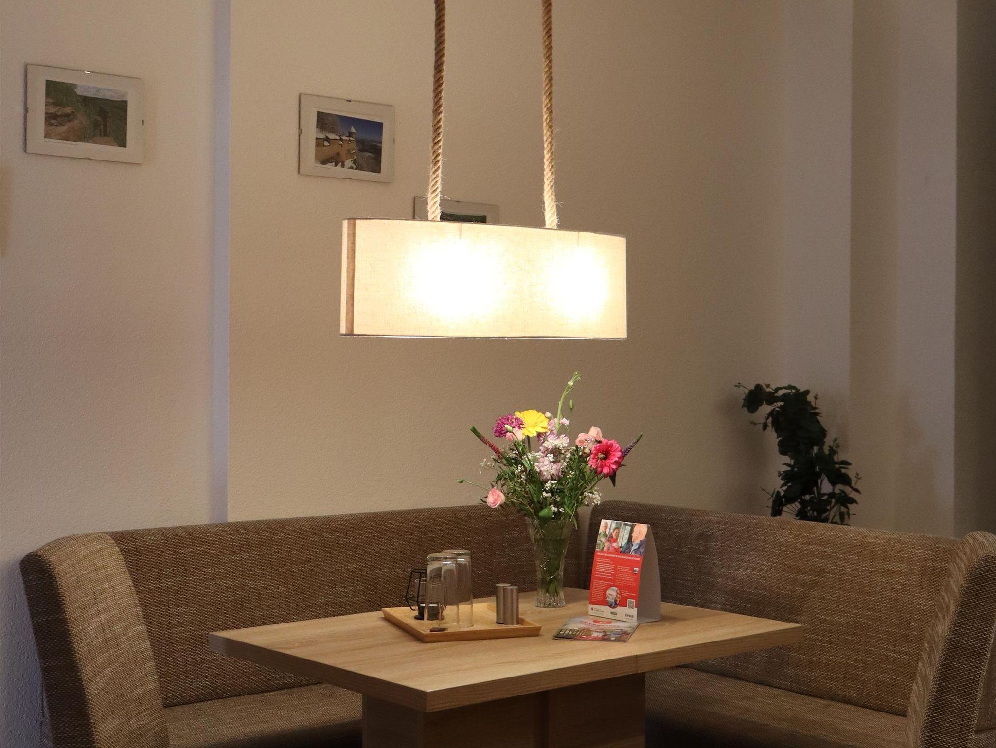 In der Ferienwohnung können bis zu 2 Personen ihren erholsamen Urlaub genießen. Sie ist ca. 63 qm groß und beinhaltet einen Wohn-/Schlafraum mit einem großen stabilen Polsterbett und 2 bequemen Sesseln, Kleiderschrank und Kommode sind ebenfalls vorhanden. Ein TV- Flachbildschirm mit Streamingdiensten und kostenlosem WLAN steht ebenfalls zu Ihrer Verfügung. In der Küche können Sie Platz nehmen in der gemütlichen Essecke und finden alles, was man zum Kochen benötigt. Töpfe, Pfannen, Geschirr und Gläser aller Art. Ebenfalls finden Sie Kaffee- und Teezubehör und für Ihre erste Tasse Kaffee nach einer anstrengenden Anreise ist auch alles vor Ort. Unser Bad ist klein aber fein, mit Dusche und Waschbeckenunterschrank im modernen Design.