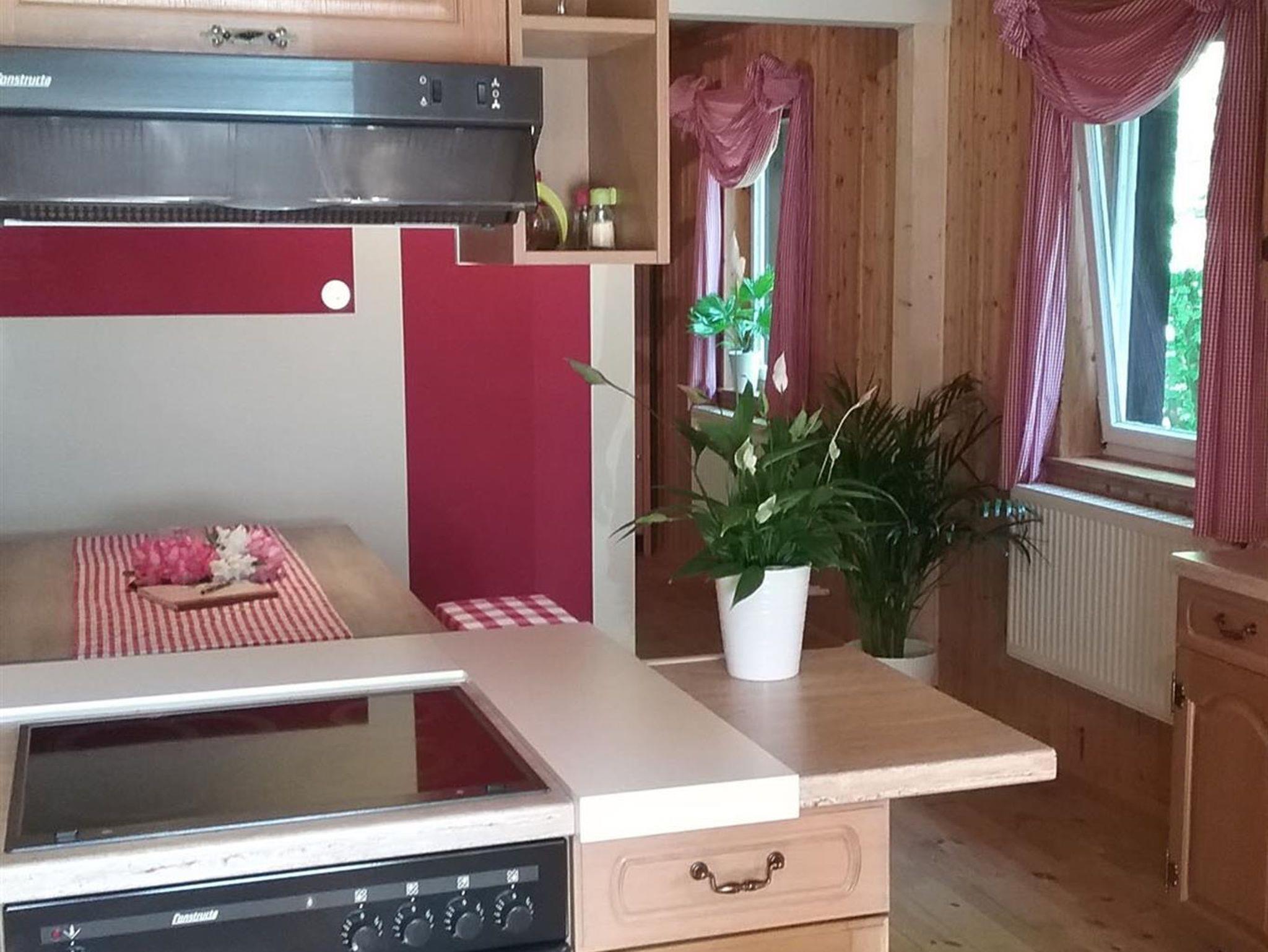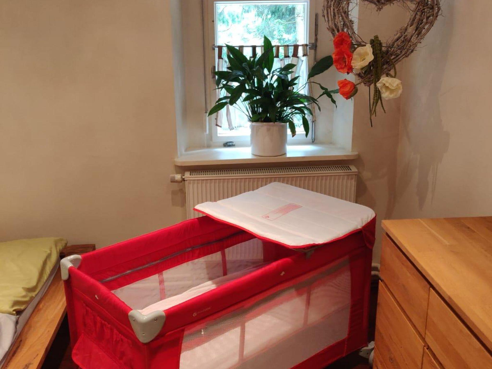 Die Mahlzeiten können in gemütlicher Runde an der modernen Essecke eingenommen werden. Wer in Ruhe seine Lieblingssendungen anschauen möchte, zieht sich ins separate Wohnzimmer auf die bequeme Couch zurück. Das Schlafzimmer erreichen Sie über eine gewendelte Holztreppe im ausgebauten Dachboden, dort ist ausreichend Platz für zusätzliche Übernachtungsgäste. Kinder können im ausziehbaren Jugendbett im Schlafzimmer der Eltern übernachten. Für unsere kleinen Gäste bis zu 3 Jahren steht ein Reisebett mit Wickelauflage zur Verfügung, an den gemeinsamen Mahlzeiten kann ihr Kind im Hochstuhl teilnehmen.