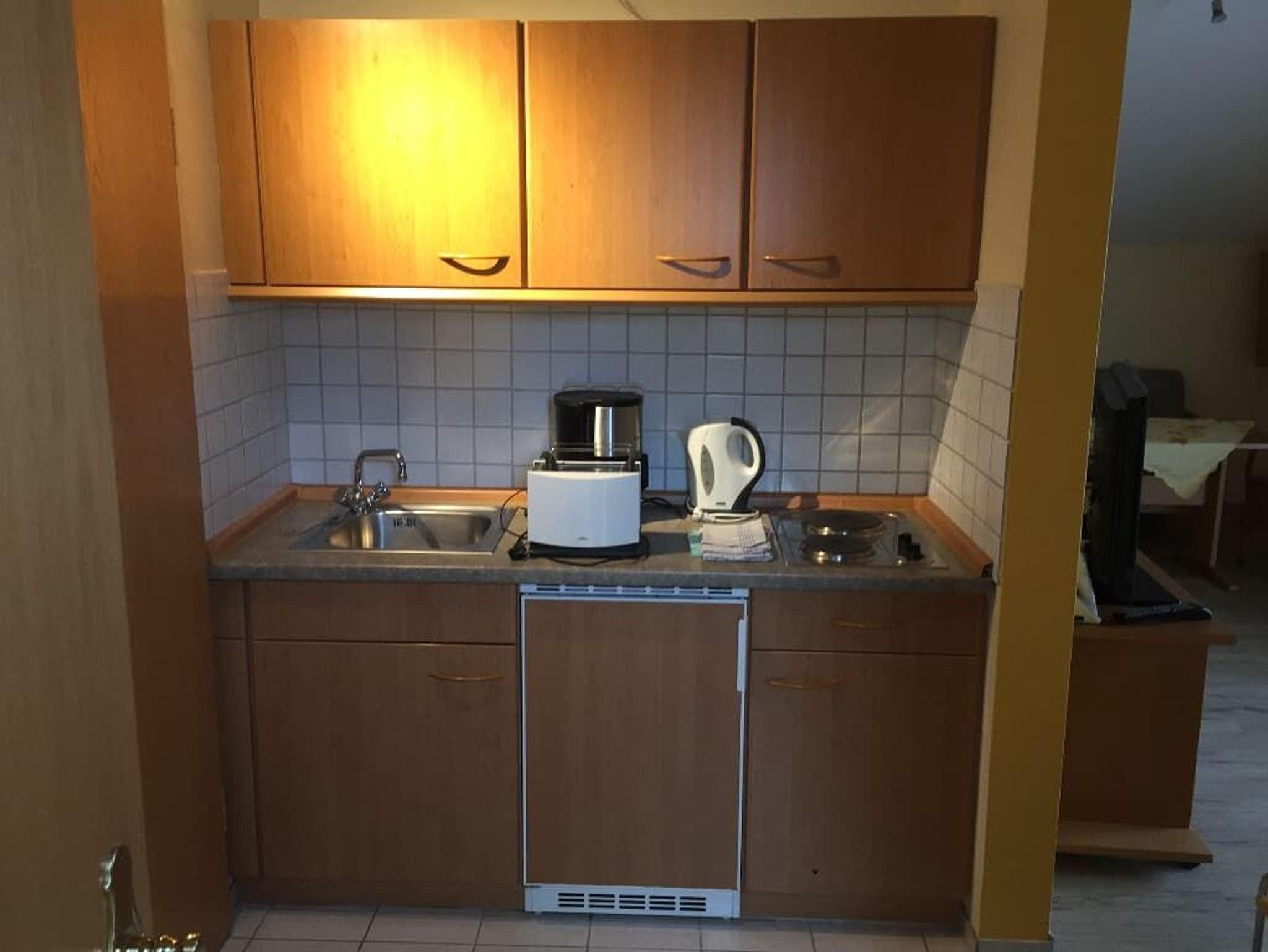 Außerdem verfügen unsere App. über eine voll ausgestattete Einbauküche mit Kaffeemaschine, Wasserkocher ,Toaster sowie Handtücher, Bettwäsche und Geschirrtücher.