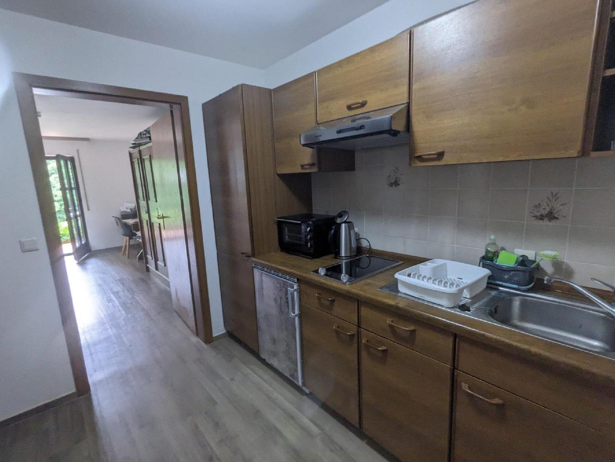 Unser gemütliches Appartement mit 36m² Wohnfläche bietet Platz für 1-2 Personen. Die Terrasse ist besonders zum Sonnenbaden geeignet für einen gemütlichen Abend. Der Ausblick ins Grüne und die direkte Nähe zur Therme machen eine romantische Atmosphäre. Das Sofa und Flachbild-TV lädt zum Verweilen ein. Die ausgestattete Küche mit Kühlschrank, inkl. kleinem Gefrierfach, Herd, Backofen, Wasserkocher, Toaster und Geschirr lässt keine Wünsche offen. Das Appartement verfügt über ein Doppelbett, Schrank und Esstisch. Es gibt einen kleinen Arbeitsplatz für diejenigen, die im Urlaub noch ein bisschen was tun müssen. Das Badezimmer mit Dusche, Spiegel und Handtuchtrockner rundet das Gesamtbild ab. Bettwäsche und Handtücher stehen zur Verfügung. Zum Reinigen Ihrer Kleidung steht eine Waschmaschine und Trockner im Haus zur Verfügung. Das WLAN können Sie kostenfrei nutzen. Wenn Sie gerne Ihren lieben Hund mitbringen möchten, er wird sich freuen über einen schönen Garten.