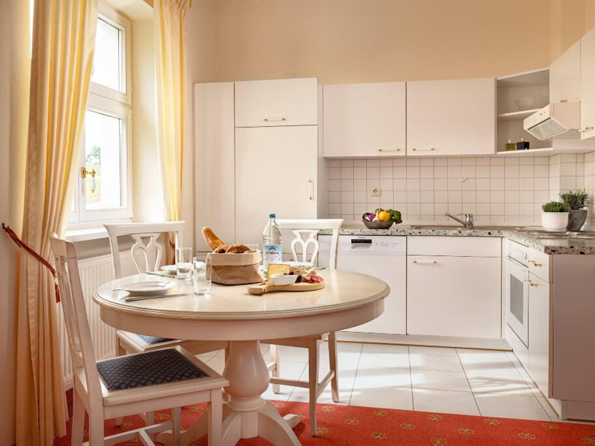 Kuschelige Ferienwohnung, 55 qm, im ehem. Kloster St. Salvator,Wohn- u. Schlafraum getrennt, Kochzeile mit Spülmaschine,