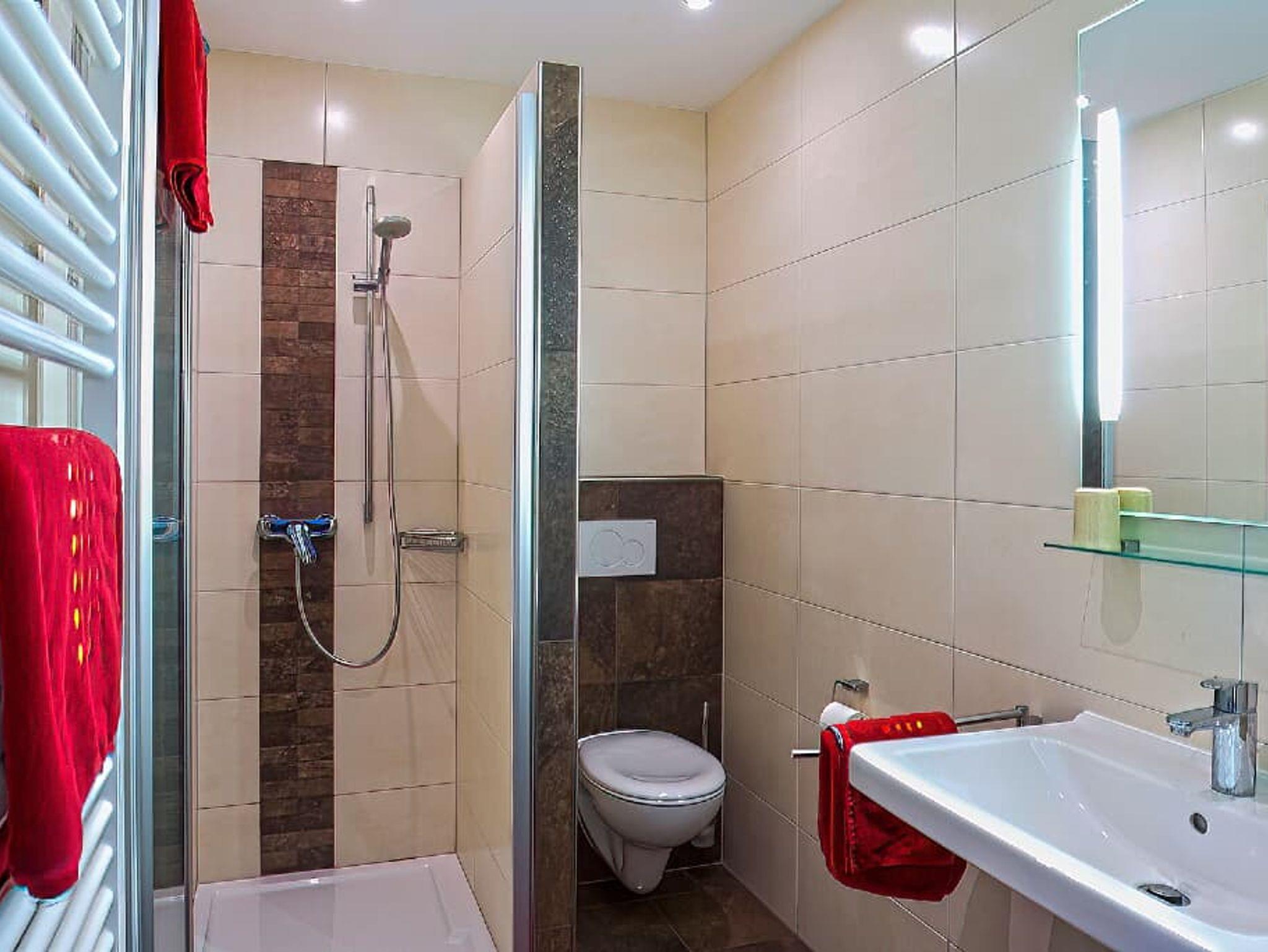 Dusche/WC,TV, Terrasse, Nichtraucherzimmer, Zustellbett möglich., kostenloses WLAN.