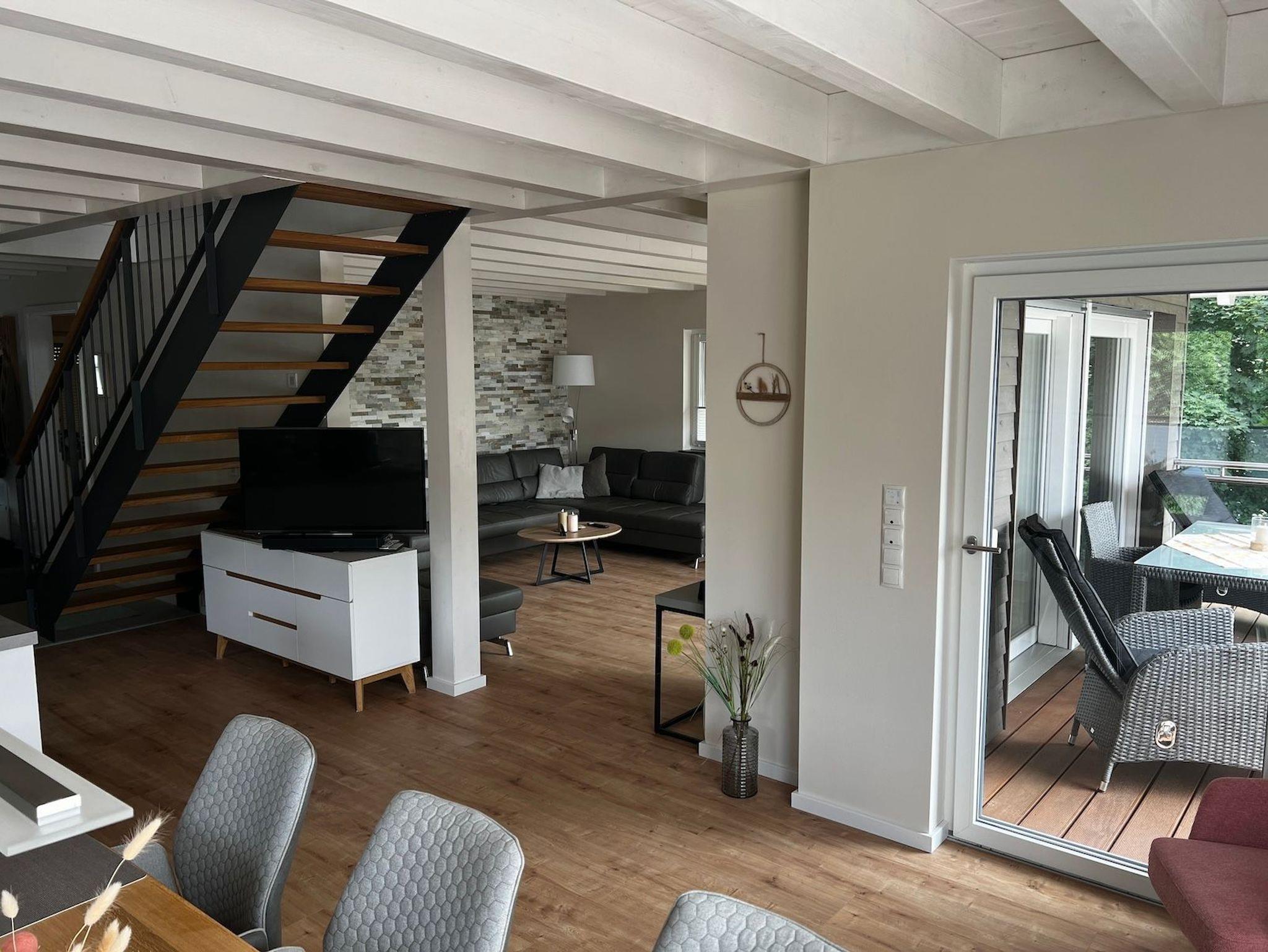 Das 2023 erbaute Ferienhaus mit Ferienwohnungen in Bad Grund im Harz besticht durch seine Ausstattung und die Lage direkt am Weltwald Harz. Die 96 qm-Wohnung für 4 Personen verfügt über 2 Schlafzimmern und das 160 qm-Ferienhaus / -wohnung sind mit einer offenen modernen Küche ausgestattet und sie verfügen über ein gemütliches Wohn-Esszimmer sowie modern ausgestattete Badzimmer und separate Gäste-WCs.