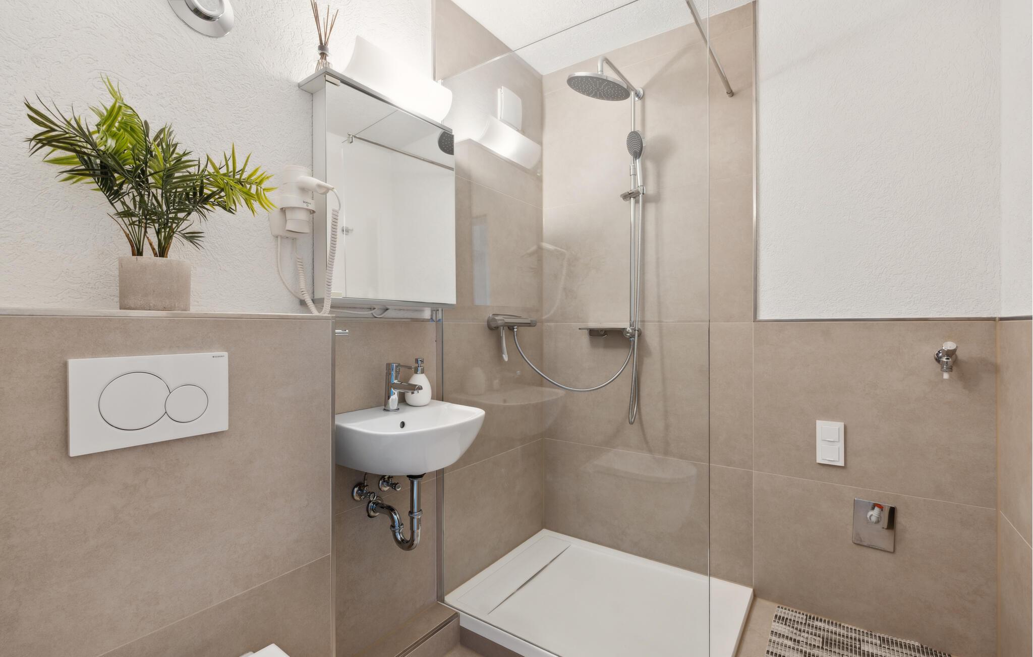 Badeværelse (nr. 1) - WC. Varmt og koldt vand. Bruser