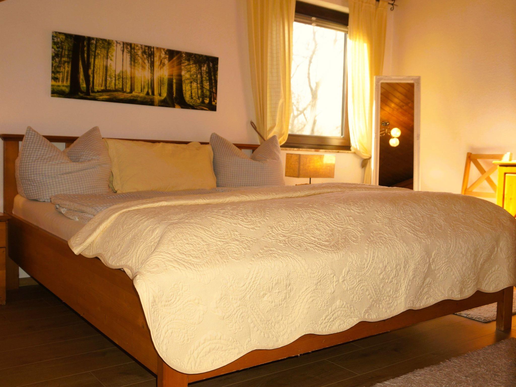 If you want to spend your holiday in a peaceful atmosphere with the forest right on your doorstep, then you've come to the right place! The flat is located in a very well-kept two-family house on the first floor and is equipped with all the comforts that a discerning guest expects. It has a separate entrance. It is flooded with sunlight, bright, modern, very lovingly and cosily designed. With its 84 square metres, it offers plenty of space for up to 4 people and has 2 bedrooms with a single bed and a sofa bed. Facilities: Our flat is in very good condition. It has a living room with large windows and a view of our forest. A cosy couch, an armchair, a fireplace, as well as a LED flat screen TV with satellite reception, DVD player and a music system with MP3, are of course part of our equipment. In the kitchen there is a dining area with a wonderful view of the Harz forest. The kitchen has a cooker with induction hob, fridge with separate freezer, dishwasher, microwave and of course a coffee machine, a Senseo pod machine, toaster, kettle and crockery. The bedroom is very spacious and has a double bed (1.80m), a large wardrobe with safe and a dumb waiter. The bathroom has a walk-in rain shower, a double washbasin, a towel dryer and a wall-mounted toilet. The 2nd bedroom is furnished with a single bed (90cm), an additional sofa bed and a chest of drawers. Linen hire is also possible and can be booked on request. Tea towels and table linen are provided free of charge. W-Lan and a safe are also part of the equipment and are free of charge.