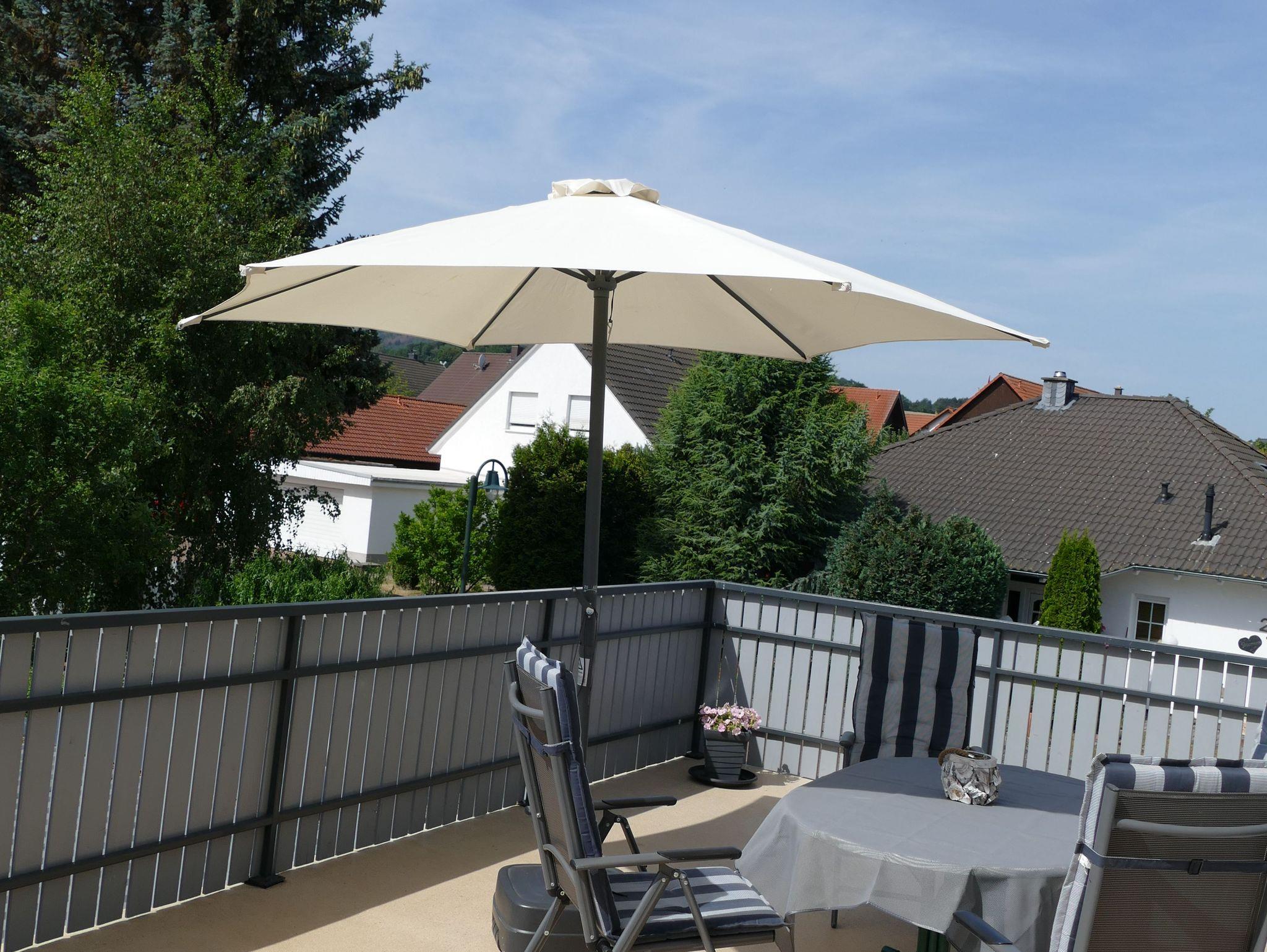 Die Wohnung befindet sich im ersten Obergeschoss. Sie verfügt über zwei Schlafzimmer mit je einem Doppelbett von 1,80m x 2,00m und einen Bett von 1,40m x 2.00m, einem Wohnzimmer mit großem Smart TV /Sat und Essecke. Eine komplett ausgestattete Einbauküche mit Geschirrspüler, Kaffeemaschine, Mikrowelle und vielem mehr. Ein Badezimmer mit Wanne und Dusche. Einem schönen 26m² große Balkon mit Blick zum Höchsten Berg im Harz, den Brocken.
