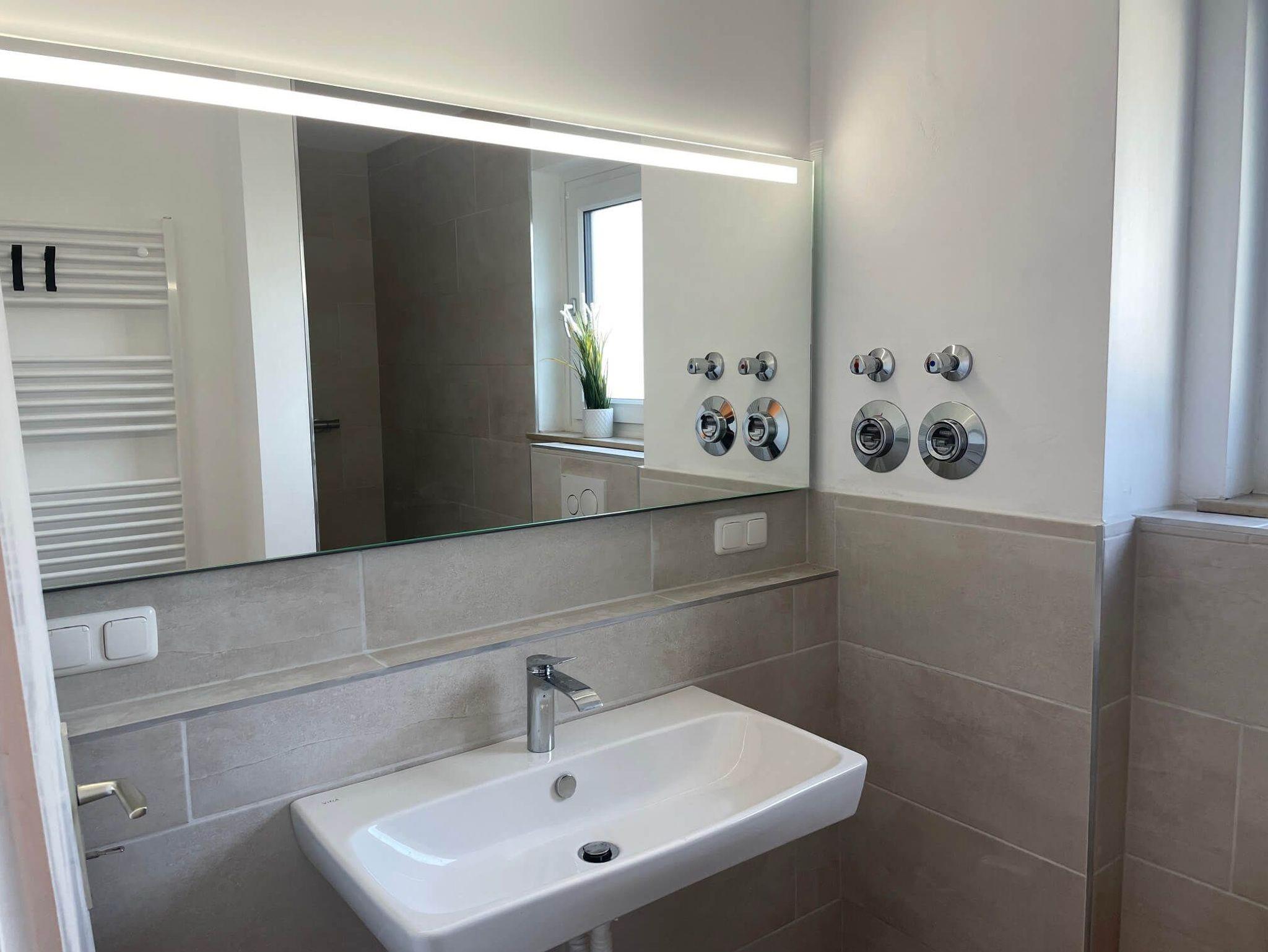 - Modernes Badezimmer mit Dusche, Haartrockner