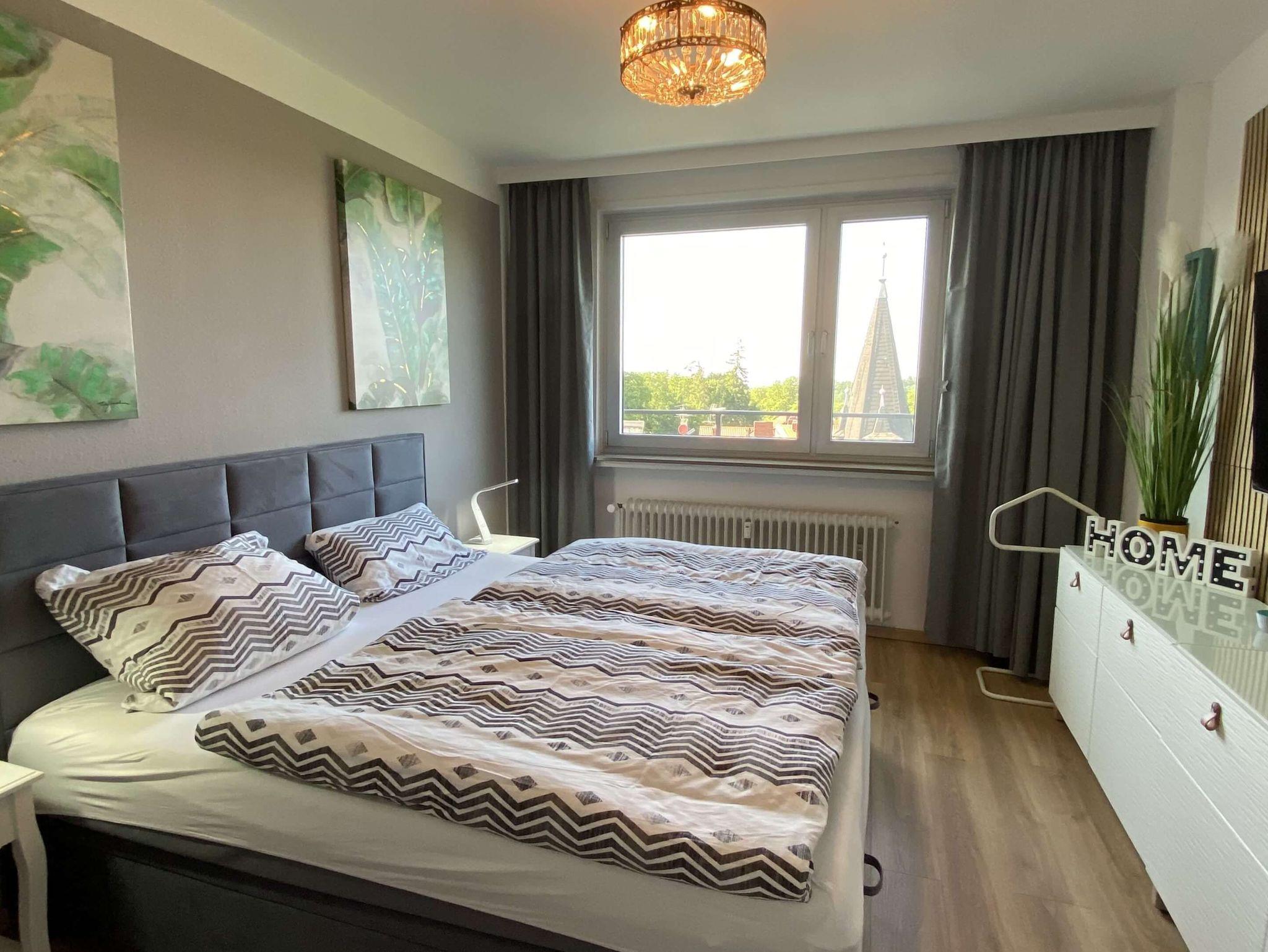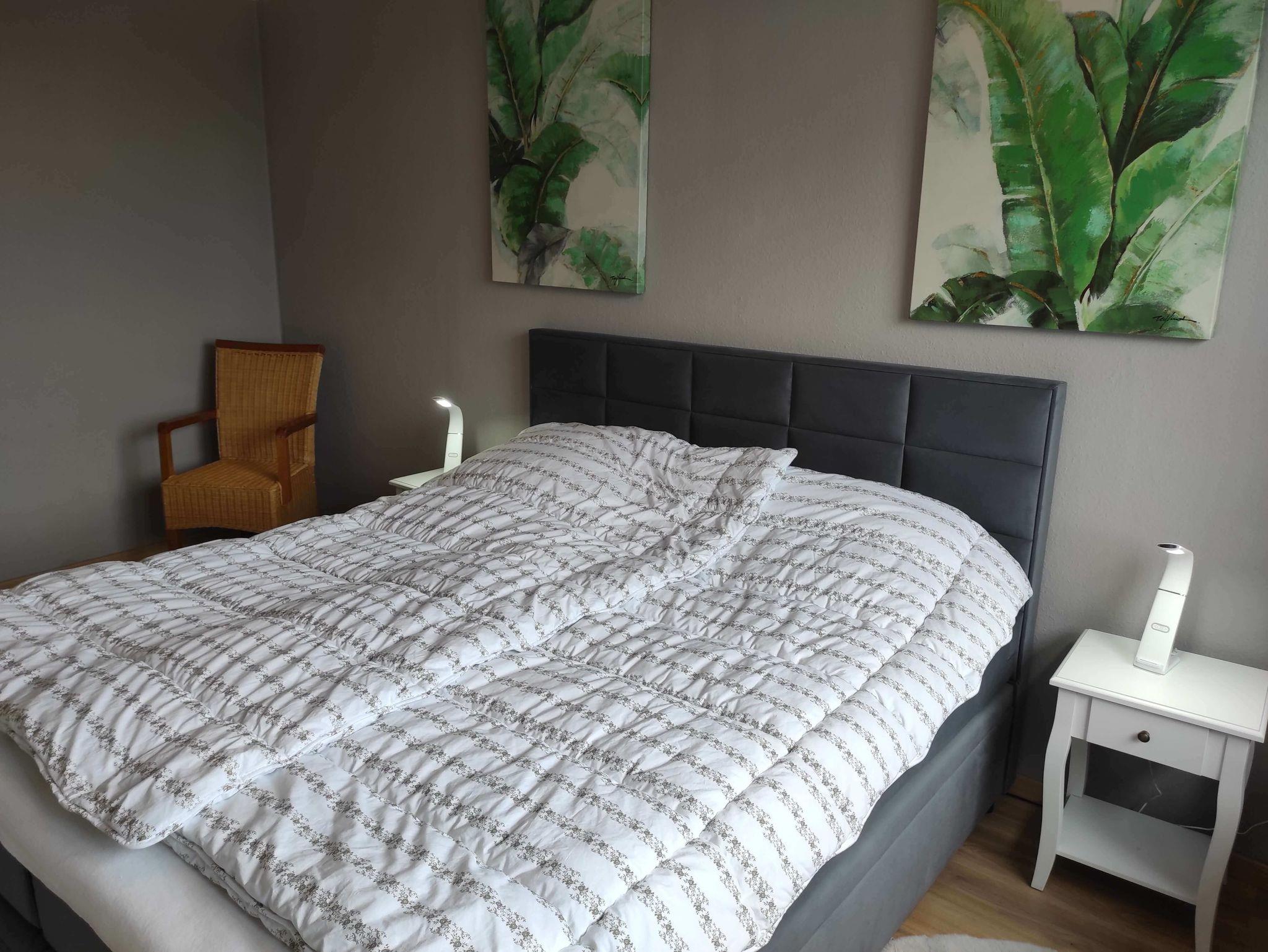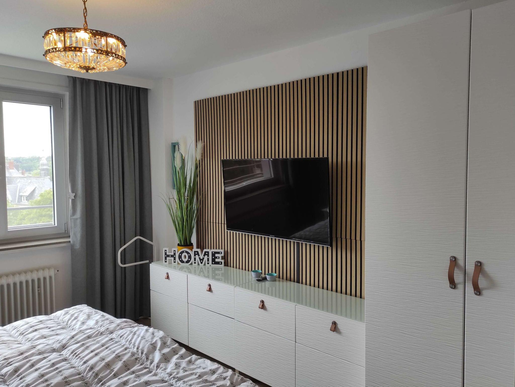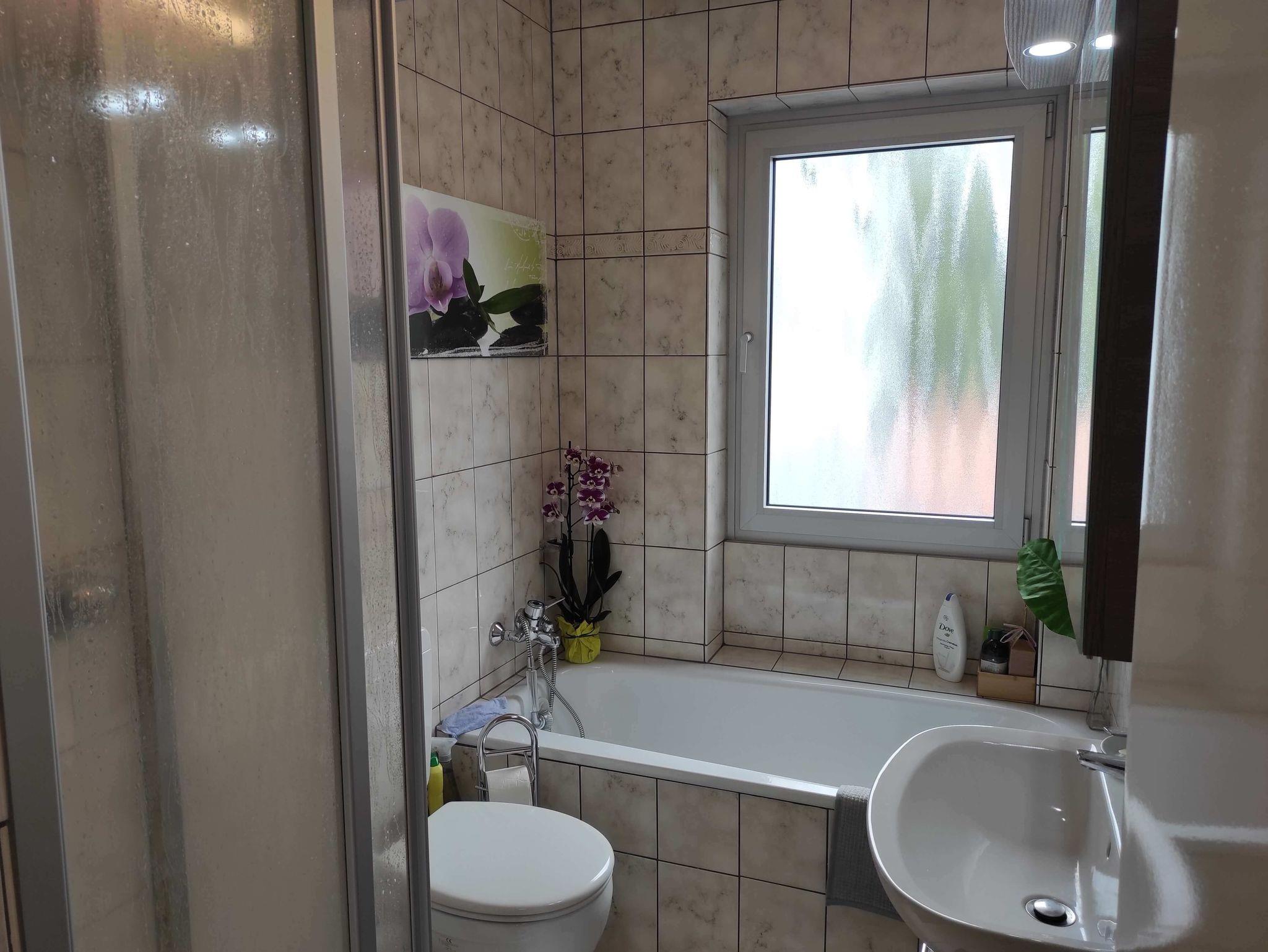Im Schlafzimmer gibt es ein Boxspringbett (180x200 cm), einen 2. Fernseher, und genügend Stauraum. Wlan empfangen Sie in der gesamten Wohnung. Im Bad gibt es eine Dusche und Badewanne.