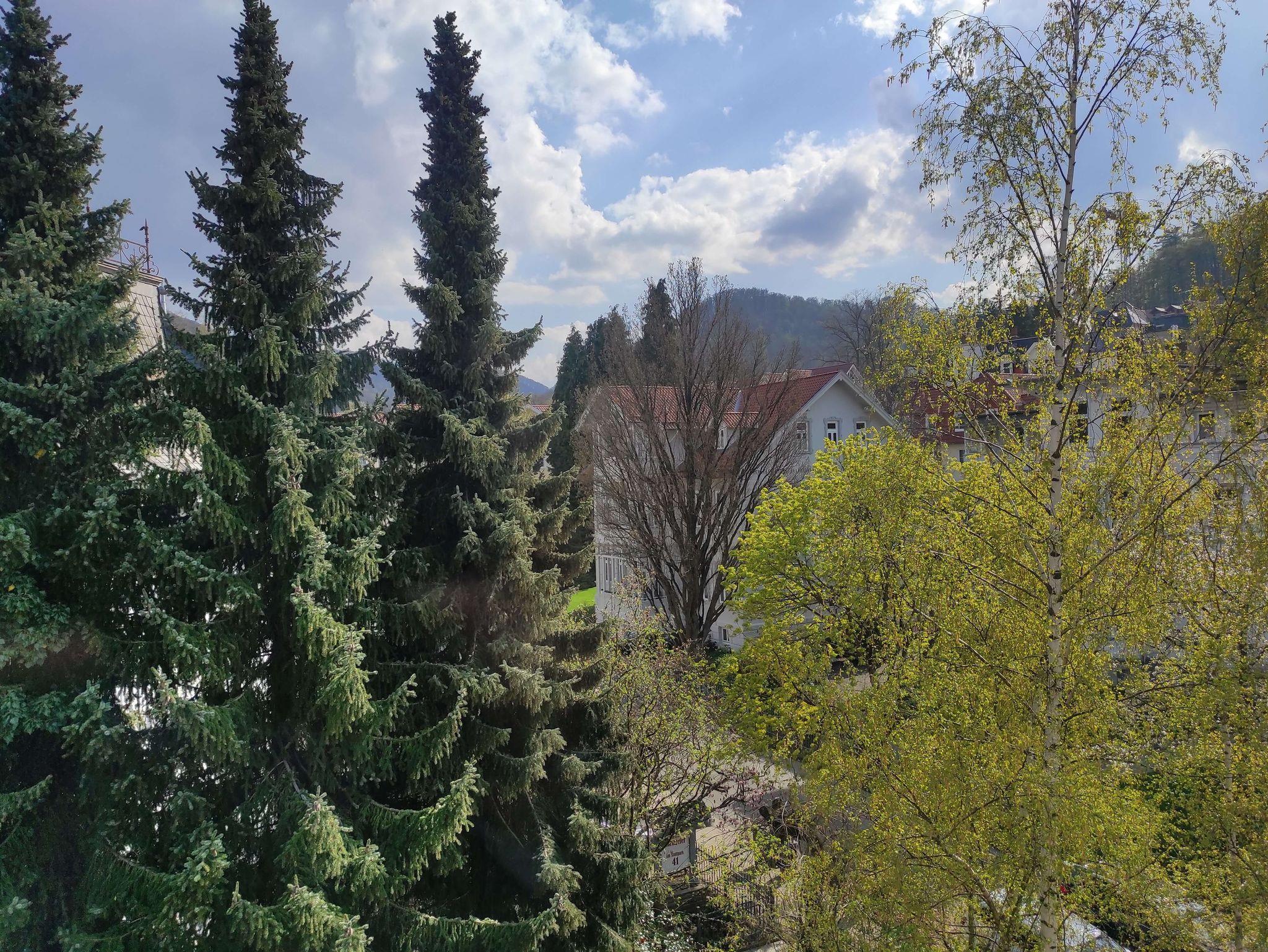 Genießen Sie den Blick auf den Burgberg und in das Tannengrün aus unserem Kleinen Nest in der 2. Etage (gefühlt 3. Etage) der Villa Radau (kein Aufzug).