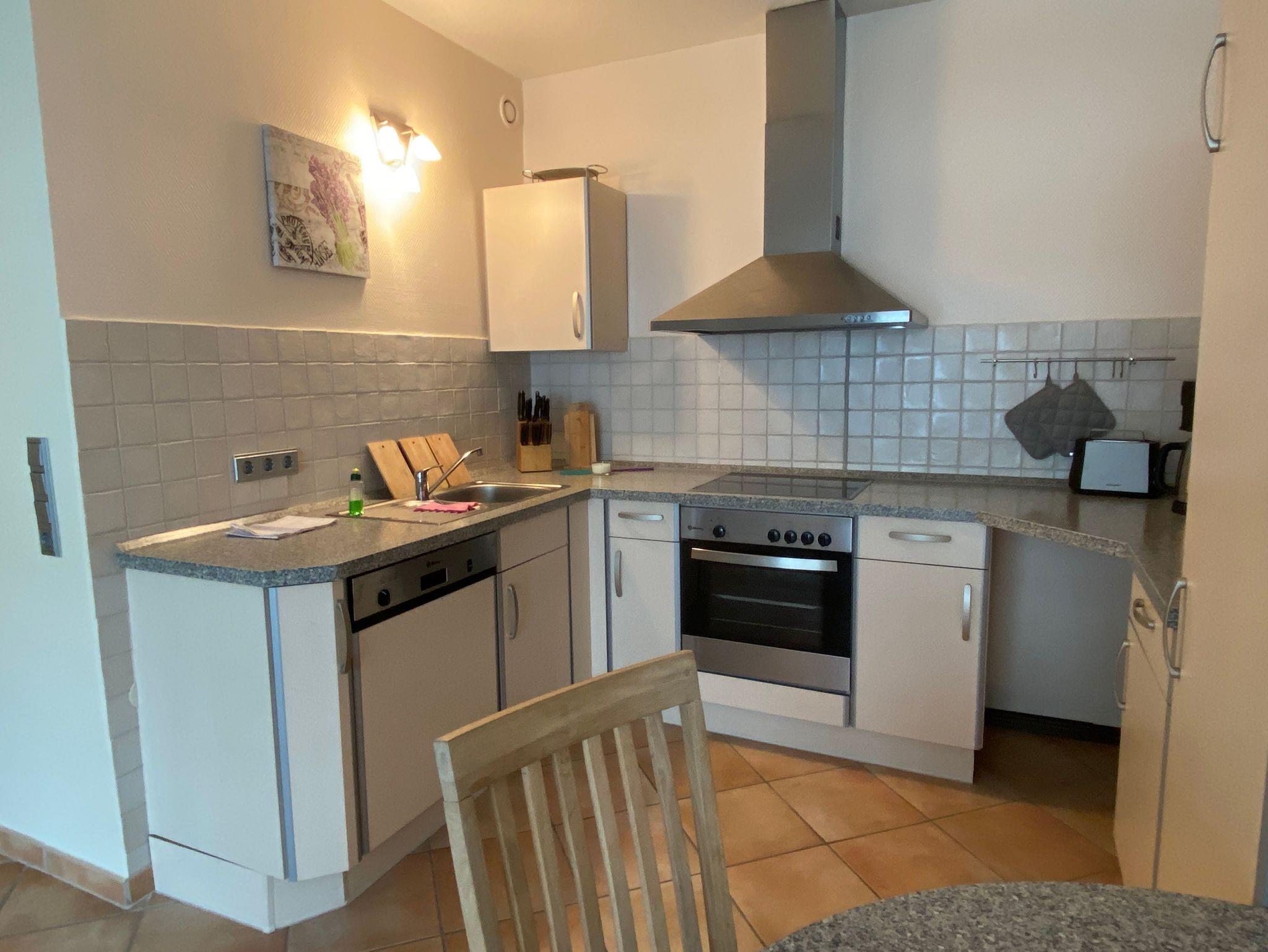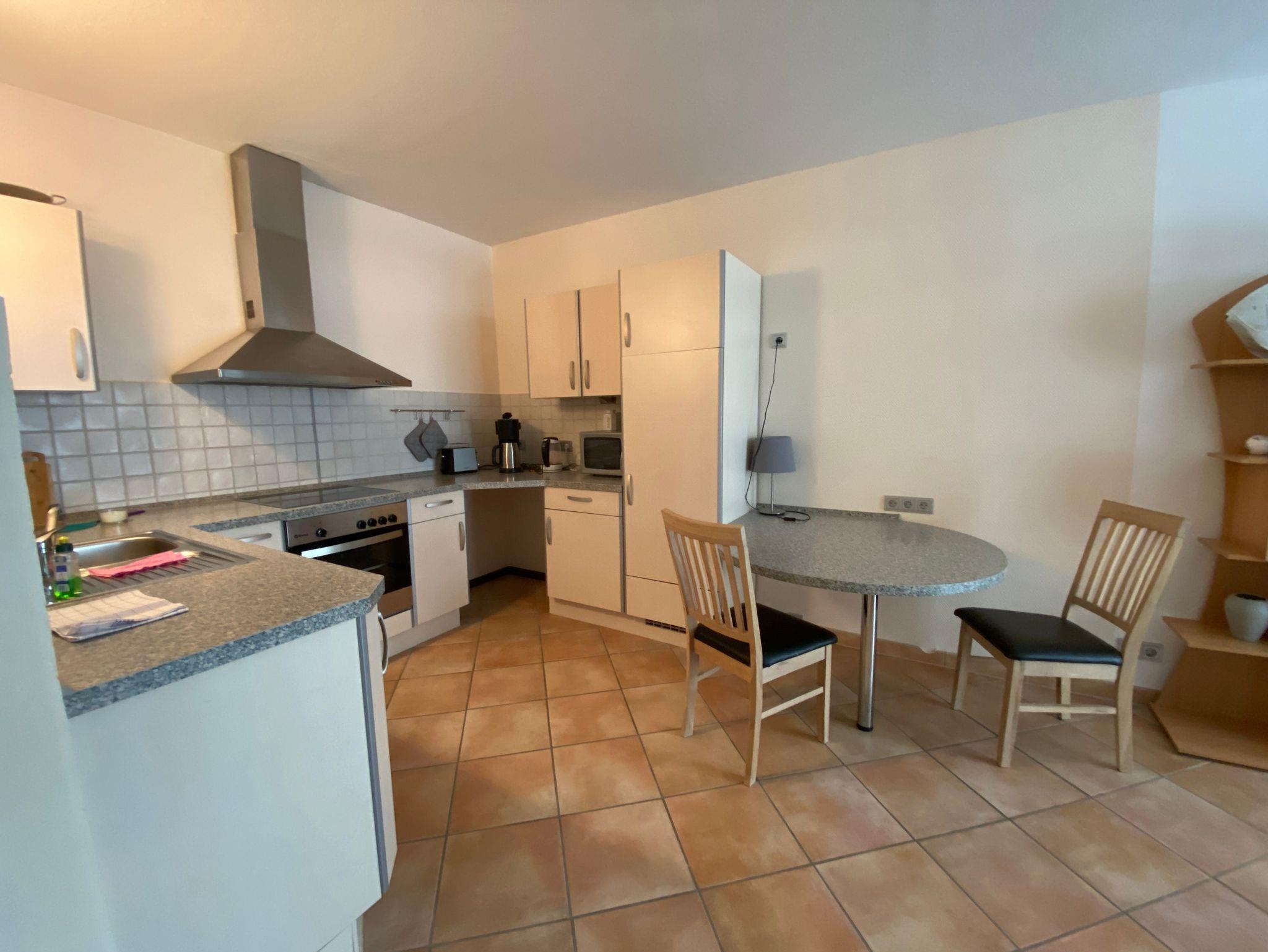 Die hell und modern eingerichtete Wohnung verfügt über eine komlett ausgestattete Küche, im Wohnzimmer können Sie sich auf einem großen Sofa entspannen, ein 40 Zoll Flachbildfernseher, auch im Schlafzimmer, CD-Player steht Ihnen dort zur Verfügung.