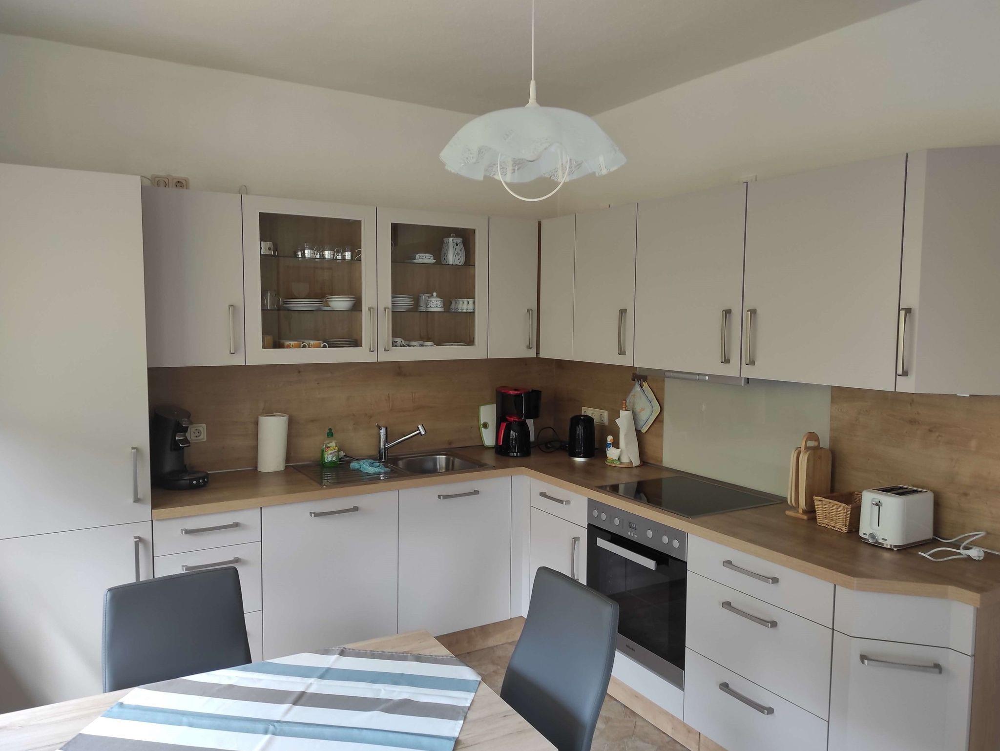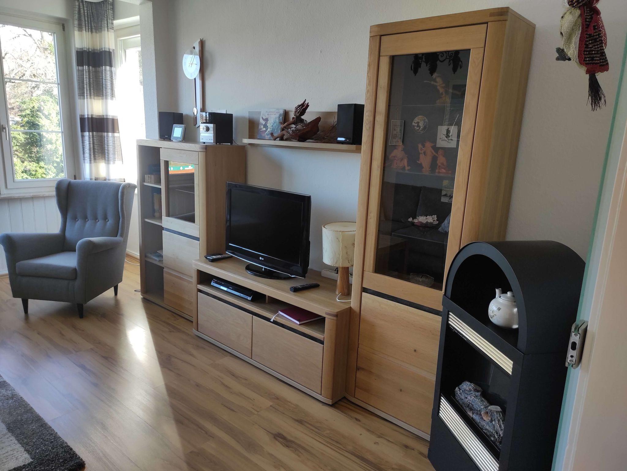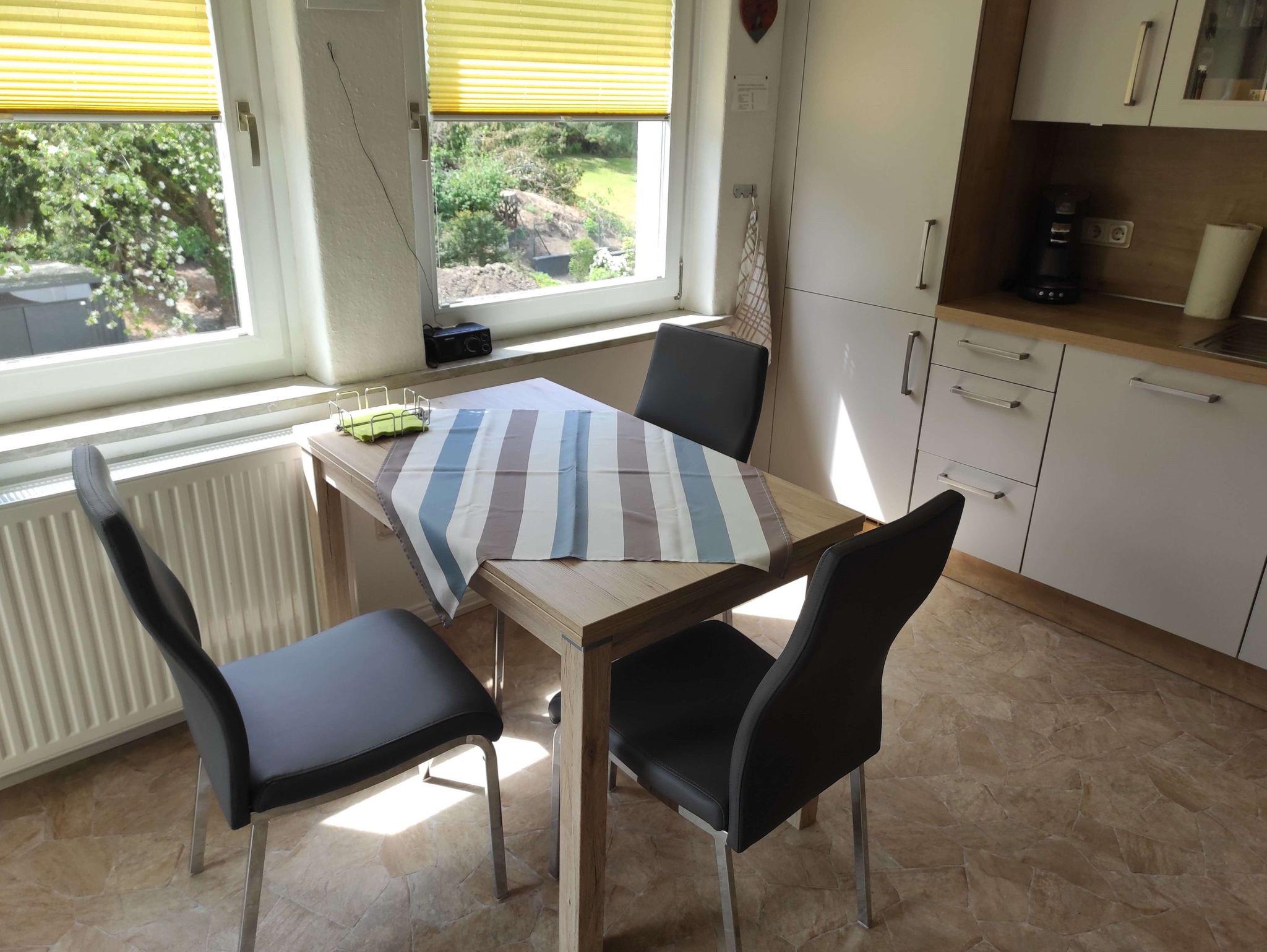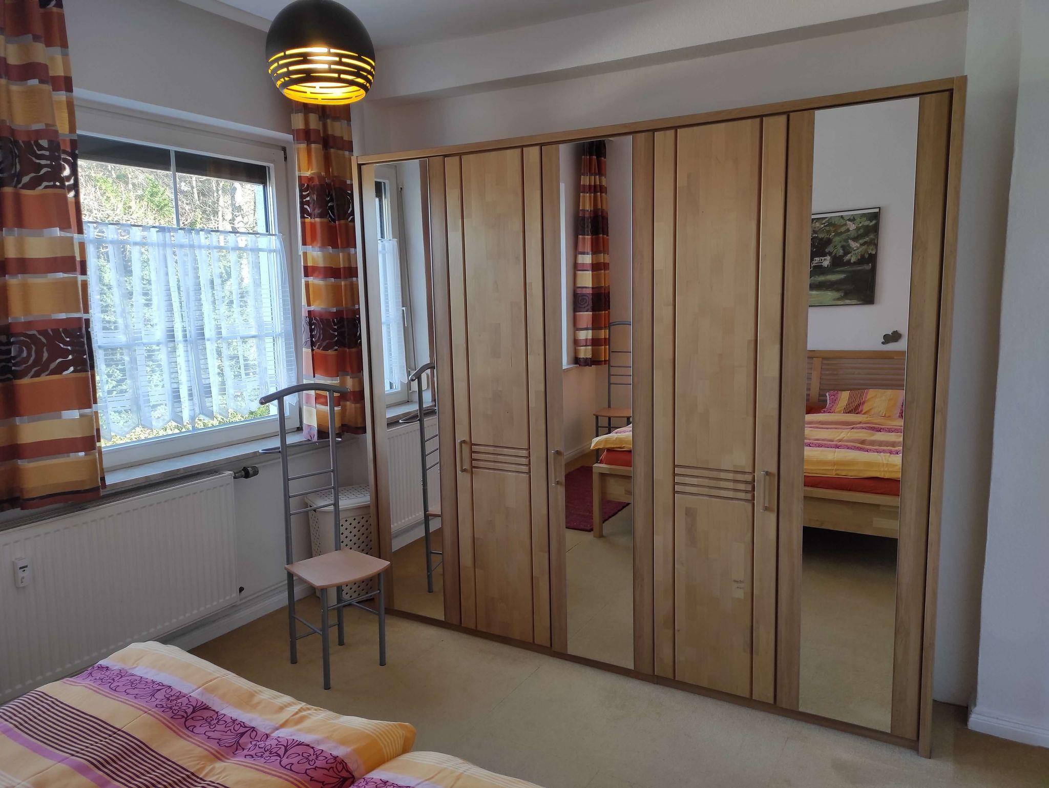 Die Ferienwohnung liegt im 1. Obergeschoss. Sie hat 3 helle, freundlich eingerichtete Zimmer. Sie verfügt über ein Schlafzimmer mit Doppelbett. Eine zusätzliche Schlafgelegenheit bietet das Schrankklappbett (0,90 x 2m) das sich im Esszimmer befindet.