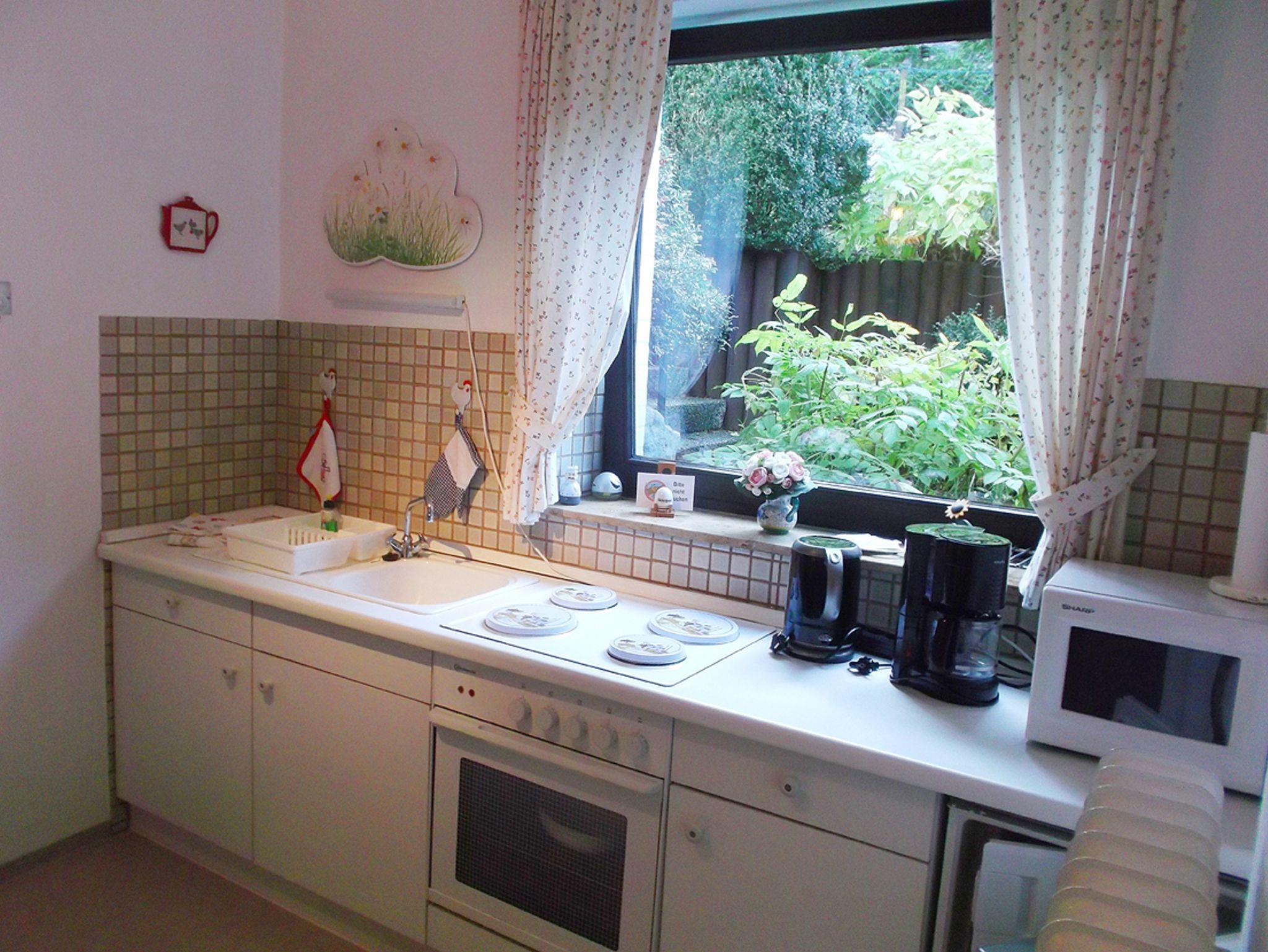 ? Küche mit Mikrowelle und Backofen