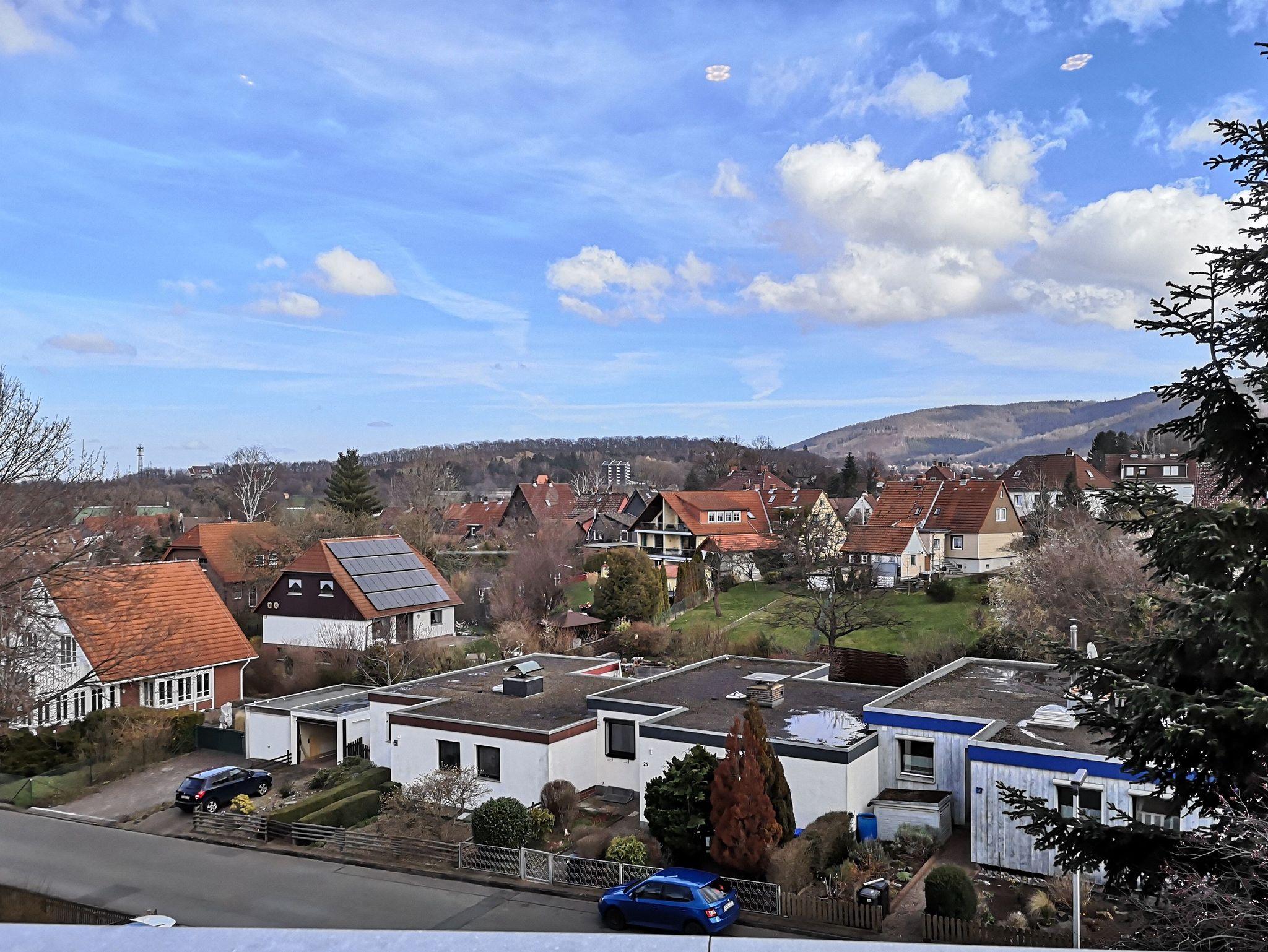 Diese wunderschöne Penthouse-Wohnung liegt im 4. OG (KEIN Fahrstuhl !) und bietet einen tollen Blick auf die Harzberge. Auf der riesigen Dachterrasse können sie den ganzen Tag die Sonne genießen.