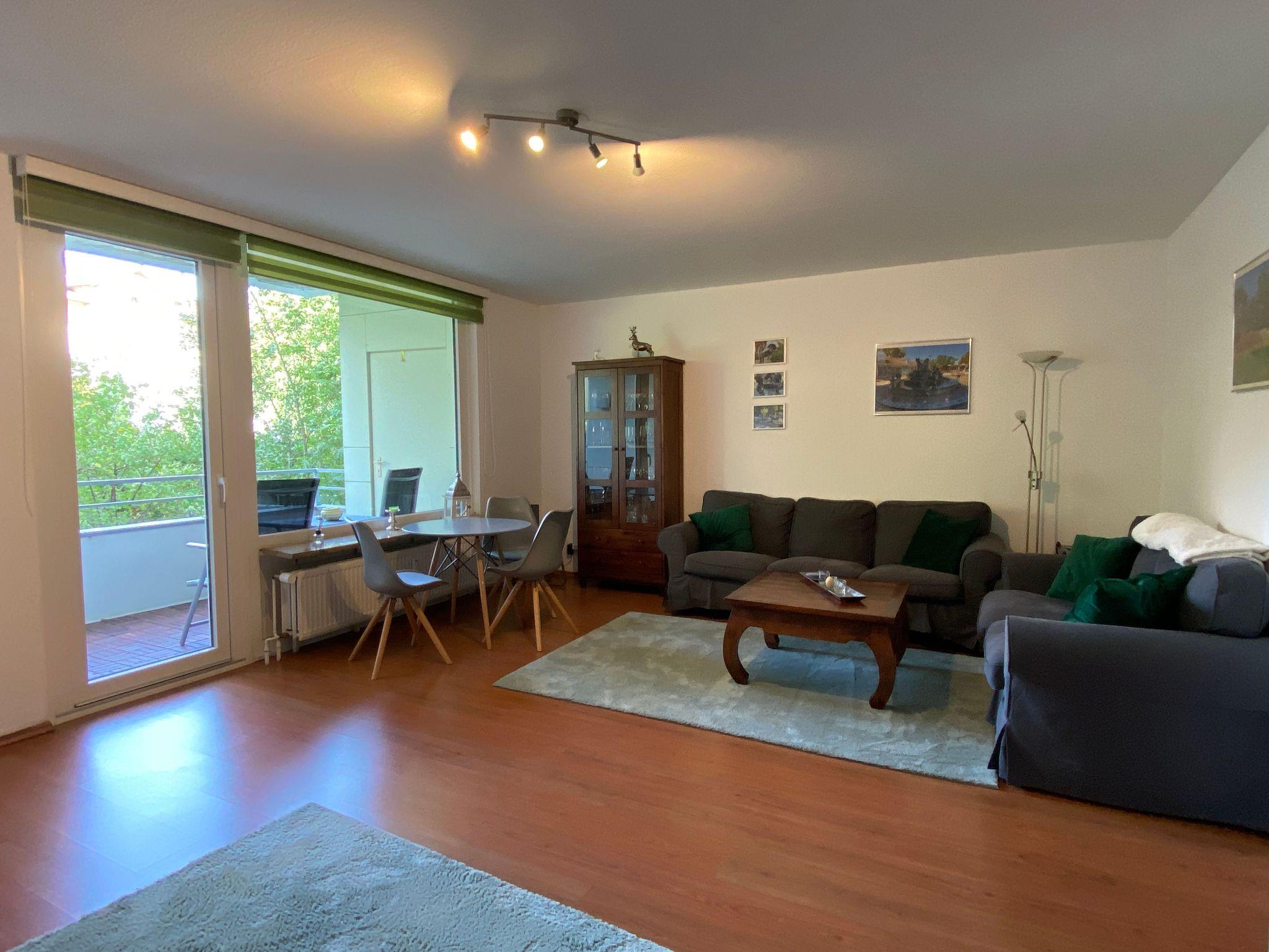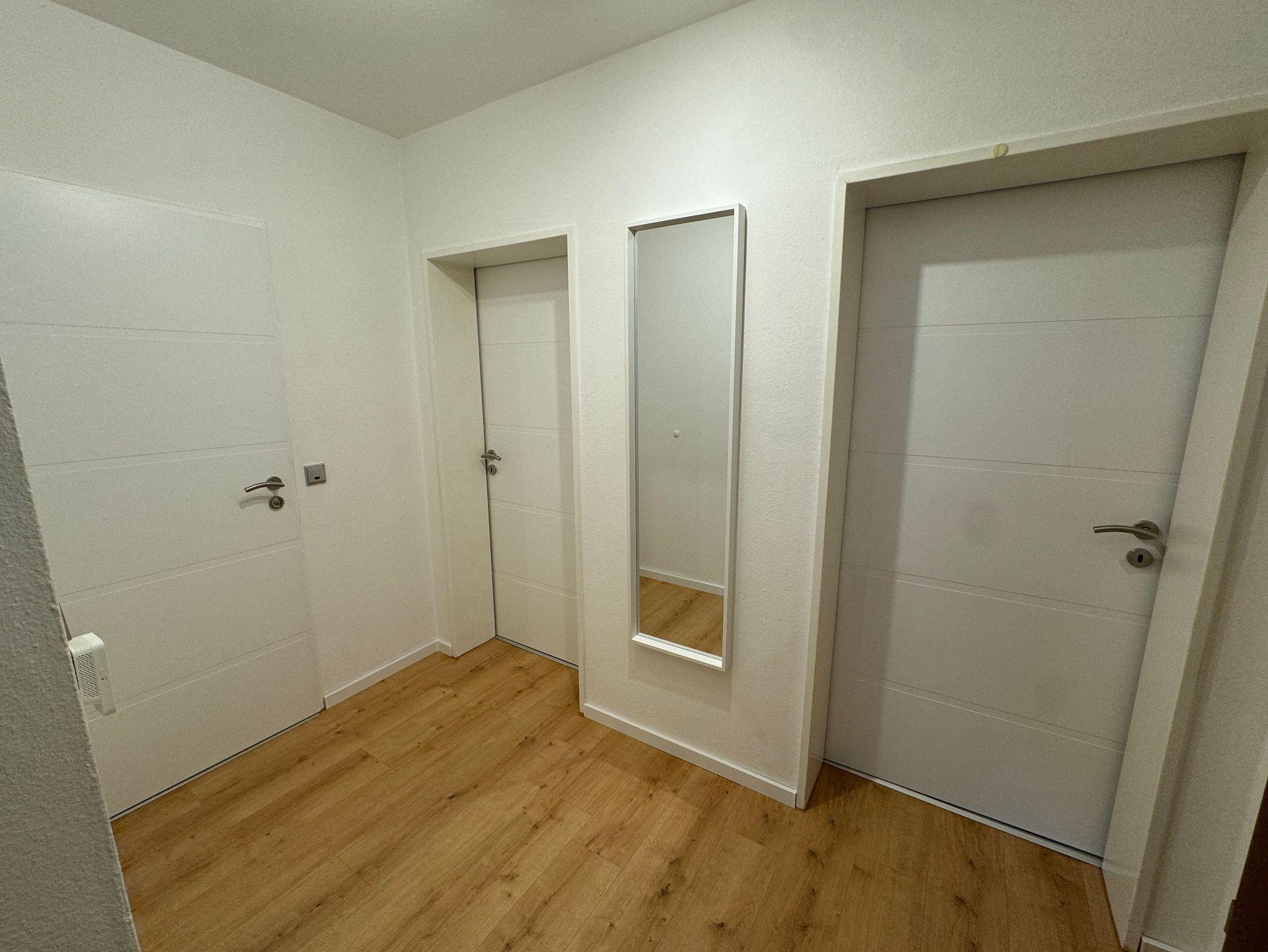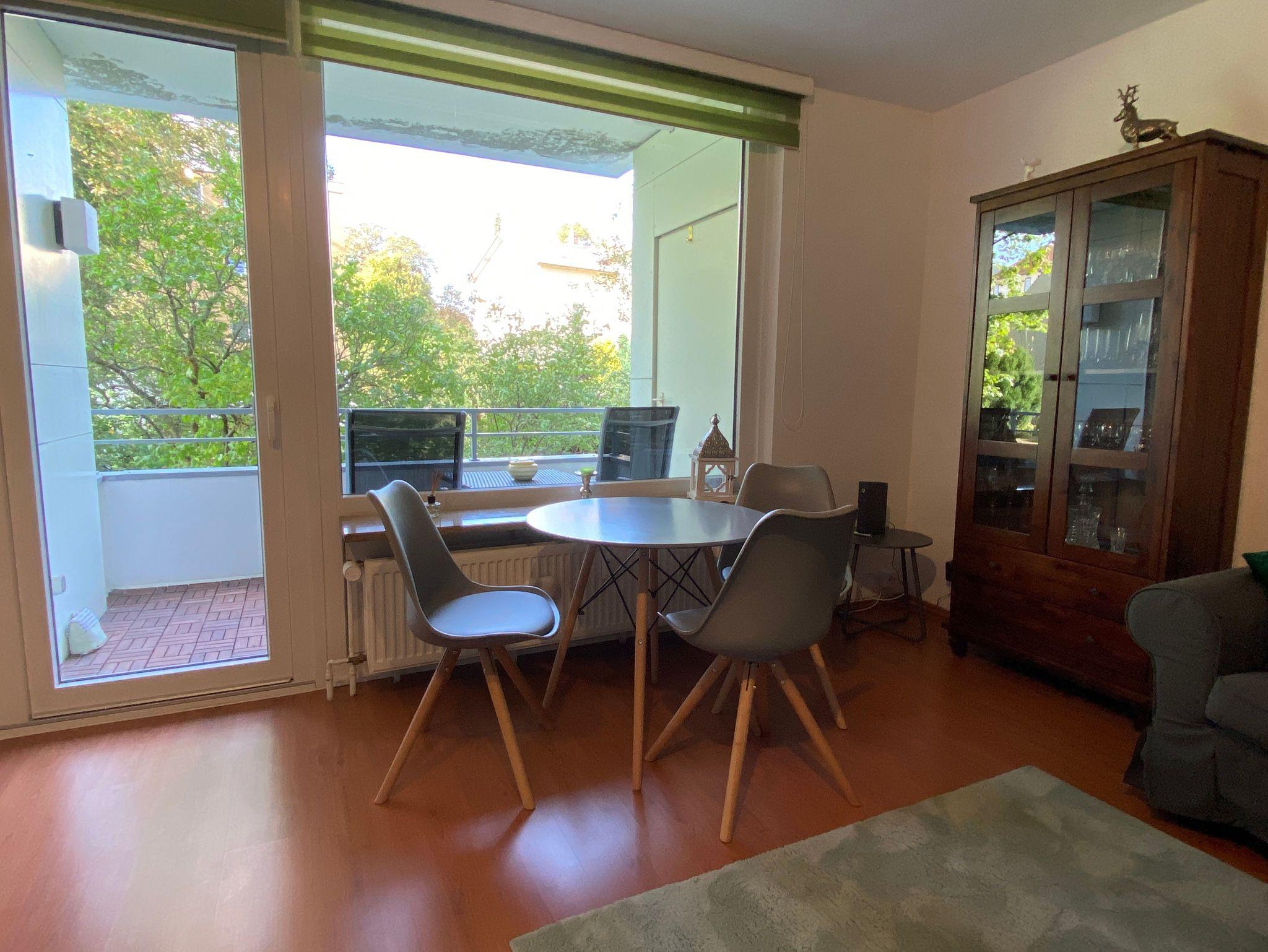 Die Wohnung verfügt über zwei Schlafzimmer, eine Essdiele, eine offene Küche, ein großes Wohnzimmer mit einem Schrankbett, ein Hauptbad, ein weiteres WC und einen Balkon. Die Wohnung befindet sich im Hochparterre und ist barrierearm.